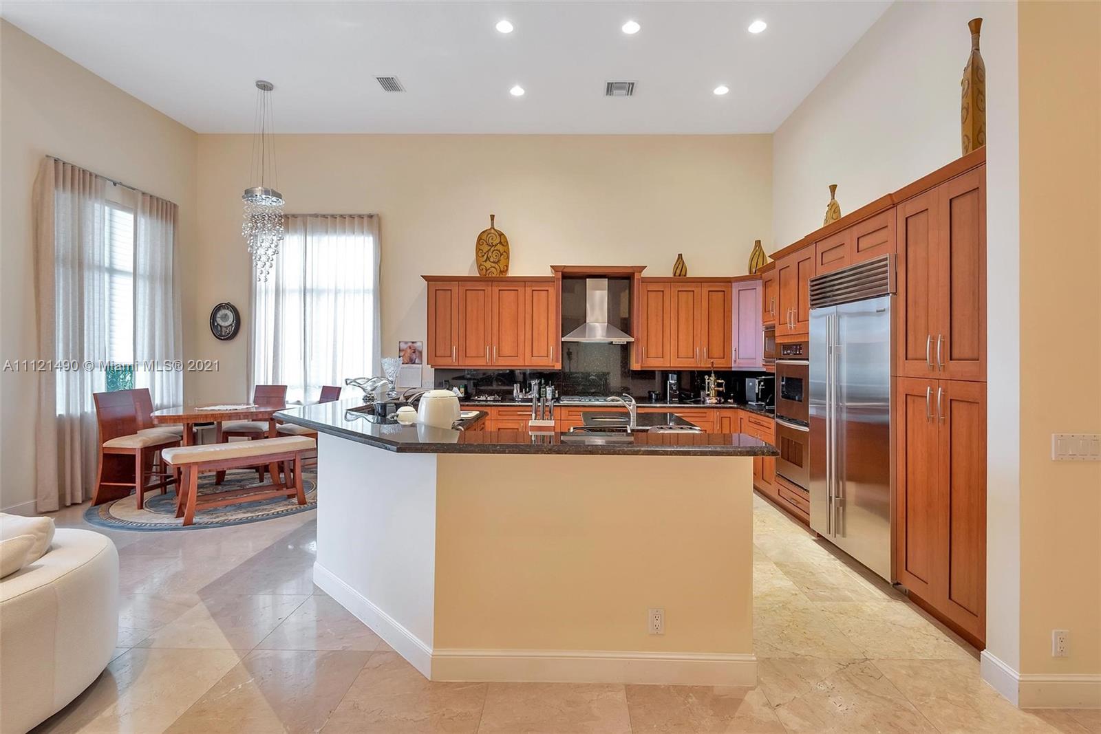 Welcome to perfection! The most comfortable one-story model in the community is located on an oversized waterfront lot with an easement that brings you more space and privacy! High ceilings, fixtures, marble, and hardwood floors an abundance of natural light. The kitchen features designer cabinetry with stainless appliances (Sub Zero), granite counters, a gas cooktop, and a double oven. Enjoy complete privacy with lush tropical gardens surrounding the patio and heated pool/spa and build in the outdoor grille. The fourth Bedroom is the office. Garage with AC. set of hurricane shutters. Enjoy CLUB Lifestyle with Spa, fitness center, classes, Cafe, amazing resort-style pool (near Olympic size) with entertainment, Tennis, Pickleball, Basketball and so much more! Showings start Nov11th.