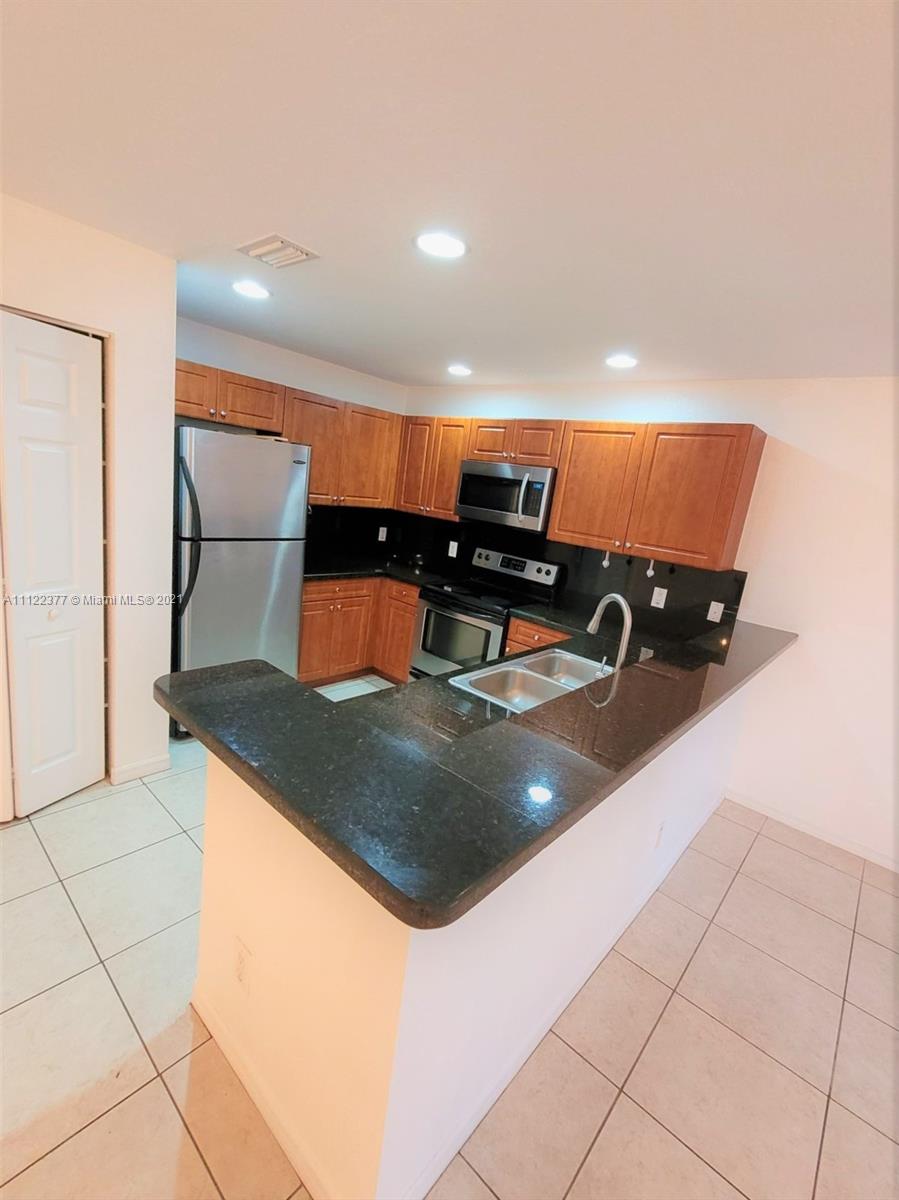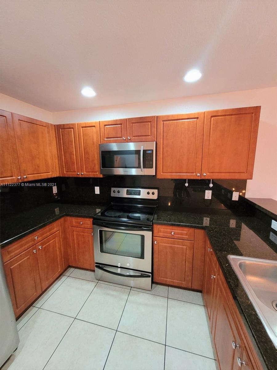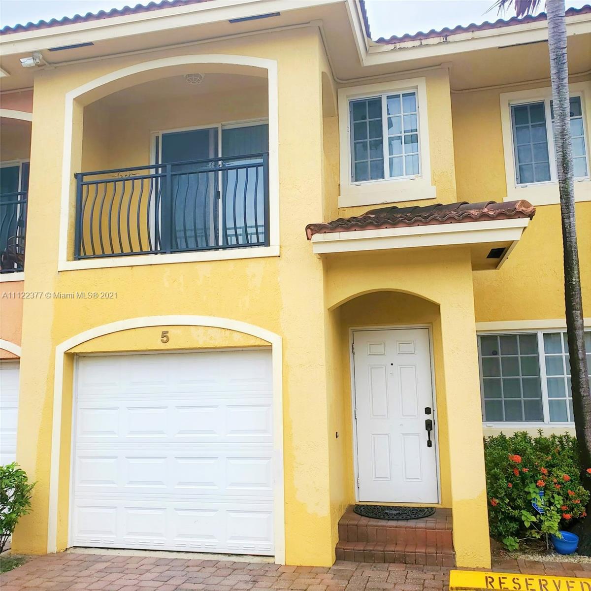 Beautiful townhouse centrally located in Hallandale Beach, west of US1, just minutes from the beach, shopping, Casino and. This gated community features 3bedrooms, 2 1/2 bathrooms, granite countertops with wood cabinets. Master bedroom features a remodeled walk-in closet, master bathroom with dual sinks, shower and tub, Sitting balcony on master. Spacious 2nd and 3rd bedroom. Laundry room with extra space for storage. Outdoor patio with an upgraded seating area . Automatic garage space equipped with built- in closets for storage and 2 outdoor parking spaces. Condo features a pool with seating area plus a large play area. All windows and doors are impact proof. Alarm system installed throughout the house. Equal Housing Opportunity.