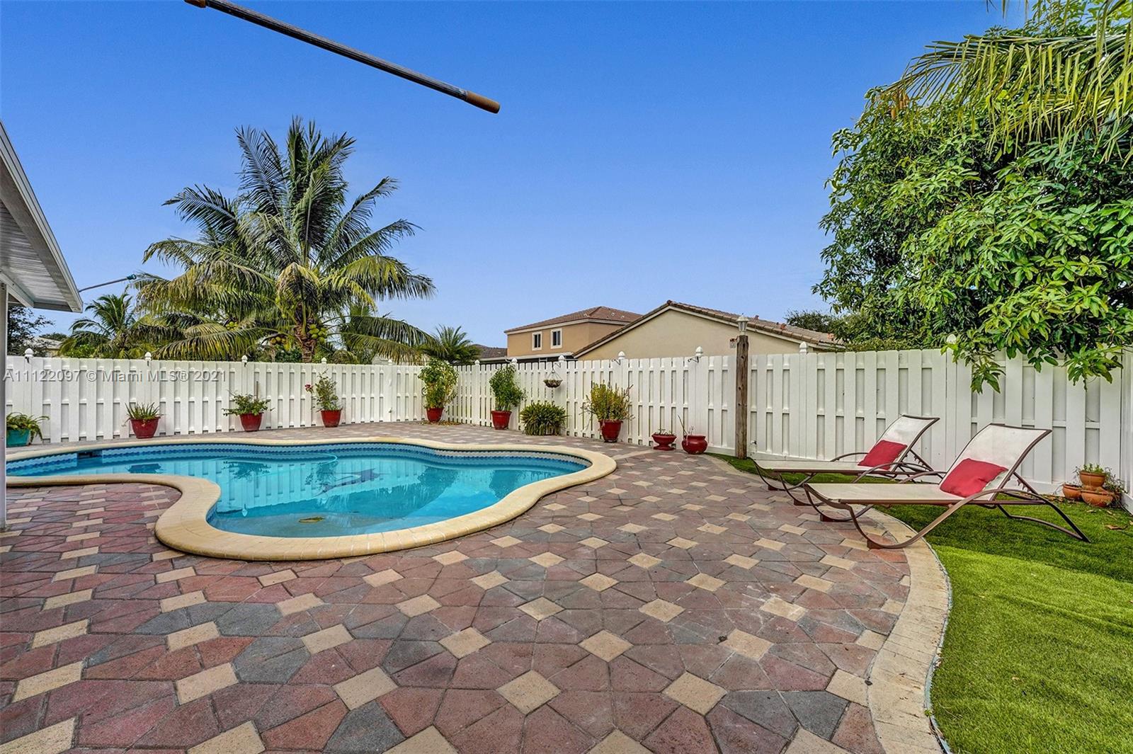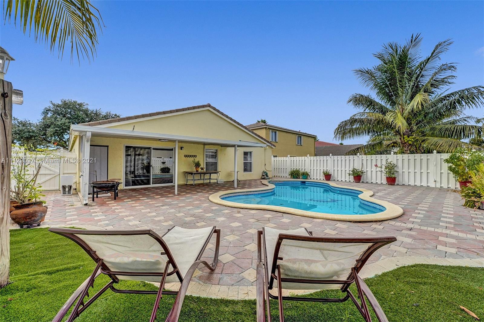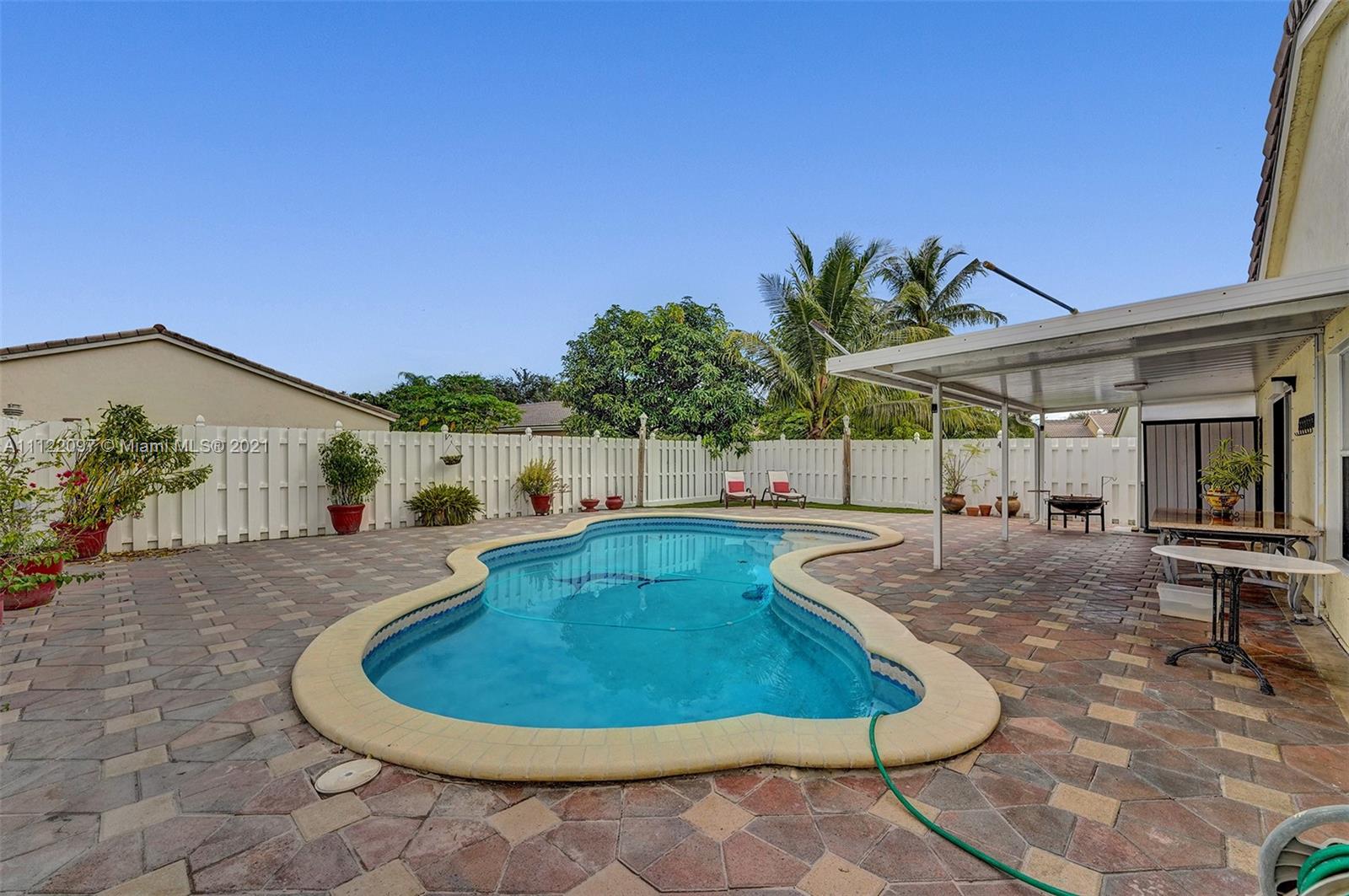 Stunning home in the desirable gated community of Avalon offers 4ba/2ba,2car garage, pool. This dream home has a bright foyer entrance leading into open living room and dinning room with vaulted ceilings throughout. The kitchen with a pleasing view of the family room and pool features NEW stainless steel appliances, wood cabinets, breakfast bar. The spacious master bedroom offers walk in closet organizer, and a NEWLY updated master bath with spa stainless steel shower panel. The 2ed bathroom is beautifully updated featuring wood cabinetry spa stainless steel shower, seamless shower door. Enjoy outdoor living on the covered patio and extended paver outdoor patio overlooking the salt water system pool with fenced yard.
