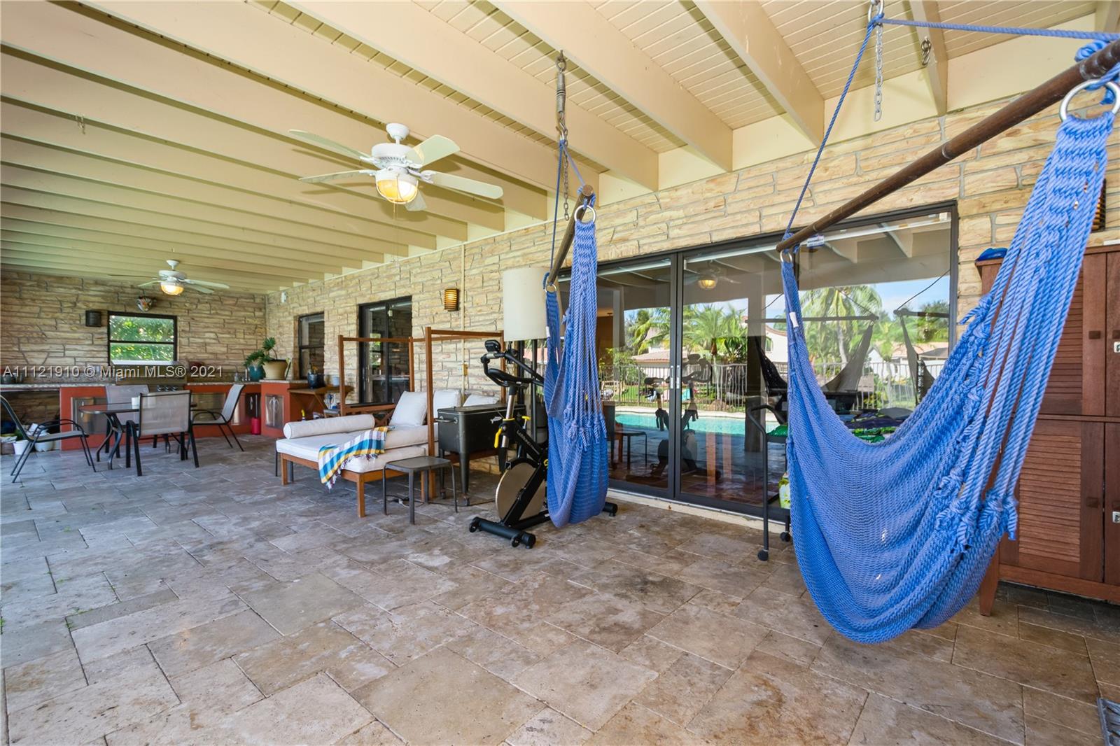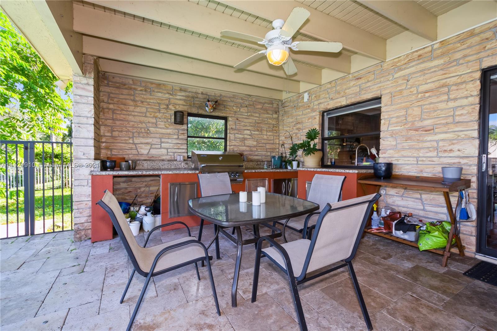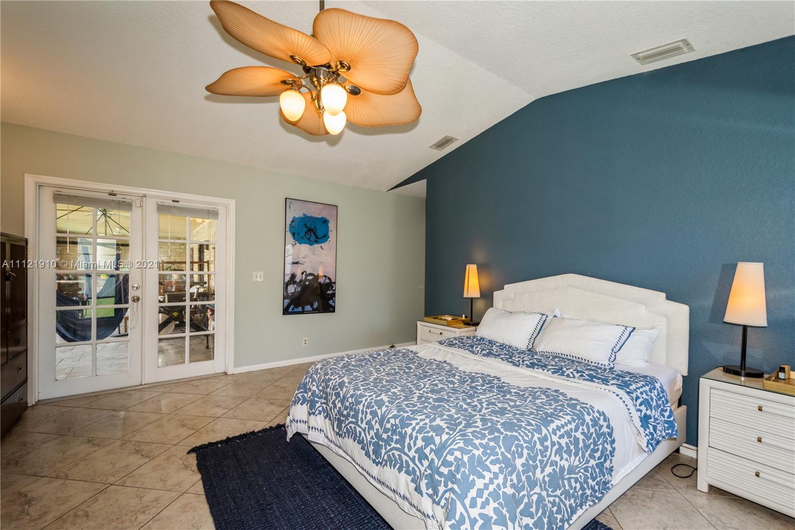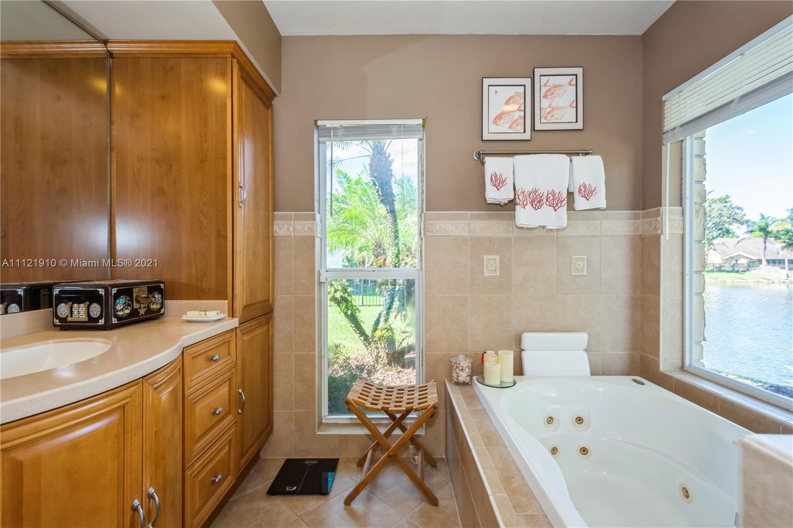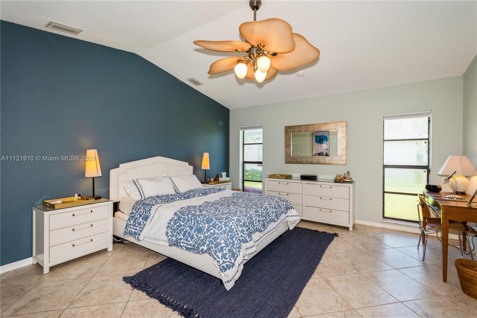 Private tropical oasis! Tucked away on a peaceful side street in desirable Jacaranda Lakes, this stylish lakefront pool home is close to everything. Enter and be wowed by the stunning stone accent wall, newly remodeled kitchen w/quartz counters and SS KitchenAid appliances, XL main suite with double walk-in closets and French doors to patio. Main bath has separate vanities, step-down shower, and a Jacuzzi tub with a spectacular lake view. Relax or entertain poolside day or night on the covered patio with outdoor kitchen. Enjoy the mature mango trees, lush palms, and fragrant ylang-ylang. Well-maintained and move-in ready. Transfer switch for generator, smart lighting, lake-fed irrigation upgraded 2018, much more. MUST SEE!