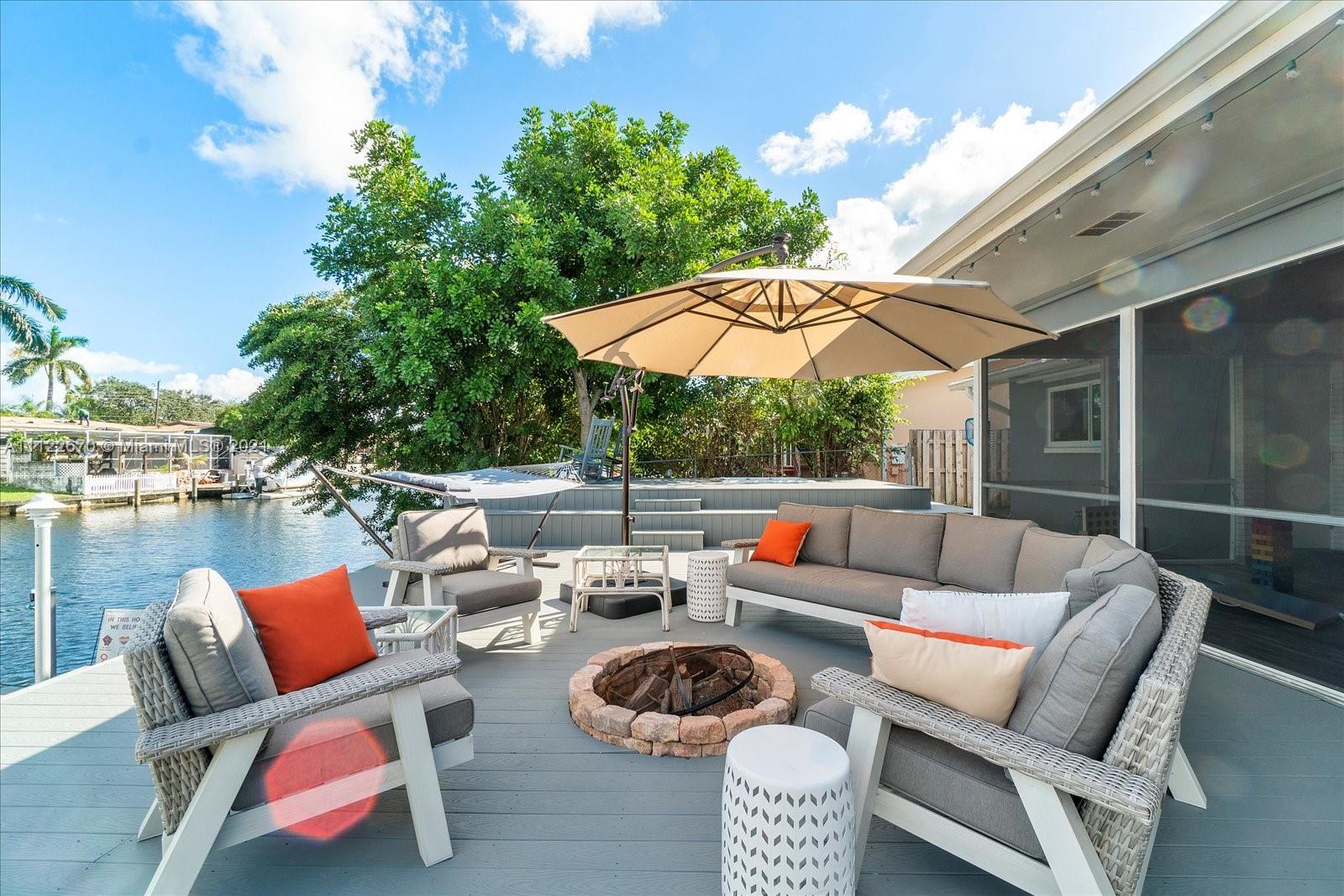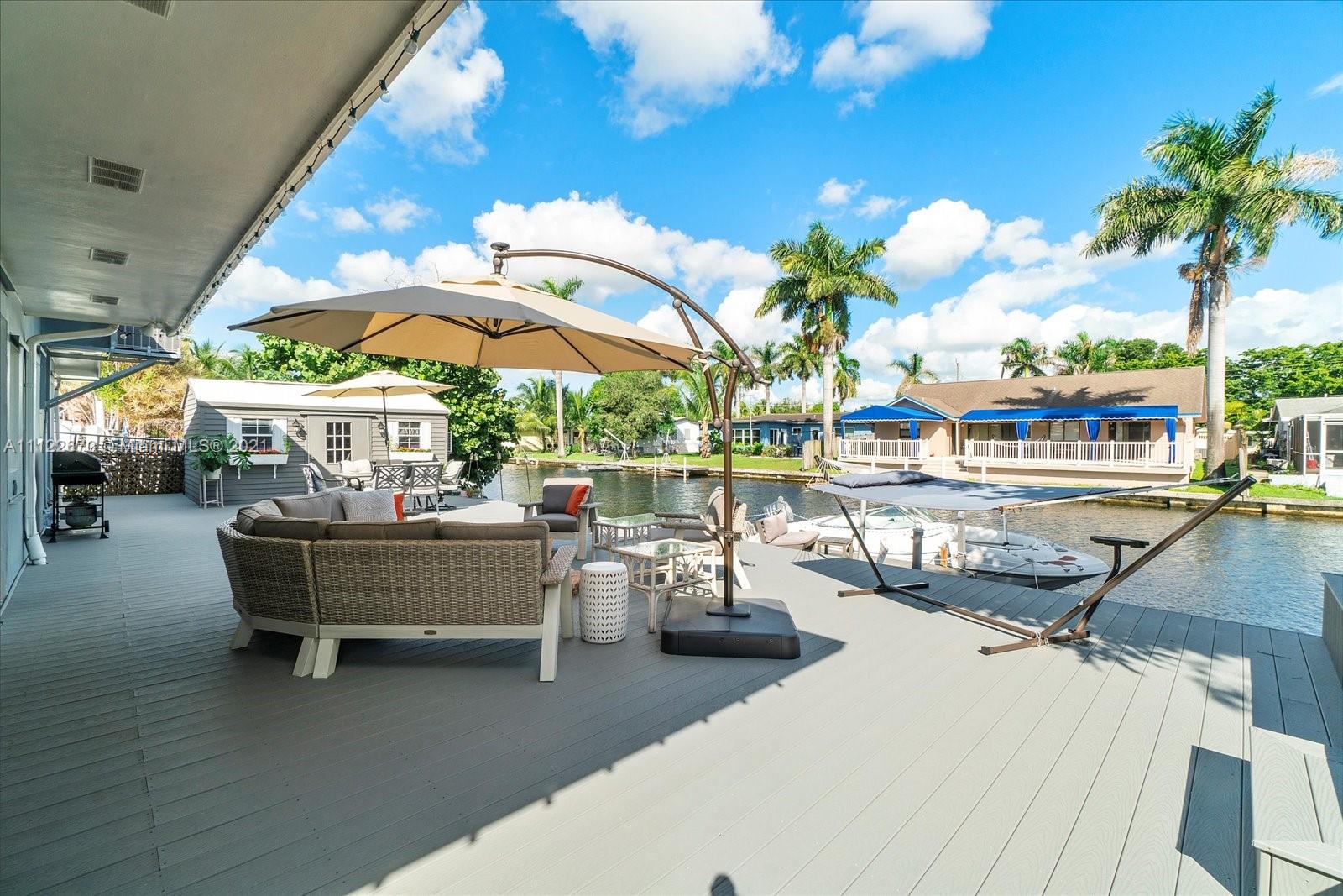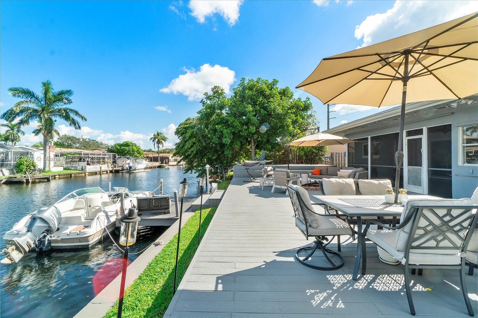 BEAUTIFULLY renovated 4 Bedroom 3 Bathroom on DEEP WATER CANAL WITH OCEAN ACCESS! AND….NO HOA! Enjoy the spacious open floor plan with STUNNING Water Views. Entertainers will LOVE being able to completely open the wall of windows to the screened-in Lanai w/bar. Or, hanging out on the NEW OVERSIZED Deck with Firepit & Hot-tub overlooking the waterway. The New Fully insulated, with double soundproofing, shed provides an AMAZING office or recording space for podcast or recording. Inside the home features a split floorplan, large bedrooms, & a recently renovated kitchen. You’ll love having NEW Impact Windows/Doors/Sliders, a 1-Year-Old Roof, large circular driveway, separate Boat/RV parking WITH 50 Watt RV Plug-in, & a composite Dock. Close to the Beach, Shopping, Schools & Freeways.