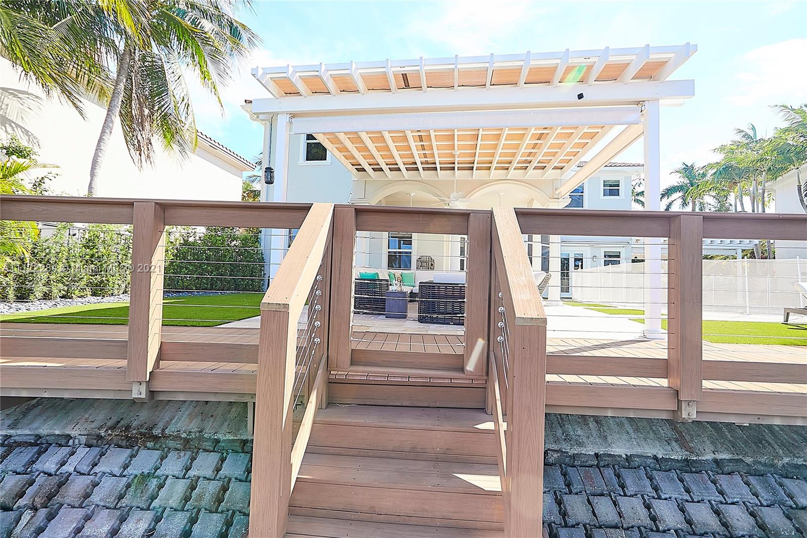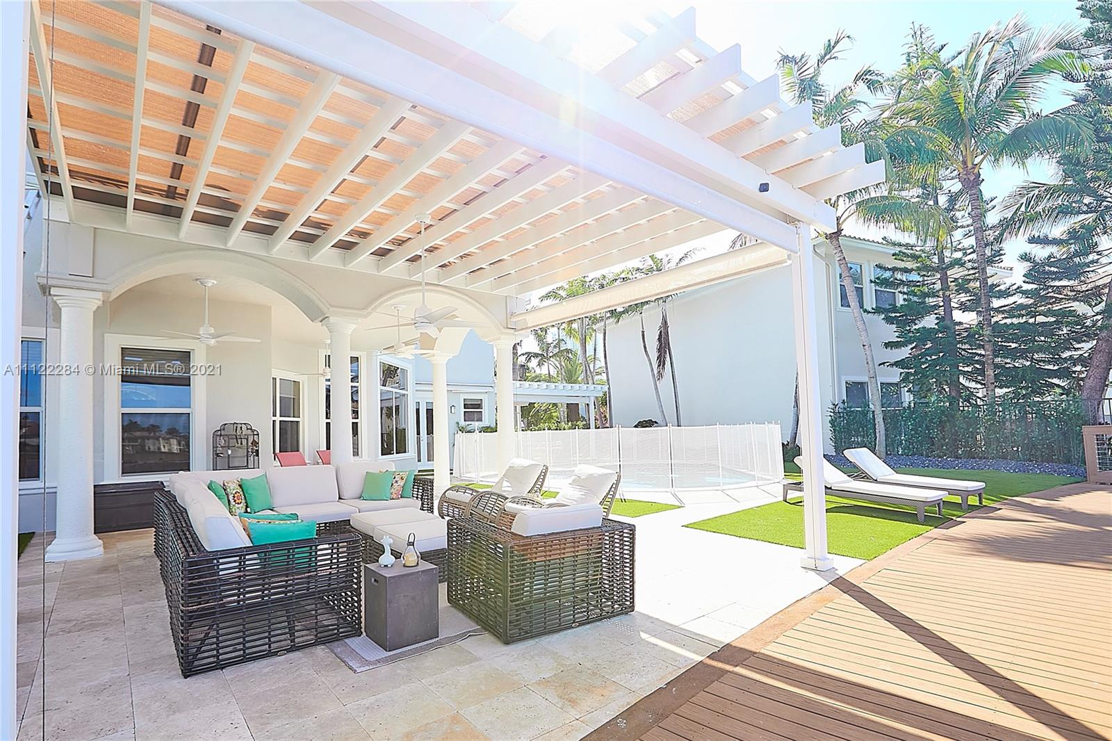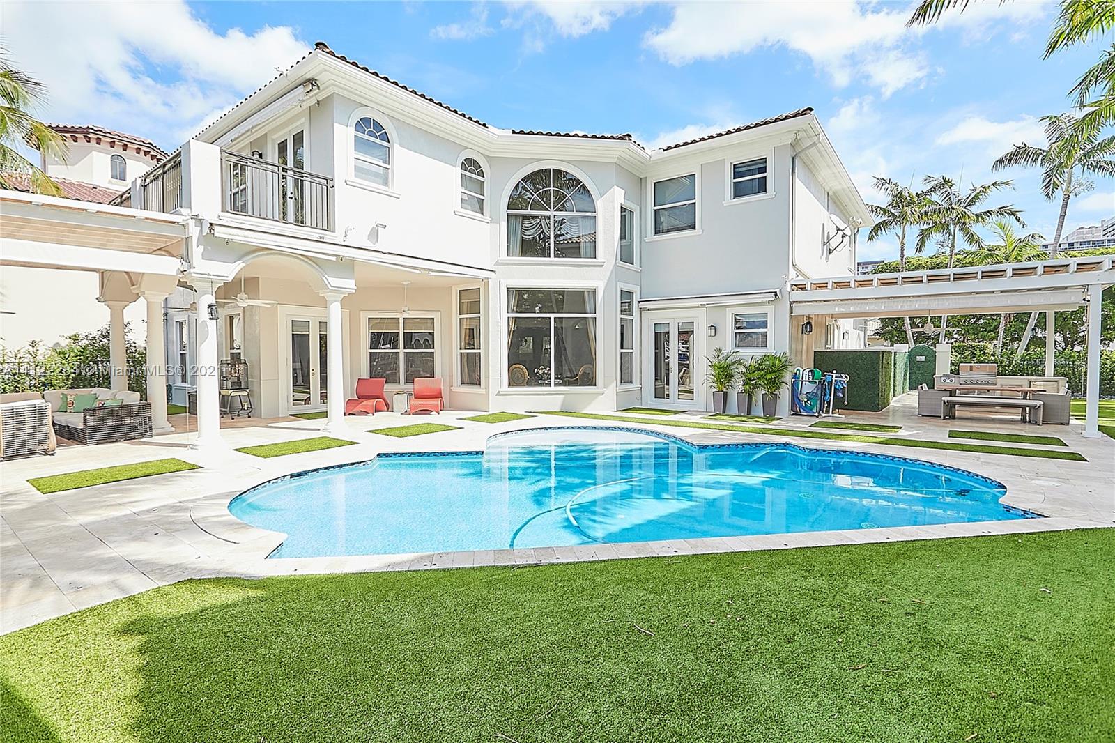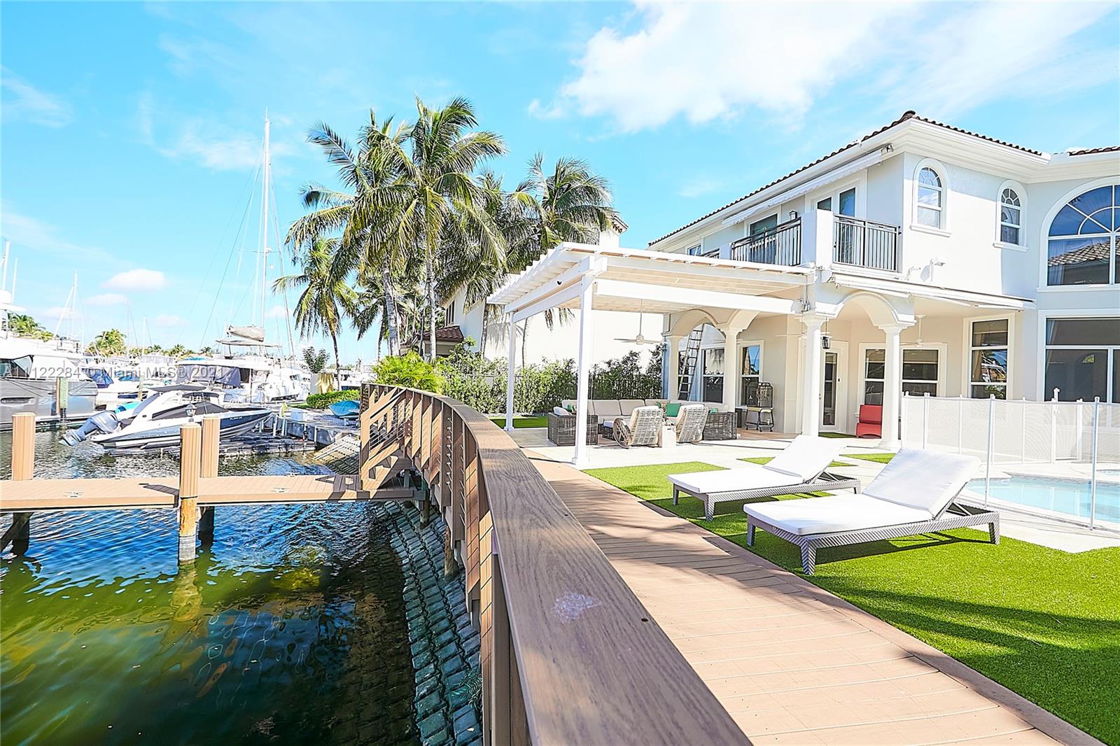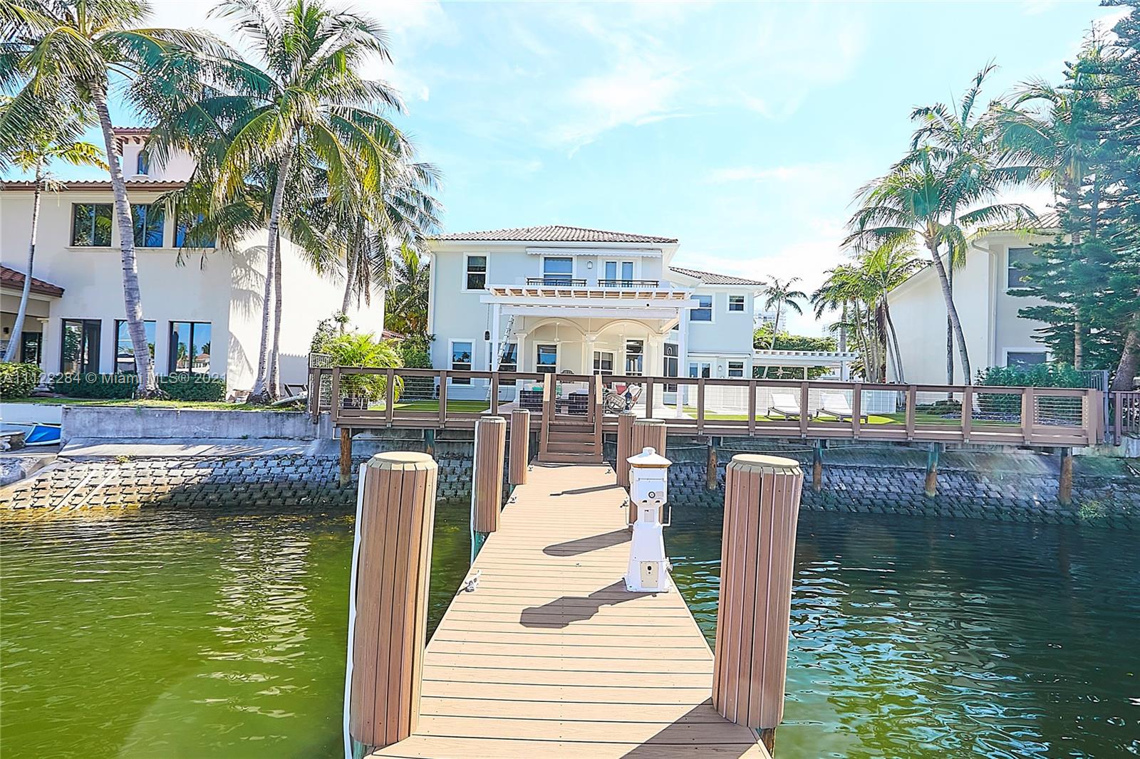 UNIQUE AND EXQUISTE WATERFRONT PROPERTY, HARBOR ISLAND. COMMODORE ESTATE. HOLLYWOOD. FL. 70 feet over the bay plus a dock where 2 boats up to 50 ft could be moored. No bridges to the Atlantic Ocean, Corner lot. 5 Bedrooms with en suite bathrooms plus 2 studios. Large windows, waterfront views, double high ceilings in the reception area, sub zero fridge and separate freezer, top of the line appliances, kitchen island and wine cooler, granite countertops, adjacent butler corner and large pantry, formal dining and family area with informal dining over water views all around. Magnificent outdoor area and fixtures, climatized saltwater pool, summer kitchen and 2 pergolas for “al fresco” enjoyment. 3 A/C zones, 3-car garage. Saturnia floors and much more. Furniture not included.