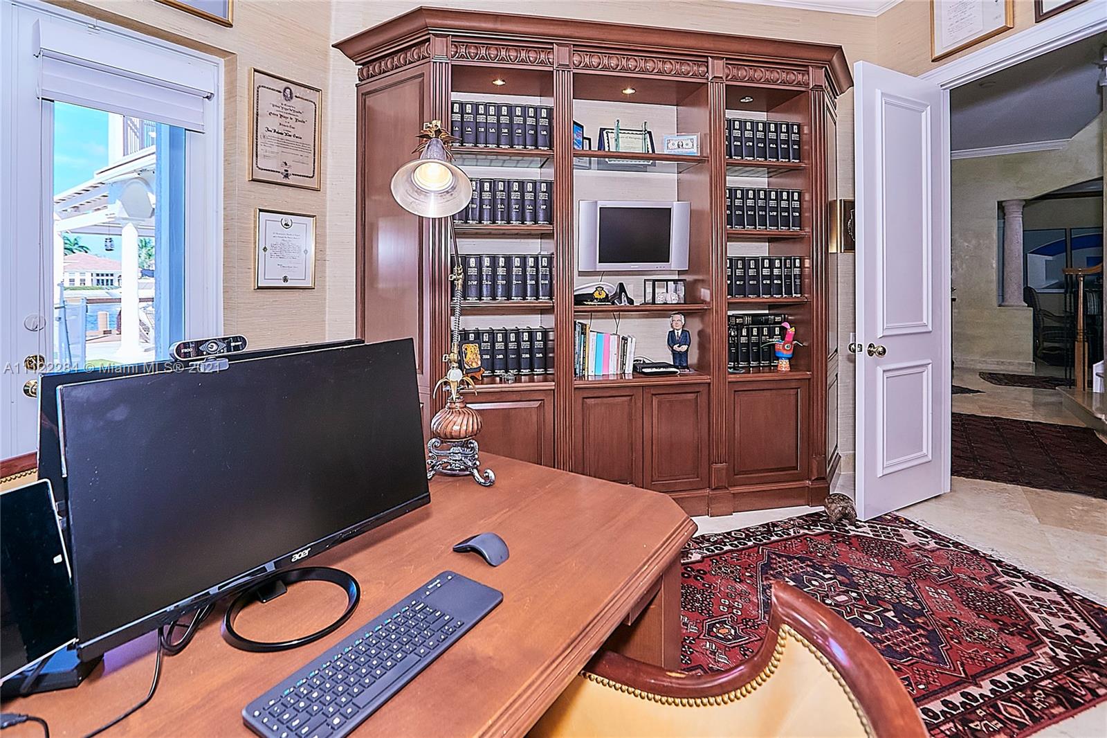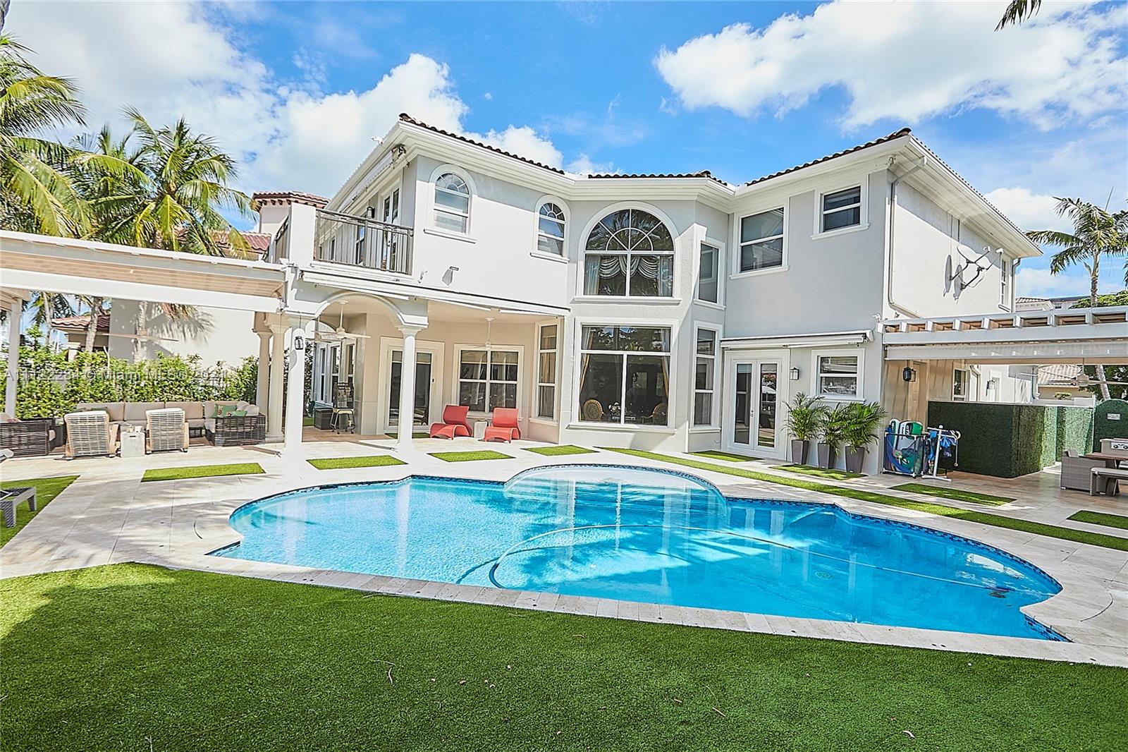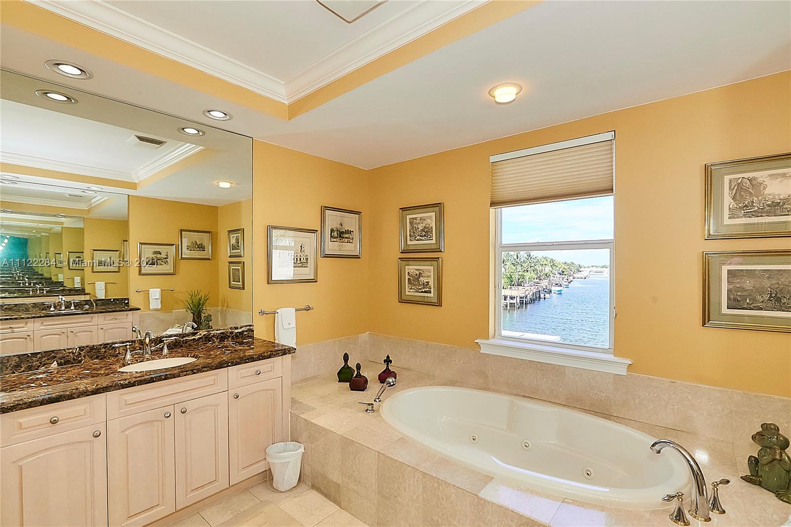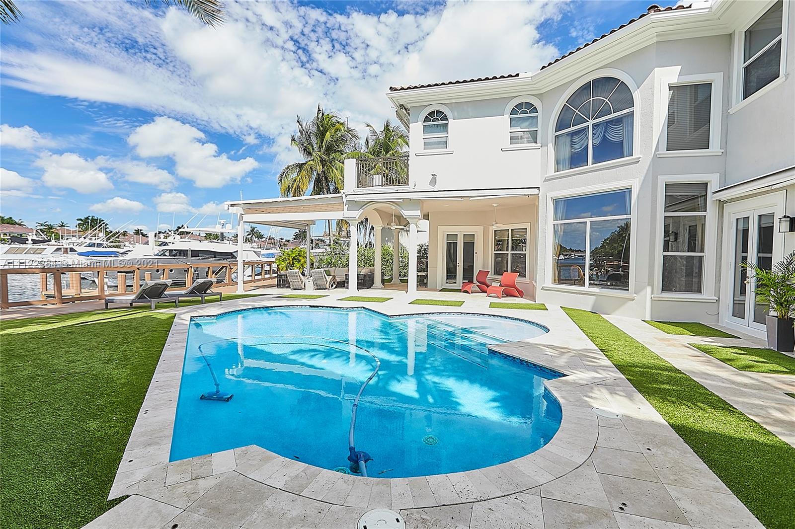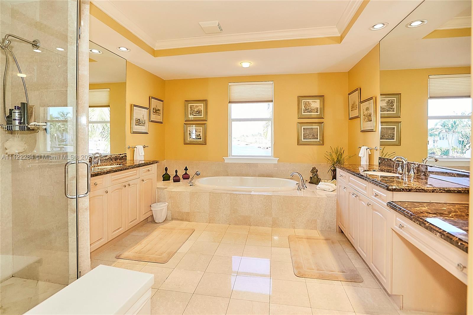 UNIQUE AND EXQUISTE WATERFRONT PROPERTY, HARBOR ISLAND. COMMODORE ESTATE. HOLLYWOOD. FL. 70 feet over the bay plus a dock where 2 boats up to 50 ft could be moored. No bridges to the Atlantic Ocean, Corner lot. 5 Bedrooms with en suite bathrooms plus 2 studios. Large windows, waterfront views, double high ceilings in the reception area, sub zero fridge and separate freezer, top of the line appliances, kitchen island and wine cooler, granite countertops, adjacent butler corner and large pantry, formal dining and family area with informal dining over water views all around. Magnificent outdoor area and fixtures, climatized saltwater pool, summer kitchen and 2 pergolas for “al fresco” enjoyment. 3 A/C zones, 3-car garage. Saturnia floors and much more. Furniture not included.