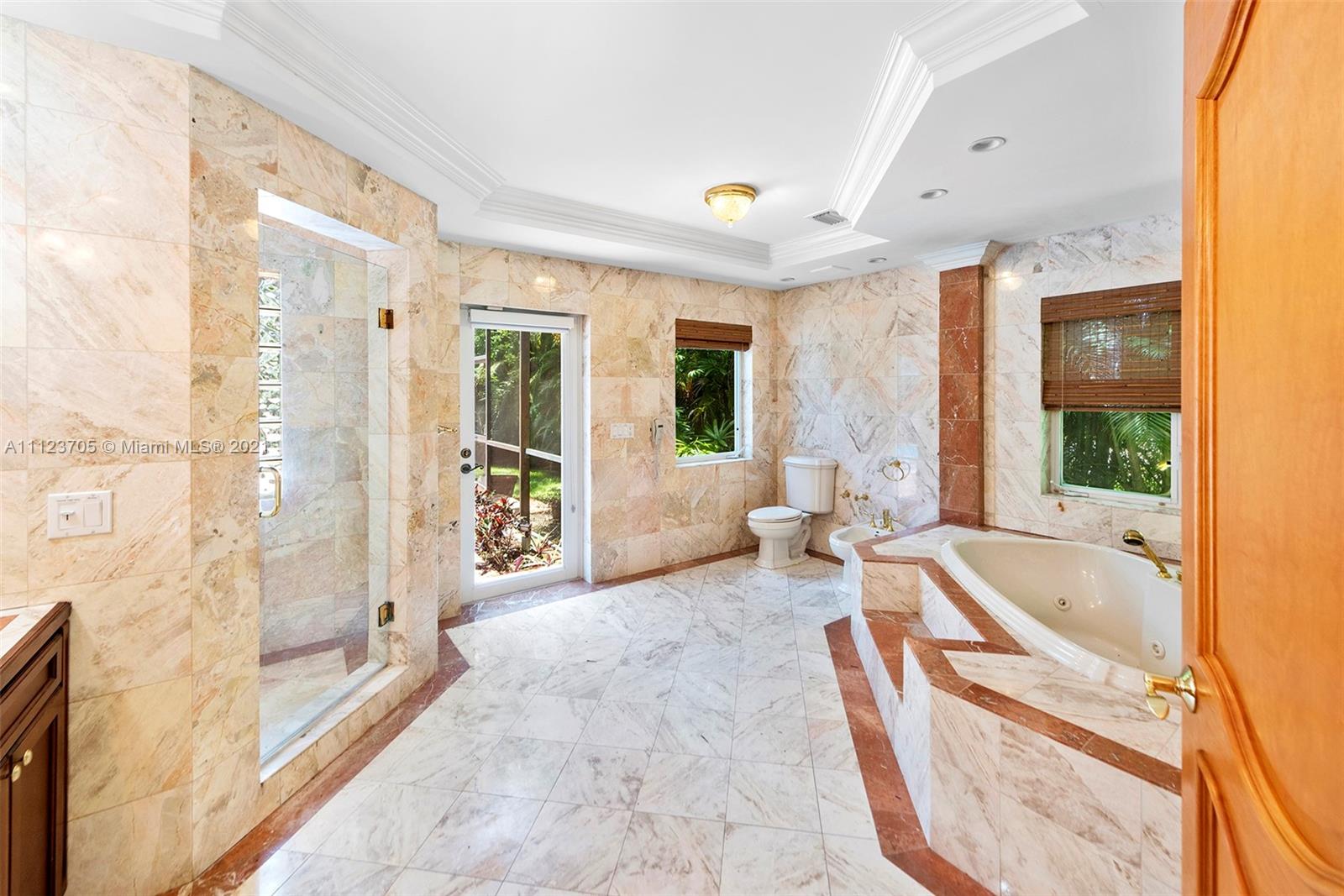 Gated Pinecrest estate home partially updated on a lush acre of 4134 Adj. SF (per appraiser). Surrounded by a gorgeous tropical canopy of plantings and exotic fruit trees. Private and lush! Convenient location with excellent public and private schools. Impact windows, recent electrical and plumbing updates. Marble floor. Large and luxurious master suite with huge walk-in and bath. Great floor plan, formal living and dining rooms. Fabulous family room. Fireplace. Oversized redone inviting pool and patio. Recently freshly painted. Generator and more! Open and Airy! The perfect canvas for you to make it your own!! Fabulous opportunity to own this prime Pinecrest acre home! Please note on Broker's remarks for showing instruction.