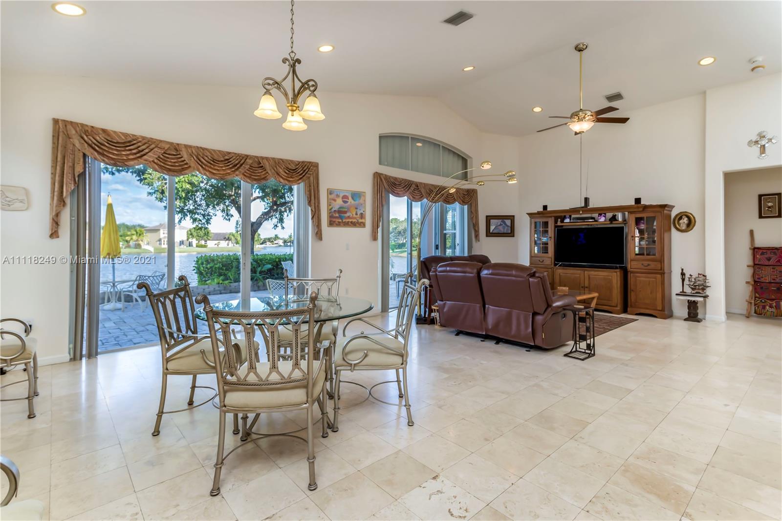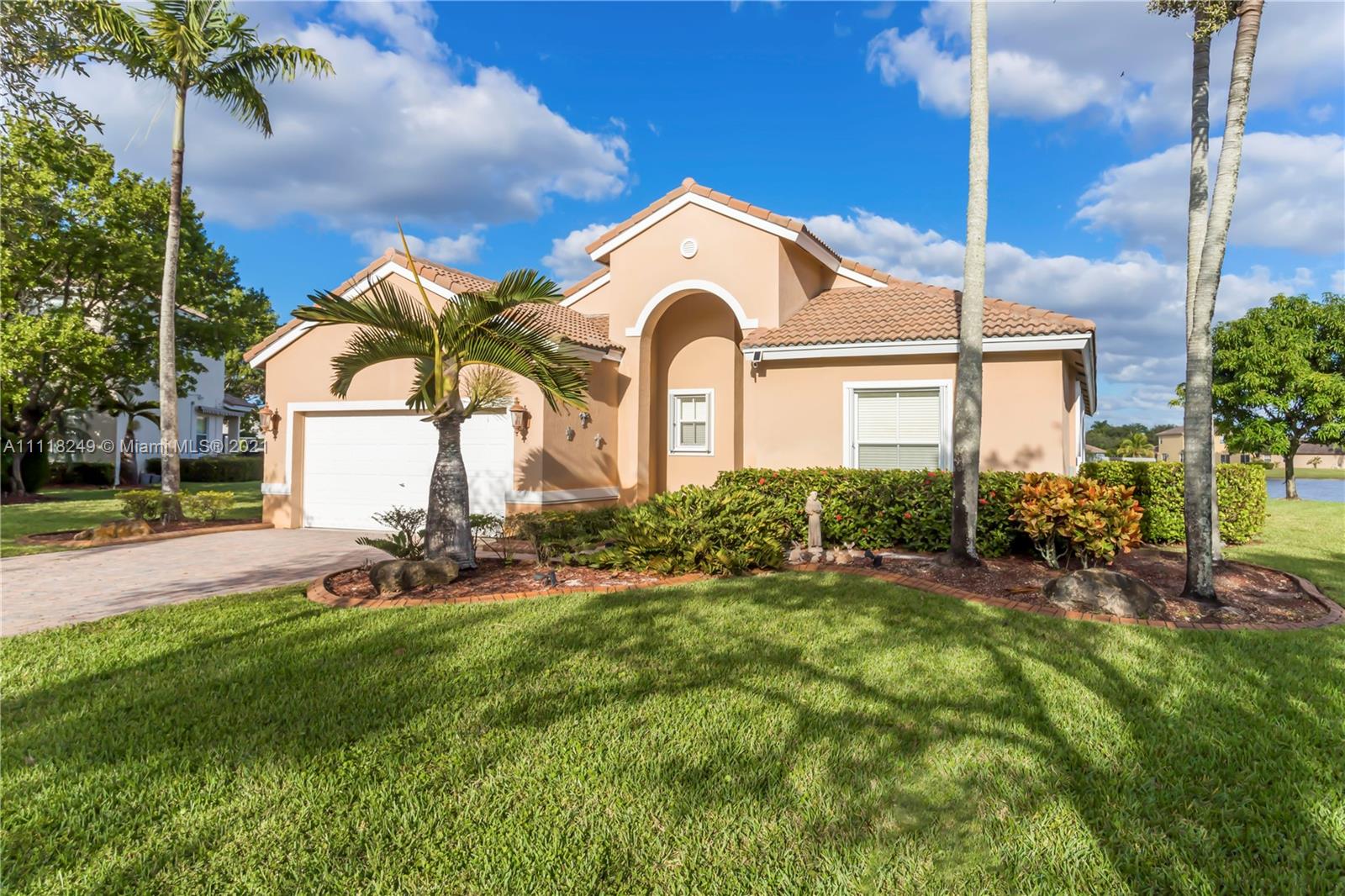 Beautiful four bedroom, three bath, one story home in Sunset Lakes! This home sits on one of the largest lots in Monaco Cove - over 14,000sqft, with spectacular lake views! The backyard also features a large travertine patio, oversized grassy yard and fruit trees! You will have peace of mind as there are accordion shutters throughout and an updated A/C! Spacious kitchen with stainless steel appliances and a large center island.