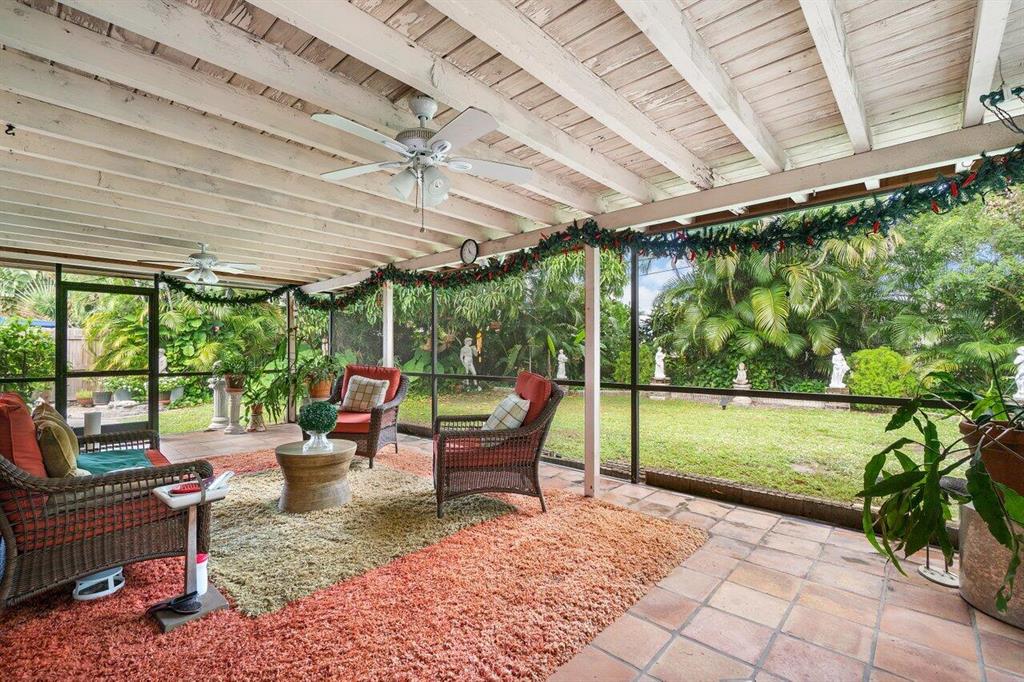 Lovely home under some shady oaks on a beautiful street in Chatham Hills. Large family room with a fireplace, faux beamed ceilings and glass doors that lead out to a huge patio and a shady backyard. Plenty of room to add a pool. Open kitchen. S-tile roof. Incredible location. Walk to shopping and parks. This home is a bike ride to the beach, downtown and Mizner Park. The third bedroom is a small room off of the laundry room that had a shelving unit built into the closet. It is really most suitable for an office. Do not miss out on this opportunity!