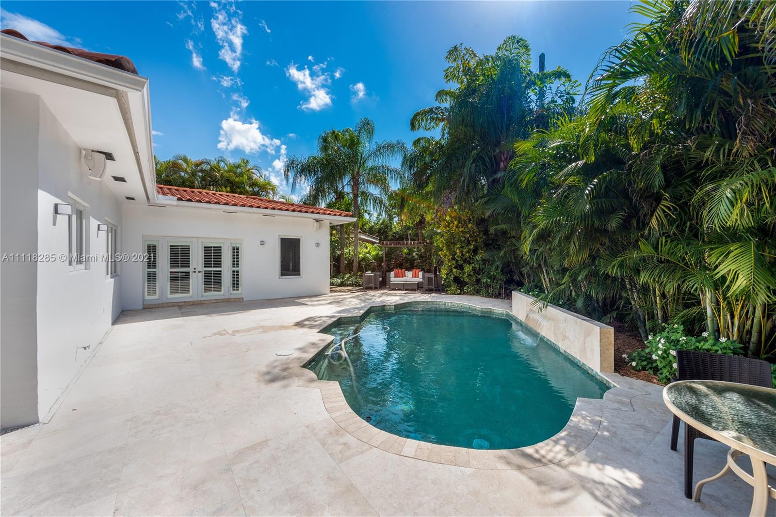 Stunning new listing on historic Country Club Prado. Enlarged in 1995 by Ramon Pacheco this five-bedroom, four-bath home has over 3800 adj. sq. ft. and sits at the end of a cul de sac (near the corner of Red Road and Coral Way) on a large lot with generous parking space for major entertaining. Double front doors to foyer. Living beyond with all family bedrooms off the hall to the left. French doors from Fam. Rm open to the spacious pool/patio. Formal DR. New kitchen with breakfast area. Laundry room. Oversized two-car garage. There is also a maid's room and a full bath. Large office/game room off LR. Huge master suite with separate desk area, walk-in closet, gorgeous new bath. Home would be good as a consulate because of its floor plan/abundant parking... Light, bright, and move-in ready.