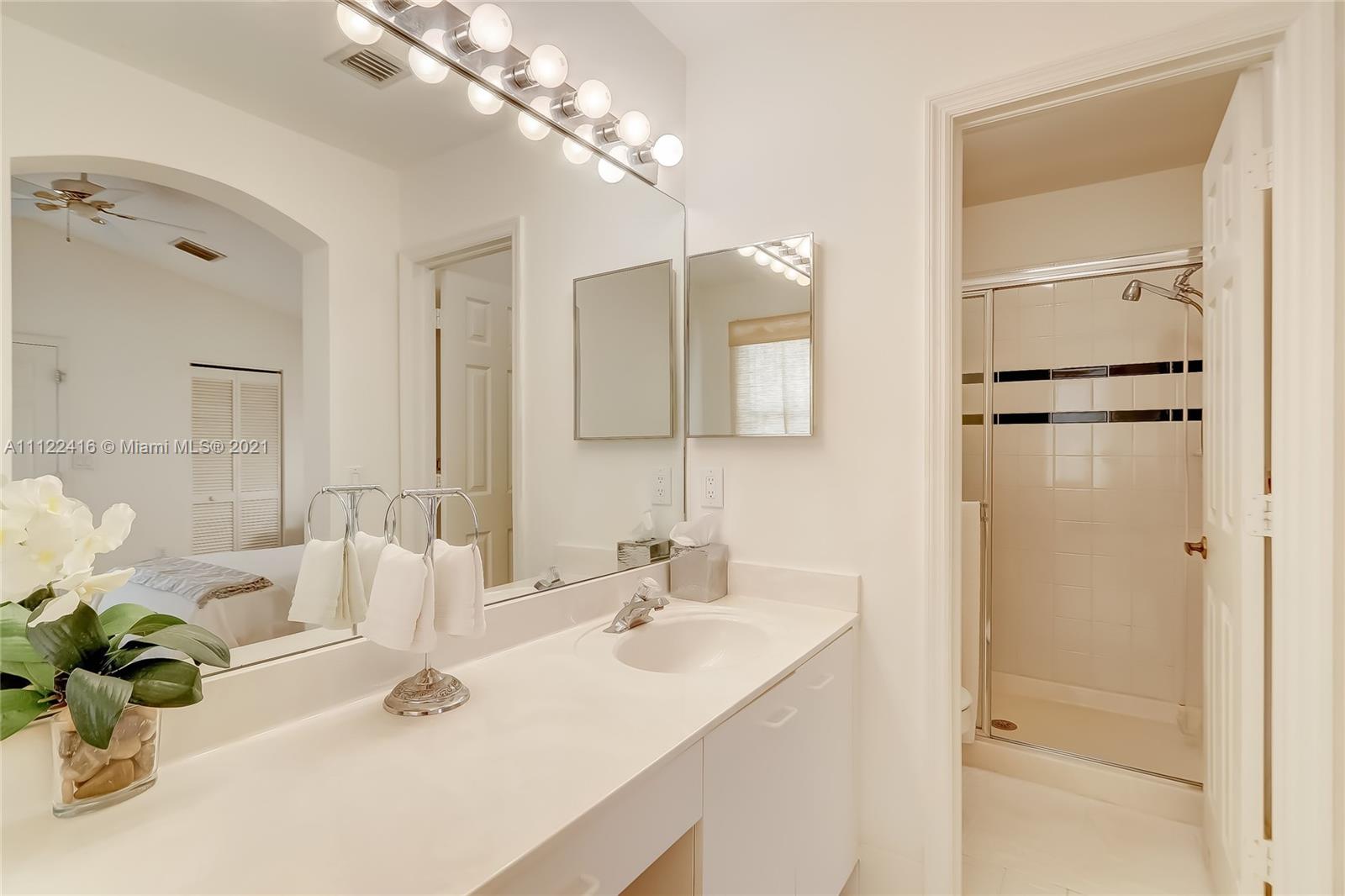 Nestled along a tree lined street this great townhouse has 2 master suites. West Lake Village is located East of US1 off of Sheridan. This particular unit is situated on one of the best lots in Westlake Village. One full bedroom and bath are downstairs and a full bedroom and bath upstairs with a huge walk in closet. A large open kitchen with a breakfast area. The living and dining areas have access to the patio area which is great for entertaining. Just a bike ride to the beach, Roof 2020, A/C 2016 and full hurricane panels to provide protection and receive insurance discount. West Lake is 24/7 guard gated, minutes to the airport and shopping. Amenities include tennis and basketball courts, heated swimming pool, clubhouse, gym and kids play area. Location couldn't be better.