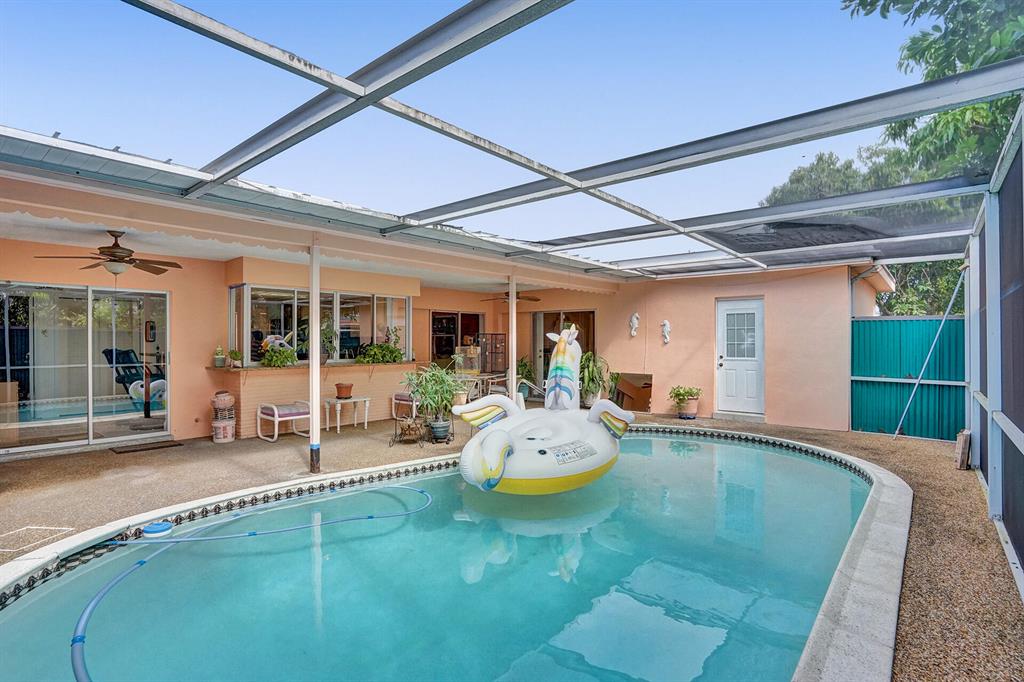 Fall in love with this beautiful, bungalow style pool home just 30 minutes from the amazing beaches of Florida's East Coast. This fabulous home is perfect for entertaining and also relaxing! This 3 bed, 2 bath home includes large living spaces with tile throughout, neutral color pallet, airy screened in pool deck with bath access making it a hostess's dream come true. Updated and refreshed kitchen includes new cabinets, granite countertops and stainless-steel appliances along with a wide window passthrough to the lanai. Roof replaced in 2018 and solar panels service the whole home. When it is time to unwind, enjoy the privacy of your fenced in back yard, a dip in the pool, a light breeze from your front courtyard, or just listening to the water from your master bedroom. Conveniently