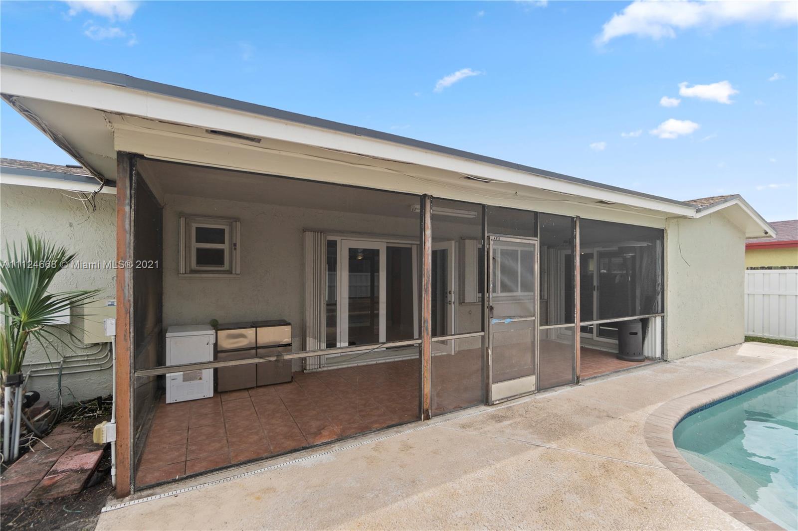 REDUCED to sell- Lovely pool home, beautifully located in the desireable sunrise. 3bd/2ba +Den, screed patio. Freshly painted inside and out. Upgraded impact windows and doors, new roof, a/c and heater. Fruit trees, paved pool area, privately fenced. Near two parks with walking/ exercise trails, dog park,Sawgrass Mall, Hockey & Concert Arena. 20 mins from both international airports, near major highways. No HOA community. Send your best offer- GREAT for INVESTORS Seller providing $3,000 credit towards closing.