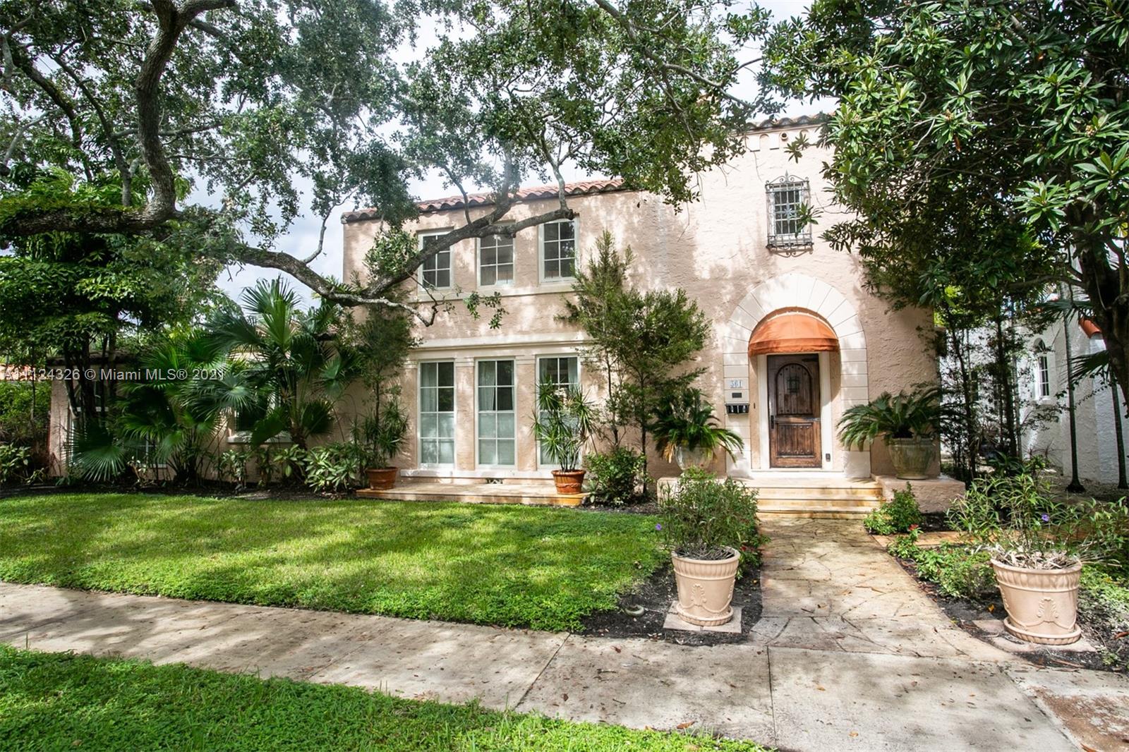 Astonishing Mediterranean home is a National Historic Landmark. 5 beds, 4 1/2 baths home nearly 4000sf on oversized 11.5K sf lot with garage. Fully renovated & modernized. Impact windows & doors. Spacious kitchen w/center island, granite counters, upscale steel appliances, dual oven & gas cooktop. Hardwood floors throughout. Spacious living room w/floor to ceiling windows & a fireplace. Formal dining w/elegant crystal chandelier. 2 Master bedrooms w/ his & hers closets. Master bath has upscale tile & open walk-in shower. Extra large heated pool, w/waterfalls & adjustable color lighting. Beautifully landscaped w/ greenery & historic oak tree, completely enclosed. Guest house w/ full bath & covered veranda. Walk to restaurants, banks, cafes, stores, 5 min to Miami Shores Country Club & Golf.