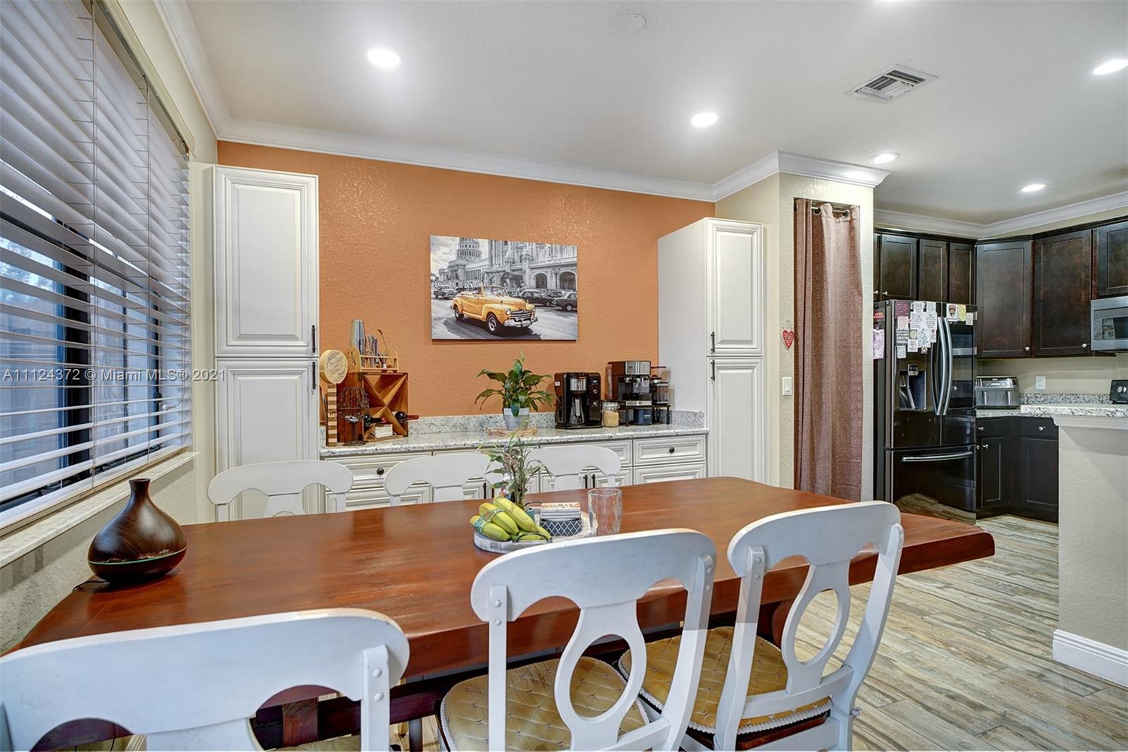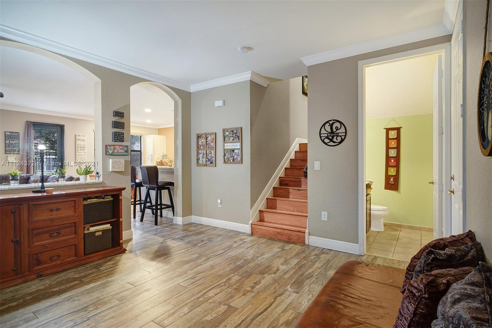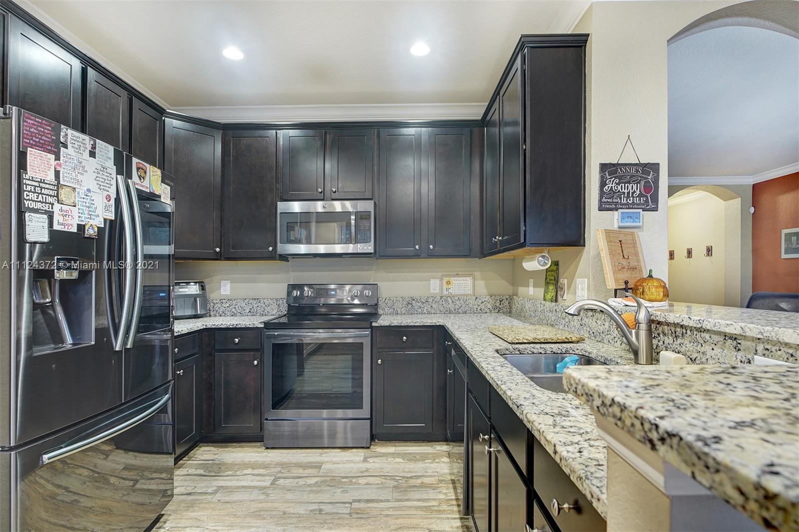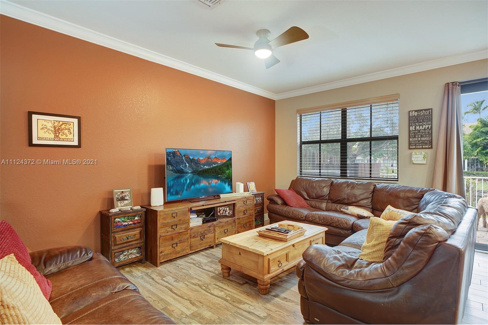 Check out this newer 4/3.5 Townhouse in highly sought out luxurious Vaquero Trails gated community in Davie; energy efficient upgrades galore from all new higher end appliances to LED lights/fans and new AC '21. Community resort like pool is steps away from this home, making it extremely convenient. Beautiful wood-like porcelain tiles and Victorian crown molding throughout both first and second floor give this home a warm feel. Dining Room includes added custom cabinetry with granite counter tops for even extra storage from the upgraded 42" cabinets in the kitchen. Hard wood stairs with recessed LED lighting lead you to the 4 bedrooms, which includes a 2nd suite with walkin closet and full bath in addition to the Master bedroom/office suite.