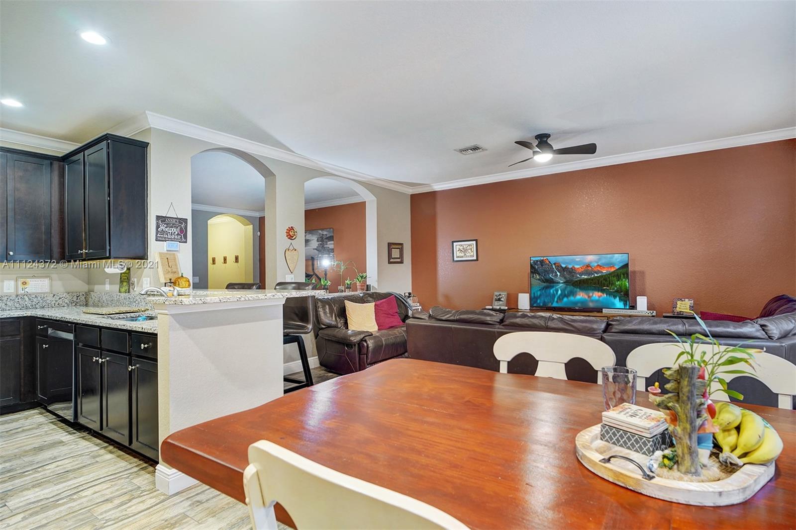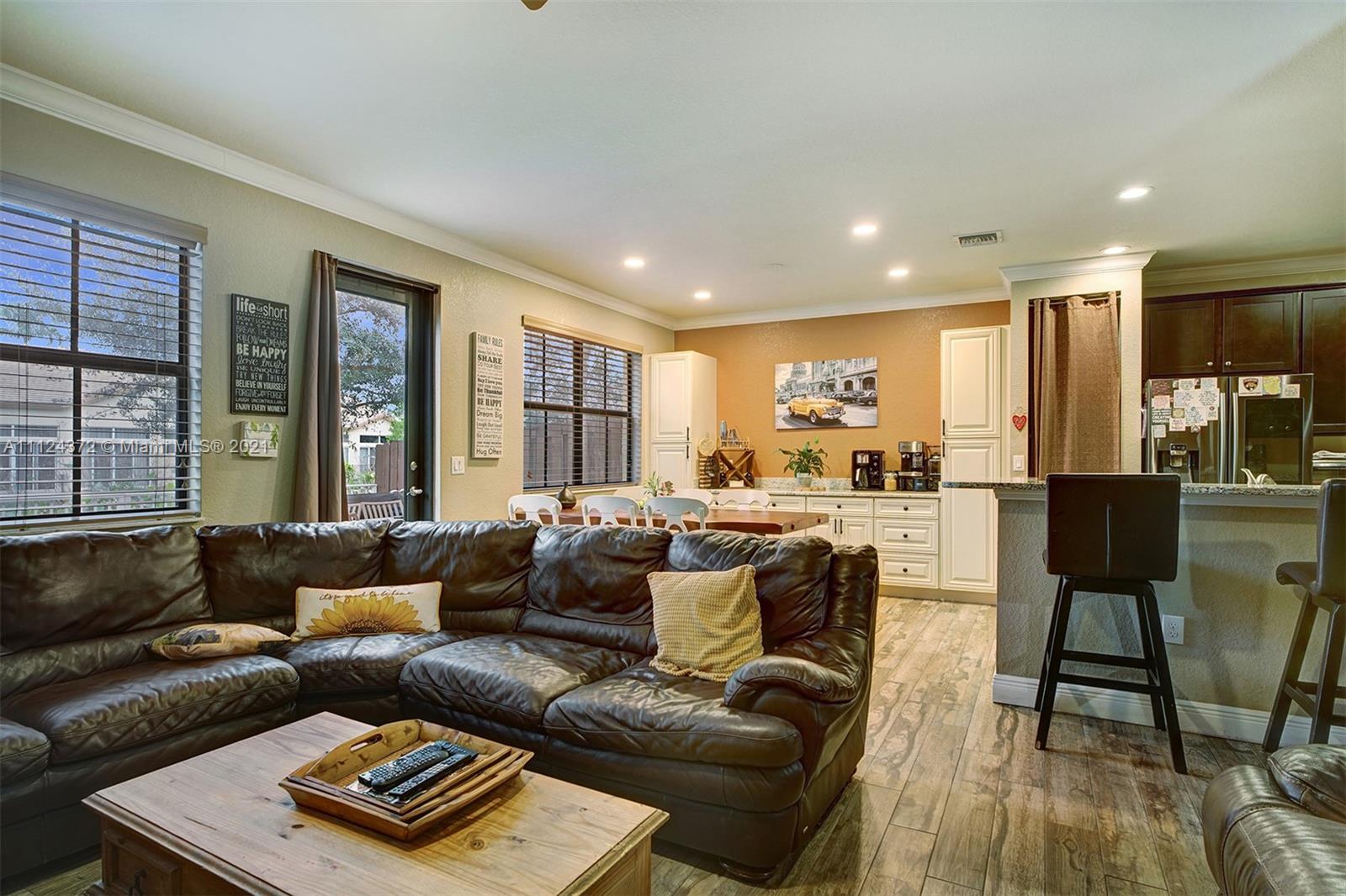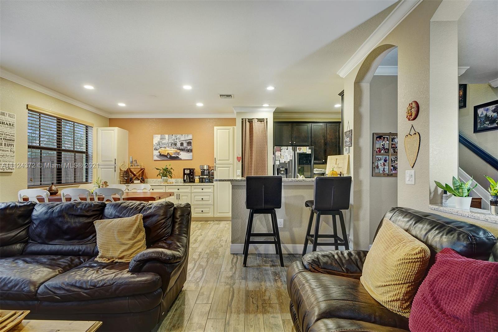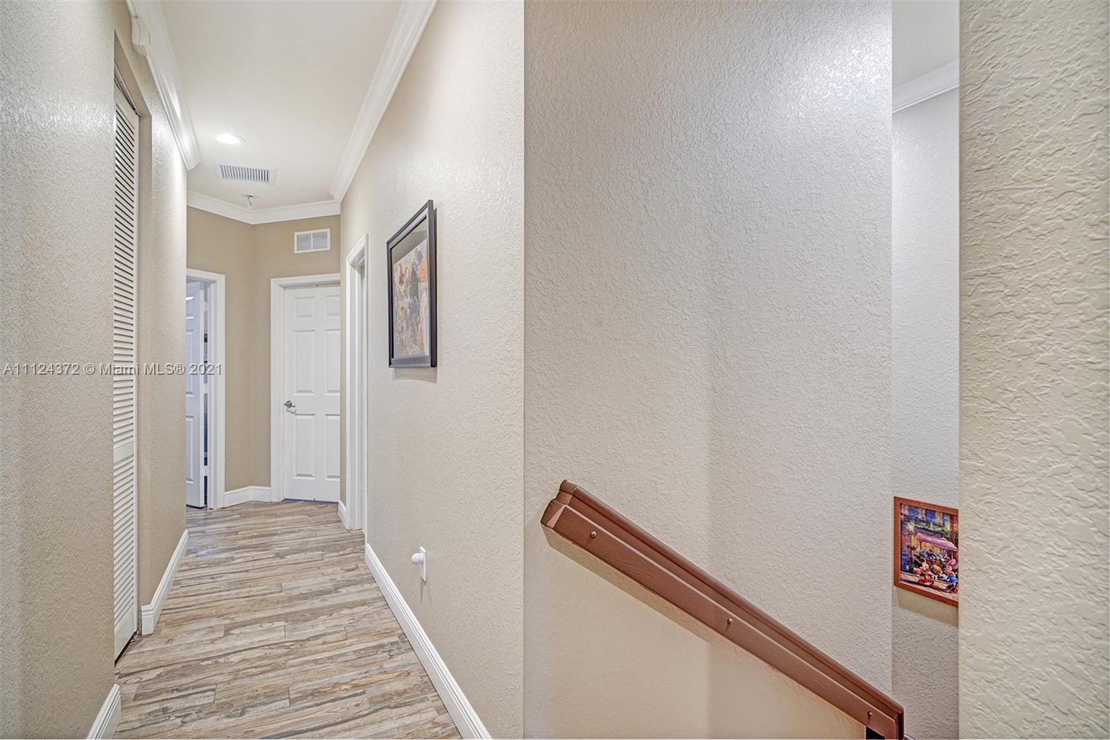 Check out this newer 4/3.5 Townhouse in highly sought out luxurious Vaquero Trails gated community in Davie; energy efficient upgrades galore from all new higher end appliances to LED lights/fans and new AC '21. Community resort like pool is steps away from this home, making it extremely convenient. Beautiful wood-like porcelain tiles and Victorian crown molding throughout both first and second floor give this home a warm feel. Dining Room includes added custom cabinetry with granite counter tops for even extra storage from the upgraded 42" cabinets in the kitchen. Hard wood stairs with recessed LED lighting lead you to the 4 bedrooms, which includes a 2nd suite with walkin closet and full bath in addition to the Master bedroom/office suite.