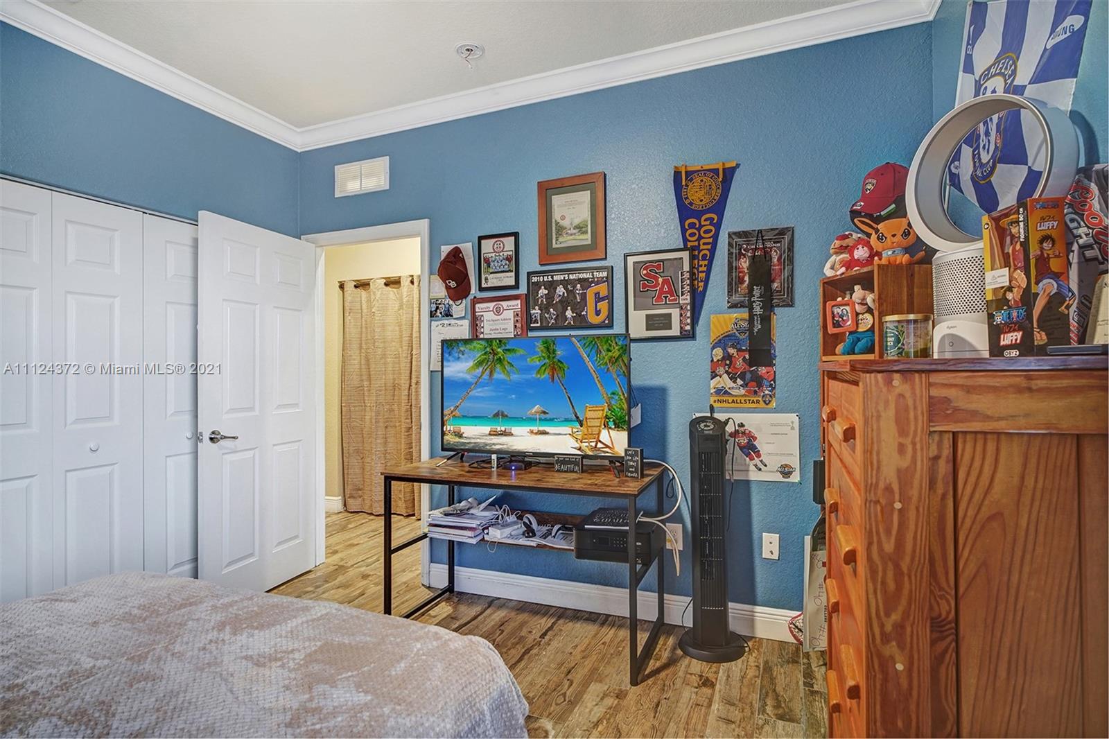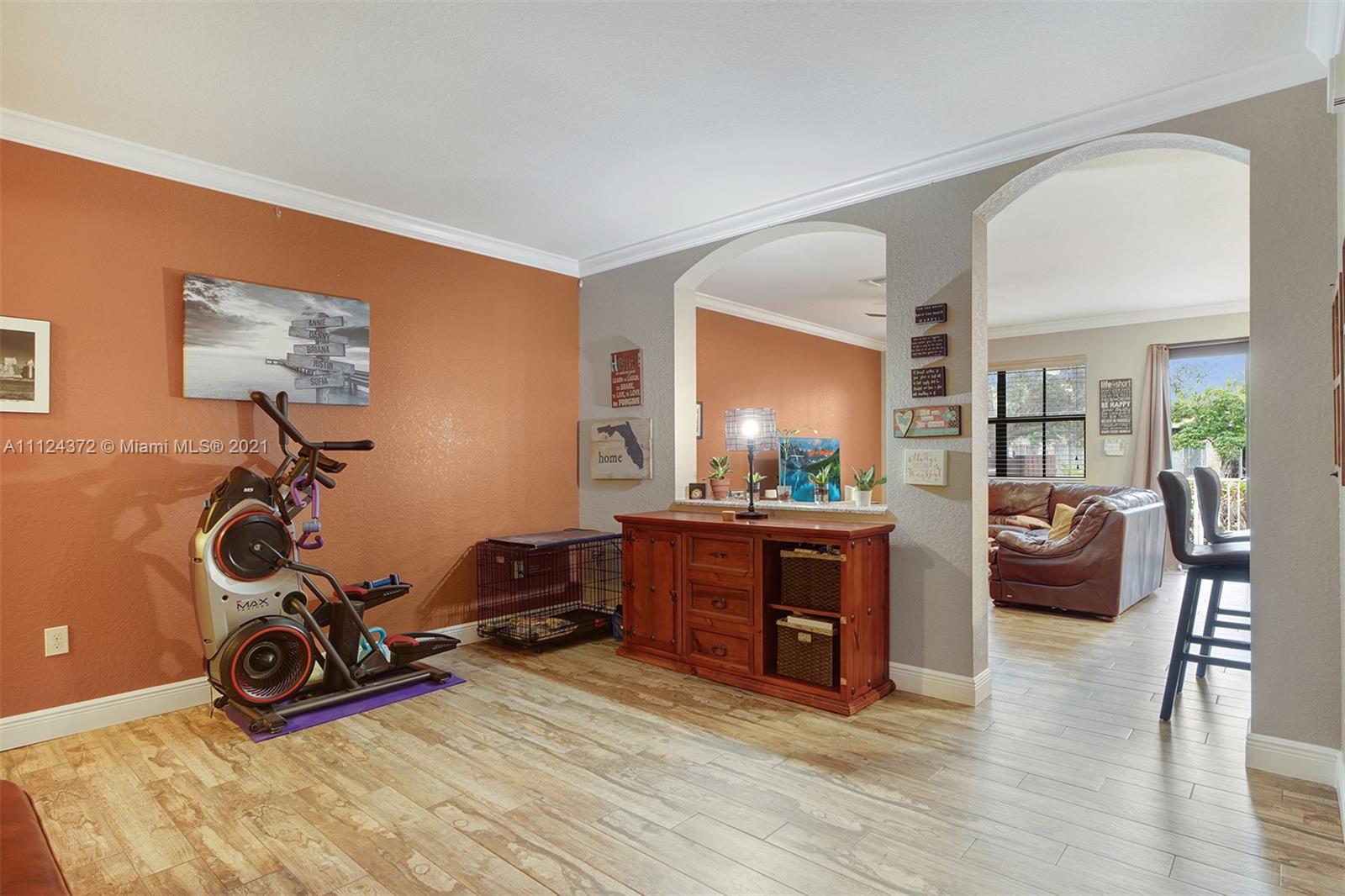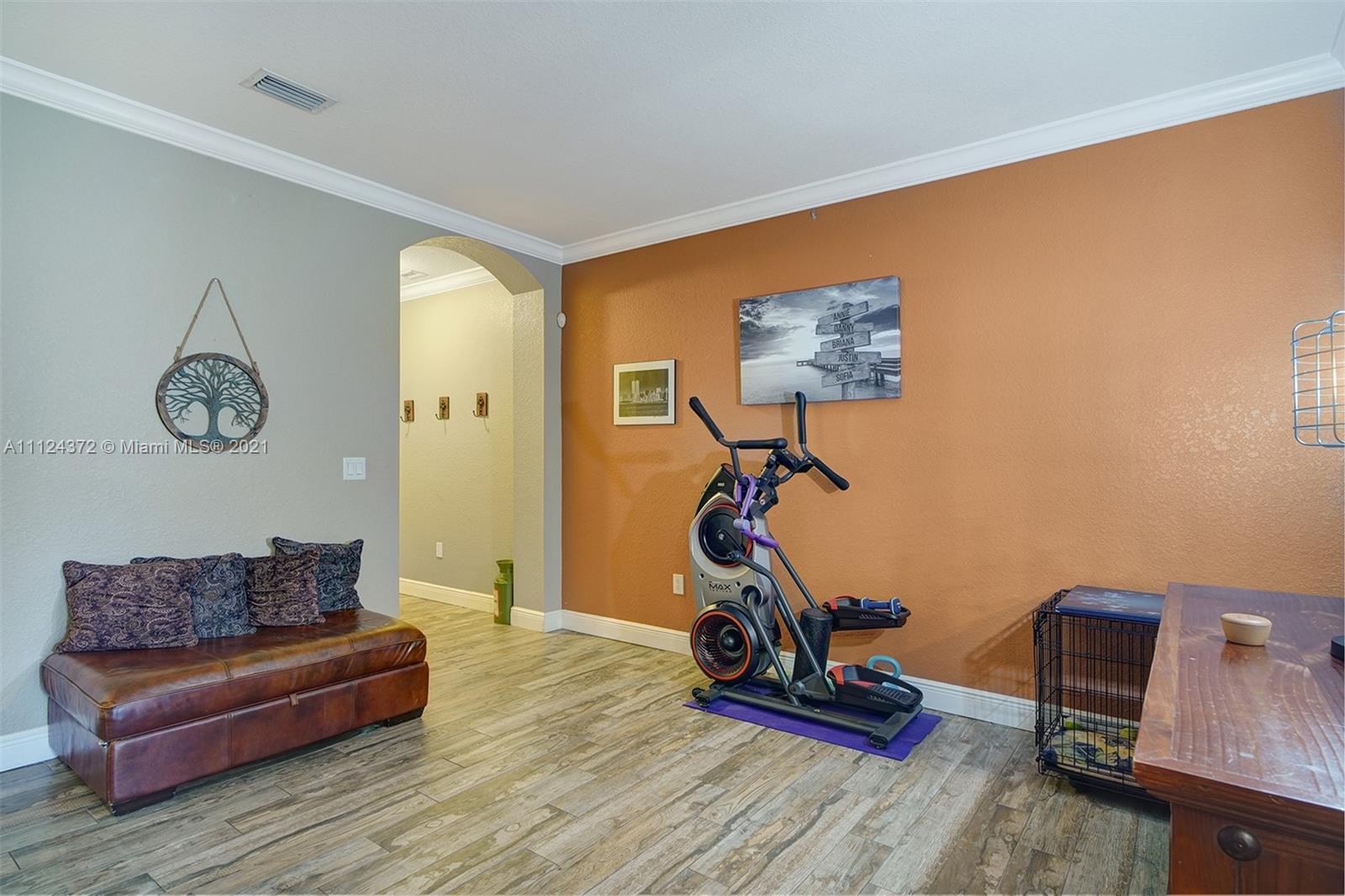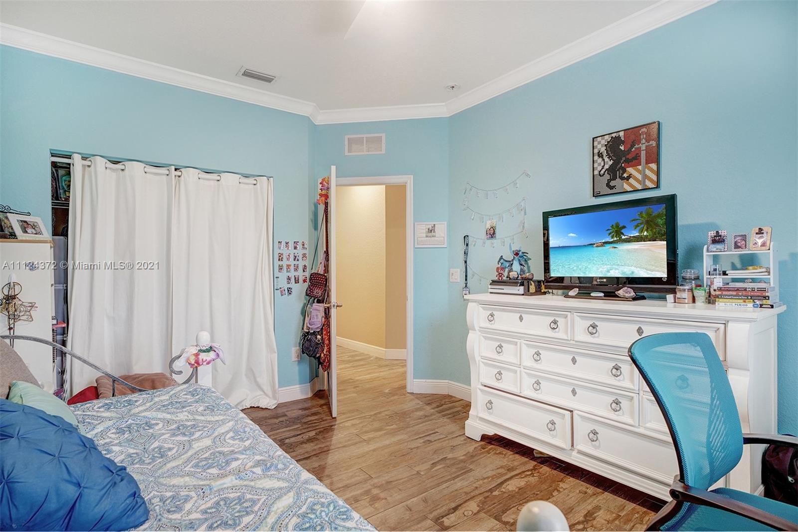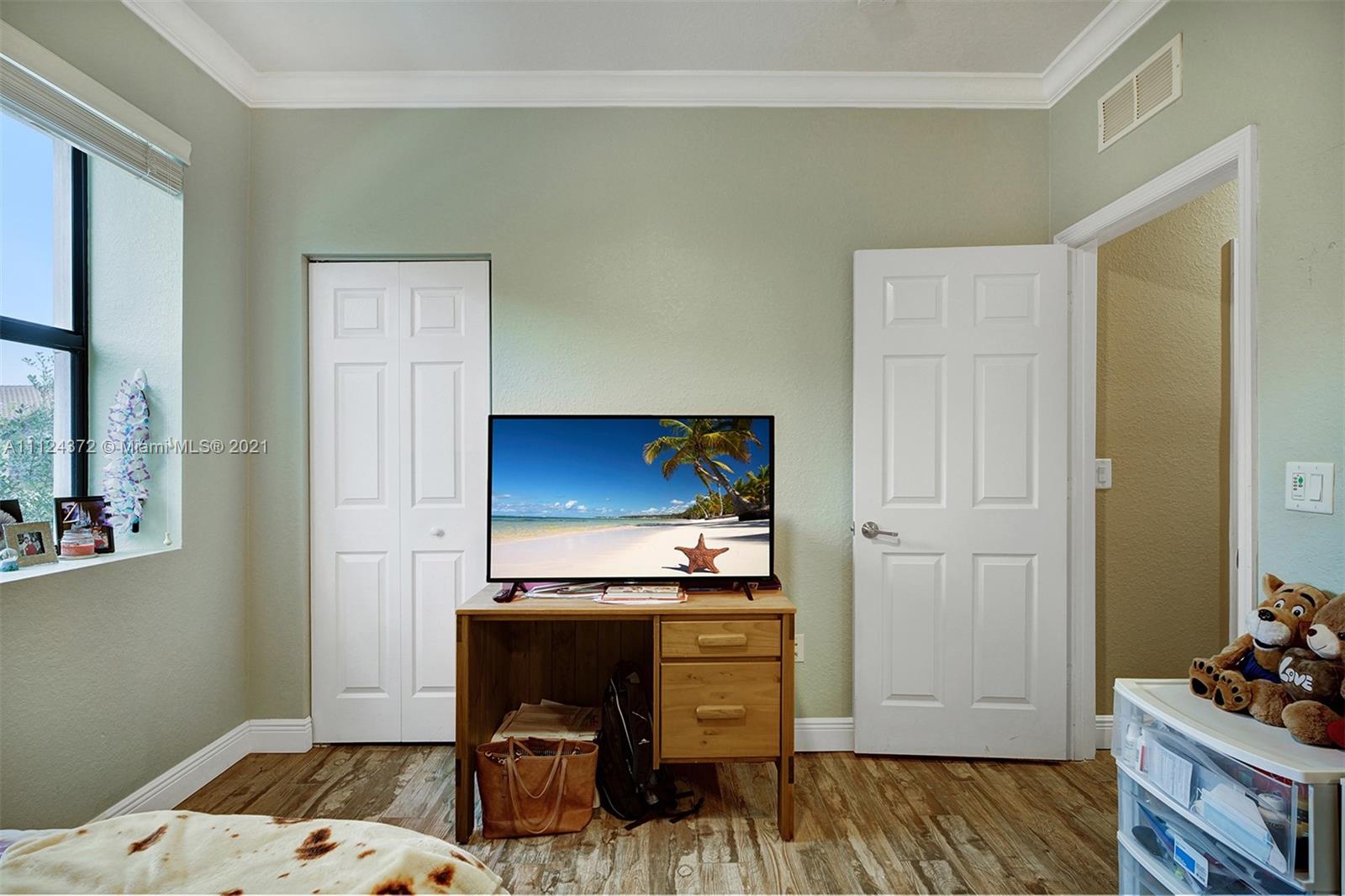Check out this newer 4/3.5 Townhouse in highly sought out luxurious Vaquero Trails gated community in Davie; energy efficient upgrades galore from all new higher end appliances to LED lights/fans and new AC '21. Community resort like pool is steps away from this home, making it extremely convenient. Beautiful wood-like porcelain tiles and Victorian crown molding throughout both first and second floor give this home a warm feel. Dining Room includes added custom cabinetry with granite counter tops for even extra storage from the upgraded 42" cabinets in the kitchen. Hard wood stairs with recessed LED lighting lead you to the 4 bedrooms, which includes a 2nd suite with walkin closet and full bath in addition to the Master bedroom/office suite.