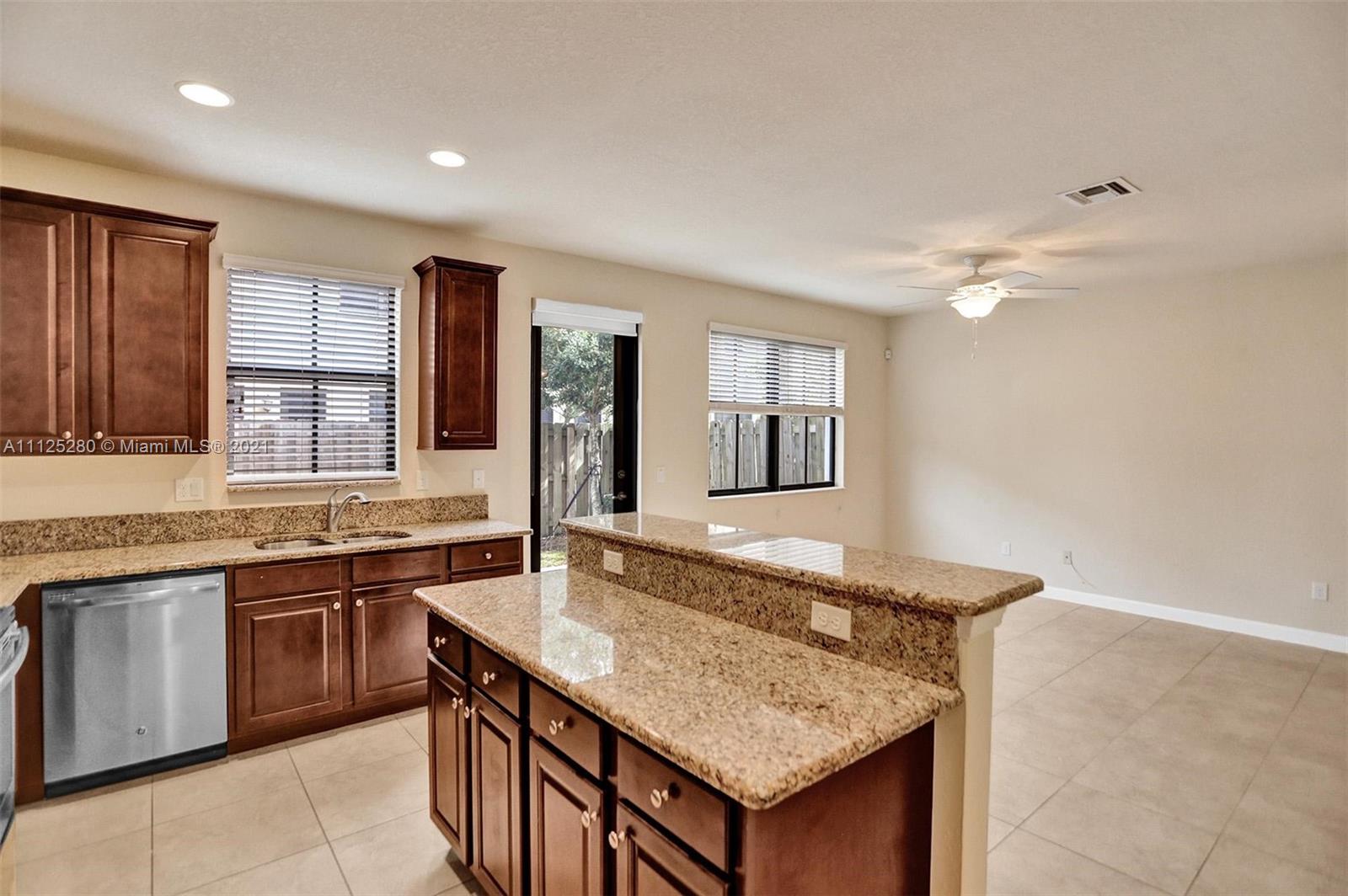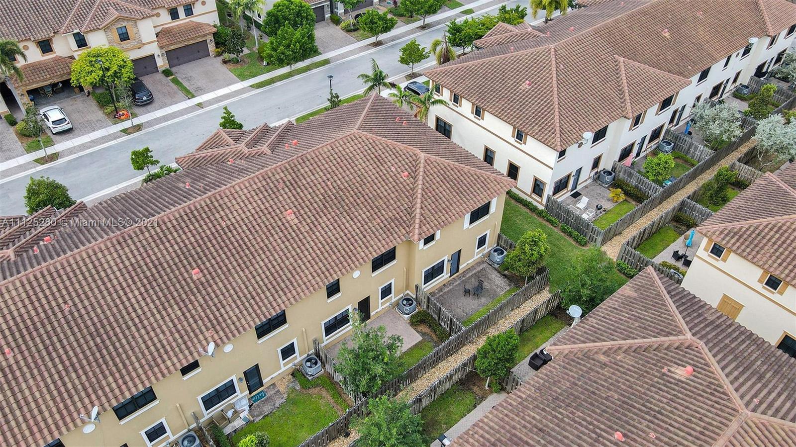 Spectacular 4 bedrooms and 3.5 bathrooms townhome at Town Parc at Mira Lago. This townhouse feature a stone entryway wall, beautiful tile floors downstairs and light color Carpet on stairs and second floor, granite kitchen counter tops, tall kitchen brown wood cabinets and Stainless Steel appliances. Fenced back patio/bricks. Impact glass doors and windows, Fulls size Washer and Dryer on second floor, ceiling fans in all bedrooms and social area. Town Parc is a 24 hour guard gated community with access to luxury pools, a state-of-the-art fitness center, an aerobic center, 24,000 sf MiraLago Clubhouse, splash park, playgrounds, tennis courts, basketball, biking/walking trails, and much more.