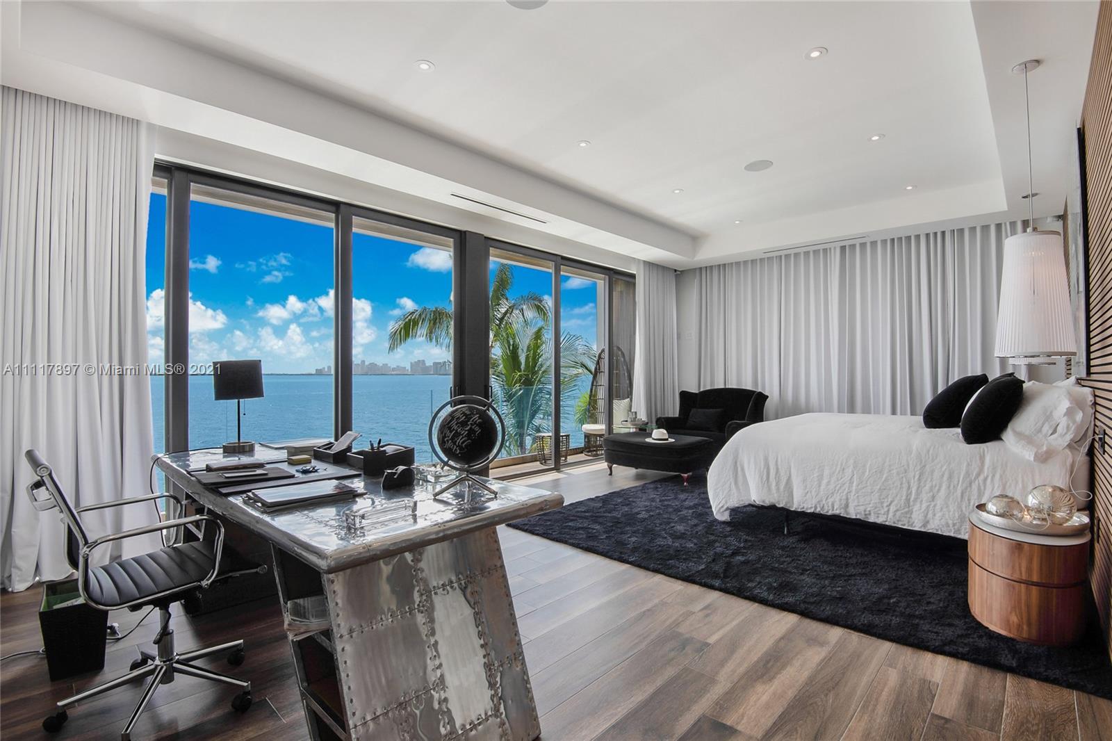 60Ft of wide open bay & downtown Miami skyline views. This modern masterpiece was built in 2019. Top of the line finishes, appliances and equipments. Spectacular living area, oversize outdoor patio and master bedroom with large his and hers closet. Pool is heated. No rental restrictions.
