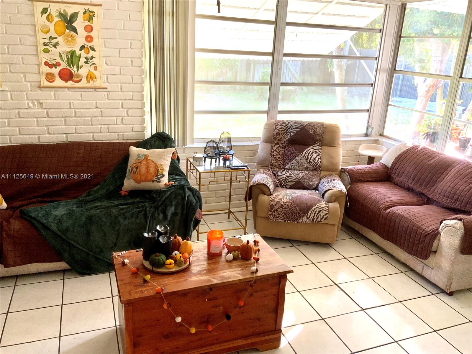 Charming 3 Bed 2 Bath home with 2 additional rooms (old garage) that may be used as an office, playroom, etc. Centrally located in the safe and highly desirable Palm Springs neighborhood, only minutes away from the Palmetto Expressway, Restaurants, Shopping Mall and Hospital. Cozy family room leading to an outdoor covered patio great for BBQs and family gatherings. Large fenced backyard with mango and avocado fruit trees, also room for a pool. Accordion shutters throughout the front of the house & hurricanes aggregated panels for the remaining windows. House has been freshly painted outside, large driveway w/ plenty of parking. The roof was replaced in 2011. House sold "AS-IS", just use your imagination to create the perfect home for lifetime memories. NO HOA!