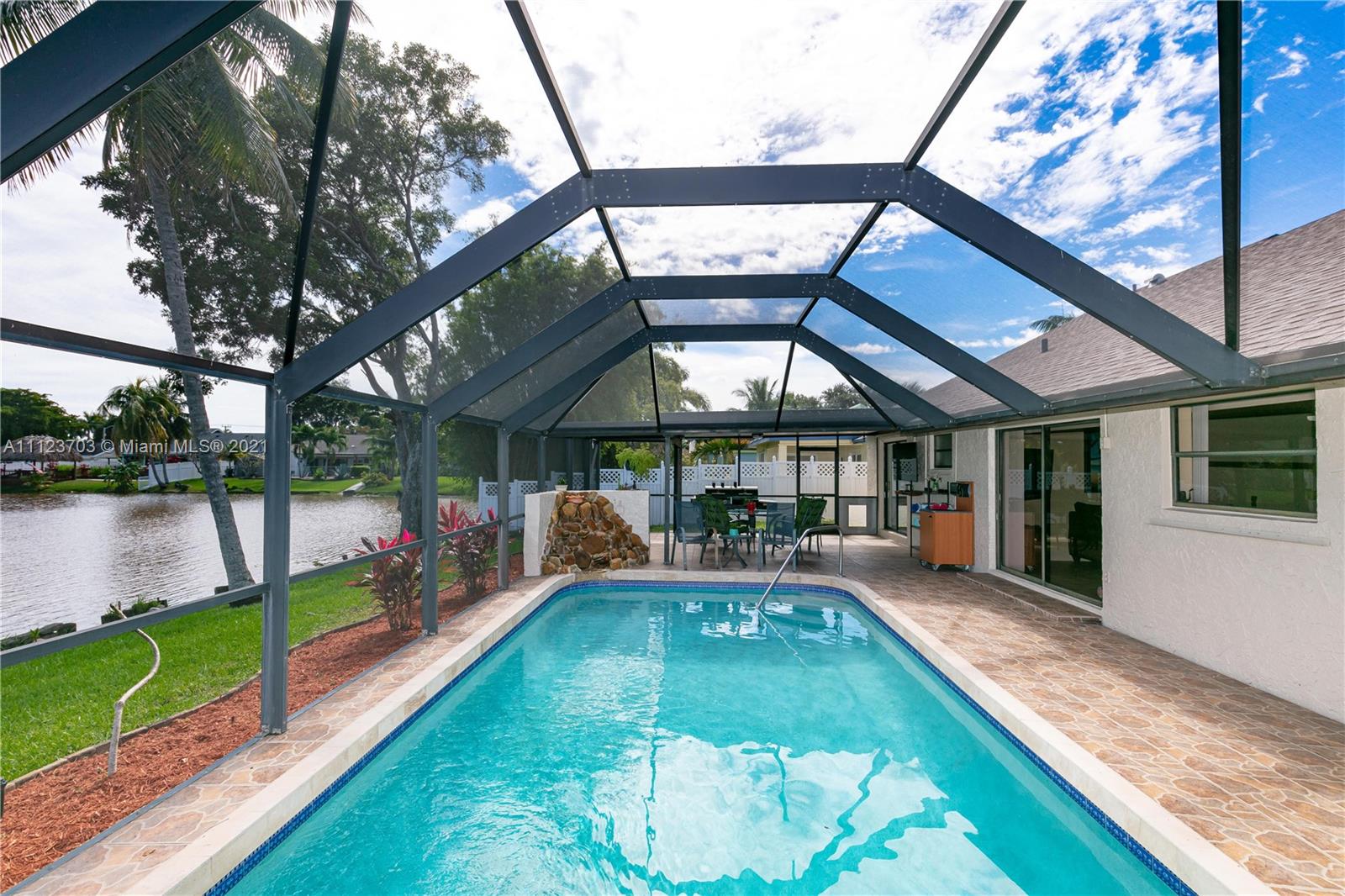 BEAUTIFUL 3/2 home with EXTRAORDINARY LAKESIDE views. This lovely freshly-painted home is ready for move-in! Enjoy relaxing by the heated pool in the enchanting patio area with heavy-duty screen and plenty of space for entertaining. Brand new roof (less than 1 year) and open-vaulted ceilings! The spacious kitchen with a pass-through window has been immaculately kept. New carpeting in all 3 rooms with wonderful natural lighting and the rest of the home has elegant porcelain tile. The white stone working fireplace is the centerpiece of this gorgeous home. You will feel safe knowing you have a hurricane proof front door and hurricane shutters for the windows. NO HOA! Very close to Sawgrass Mall and major highways. Perfect for ANY family (including a fenced area for pets). MUST SEE HOME!!!