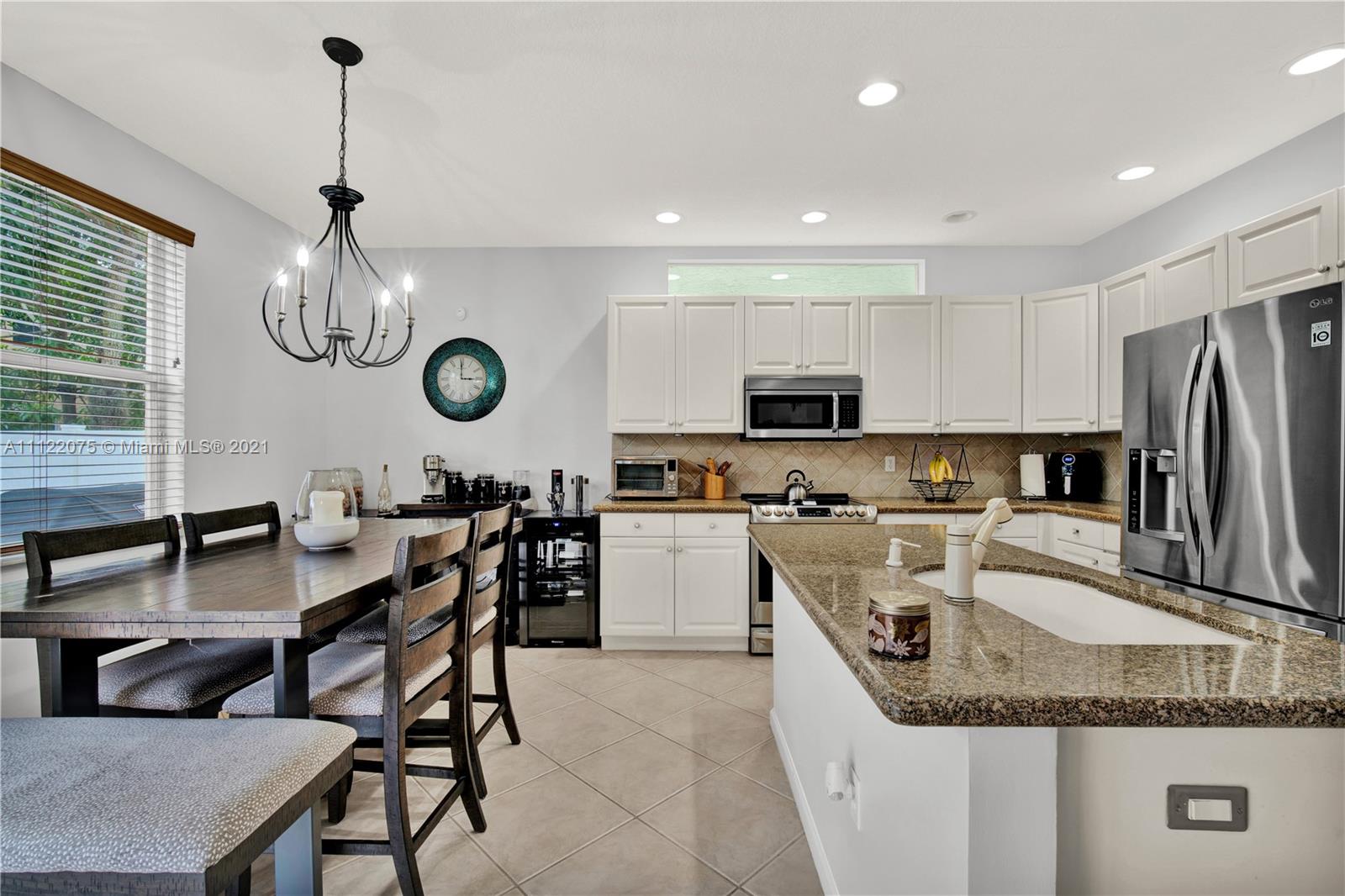 Interiors boast 2,180 sqft of pristine interiors, soaring ceilings, durable tile flooring, and stylish updates from top to bottom. The kitchen is sure to be a favorite space to relax and entertain small to large gatherings finished with granite countertops that flow into a large center island, classic white cabinetry, and stainless steel appliances all open to a breakfast room and family room allowing for a spacious open floor plan. Live a lifestyle of luxury and convenience with access to unparalleled amenities including a state of the art community center with an amazing exercise room, play room, and more while the outdoors offer jogging/walking trails, tennis and basketball courts, playgrounds, a pool with waterfall features and so much more