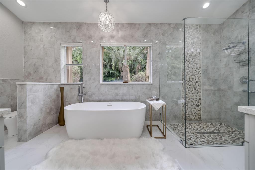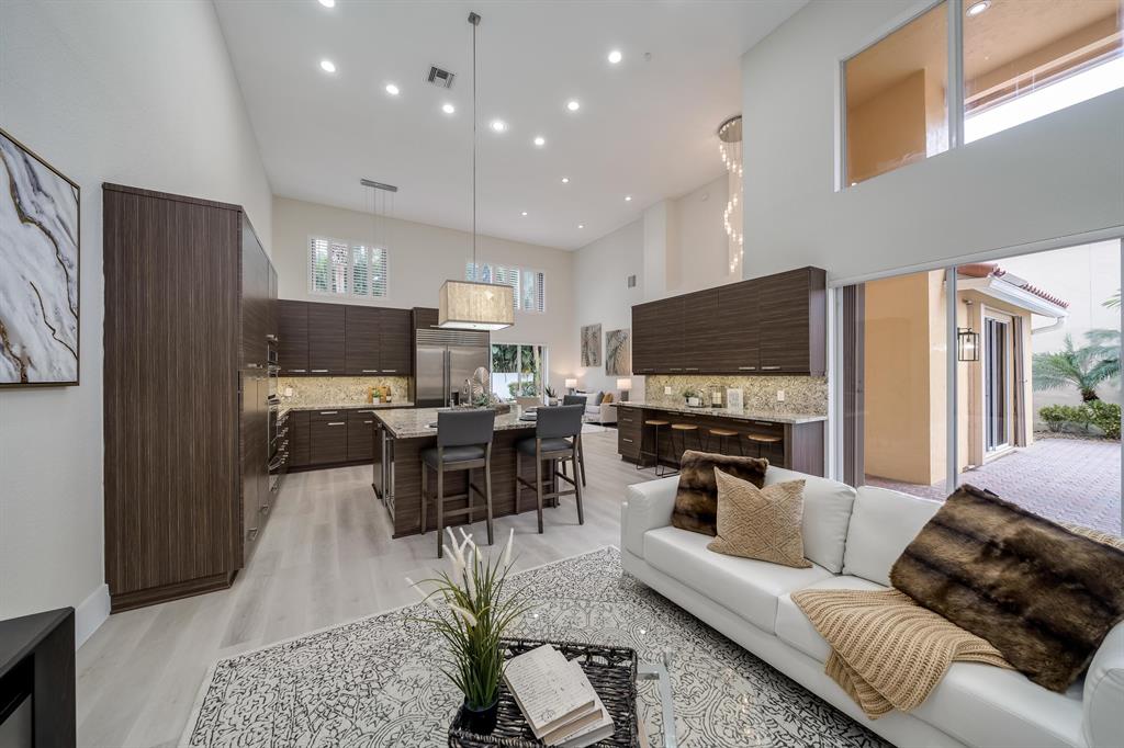 AMAZING DREAM HOME! GORGEOUS ALL REDONE OPEN, SPACIOUS, AND GATED FIVE BEDROOM COURTYARD POOL HOME WITH SOARING 18 FOOT CEILINGS, SPLIT FLOORPLAN, UNBELIEVABLE CHEF'S KITCHEN, BRAND NEW A/C AND FLOORS, 2021 ROOF, INCREDIBLE MASTER SUITE WITH DUAL WALK-IN CLOSETS AND STUNNING CUSTOM MASTER BATHROOM. KITCHEN INCLUDES MASSIVE GRANITE ISLAND, CUSTOM INDUCTION STOVETOP, SUBZERO REFRIGERATOR, BOSCH DISHWASHER, AND ALL HIGH-END STAINLESS APPLIANCES. COURTYARD PATIO WITH HEATED CASCADING WATERFALL POOL AND PEACEFUL BACKYARD ARE BOTH GREAT FOR ENTERTAINING OR RELAXING. INCLUDES VERY PRIVATE GUEST HOUSE WITH BEDROOM & BATHROOM-PERFECT FOR A HOME OFFICE OR GYM. IDEAL CENTRAL BOCA LOCATION IN LOW HOA CARRIAGE HOMES OF WOODFIELD WITH OPTIONAL BUT NOT MANDATORY COUNTRY CLUB AND ALL A RATED SCHOOLS.