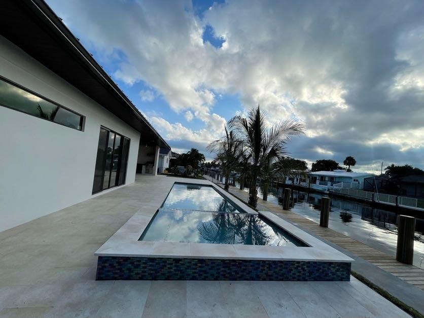 New construction/waterfront in East Pompano Beach, canal front, ocean access home designed to provide the best Florida living lifestyle. New 65 feet private dock/seawall, heated pool & spa, large covered patio, cabana bath and outdoor kitchen. Step inside to a luxury finished modern interior, high ceilings, simple one story living, European porcelain tiles throughout entire home, marble baths, custom cabinetry & closets, high end appliances and plumbing fixtures. 4 beds, 1 master, 1 en-suite, 3 full baths, 2 half baths. Built for the peace of mind with many upgrades, high impact doors & windows, metal roof. Only a few min to the beach, amazing restaurants, airport and Fort Lauderdale. Ready to move in December 2021. By appointment only!