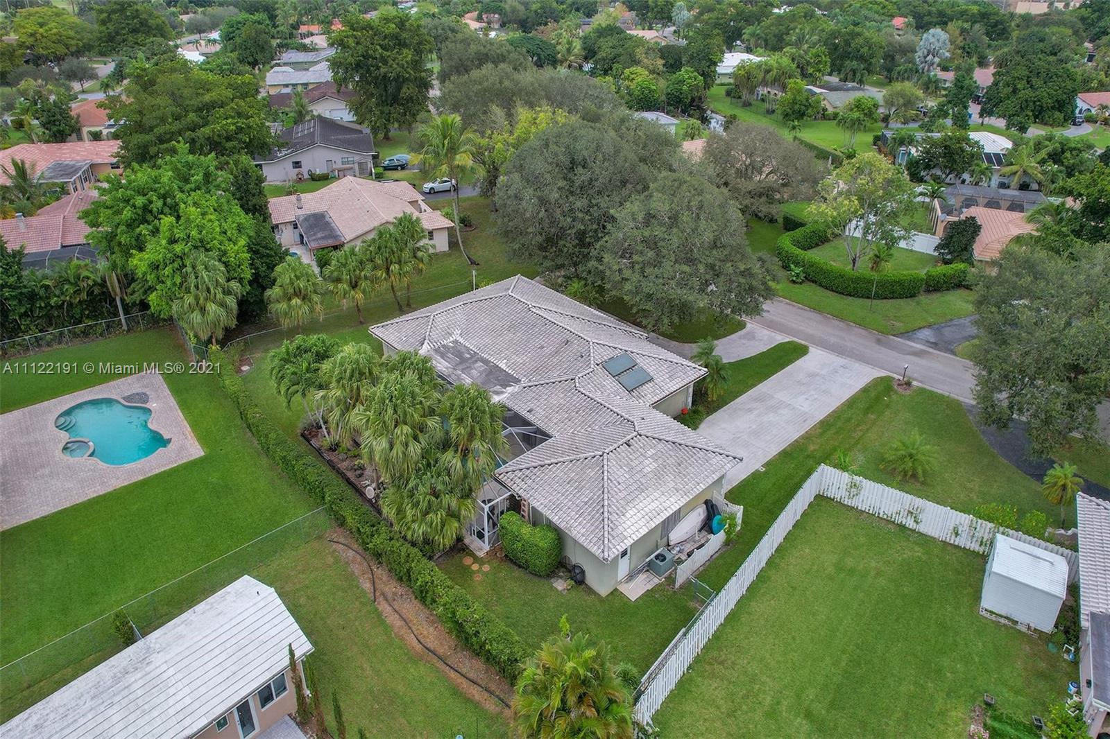 OPEN HOUSE 11/21 1-4pm-Welcome home to this rare gem in Coral Springs Country Club! Situated on over 1/3 acre featuring a 4-car garage unlike anything in the area! Driving up to the home you are welcomed by 2 mature canopying trees, the most charming curb appeal, a circular driveway for 7-8 cars & a secondary driveway with space for up to 10 cars! Featuring 2 spacious Primary bedrooms, triple-split floor plan, updated bathrooms & kitchen, bar area, newer appliances, solar option Lochinvar 120gal water heater, attic fan, panel shutters & more! Relax or entertain poolside under your reinforced covered patio, extended pool deck w/ KoolDeck flooring, featuring '16 marcite/coped pool & '16 screen pool enclosure. Filled with many great features & upgrades, ready for you to update to your taste!