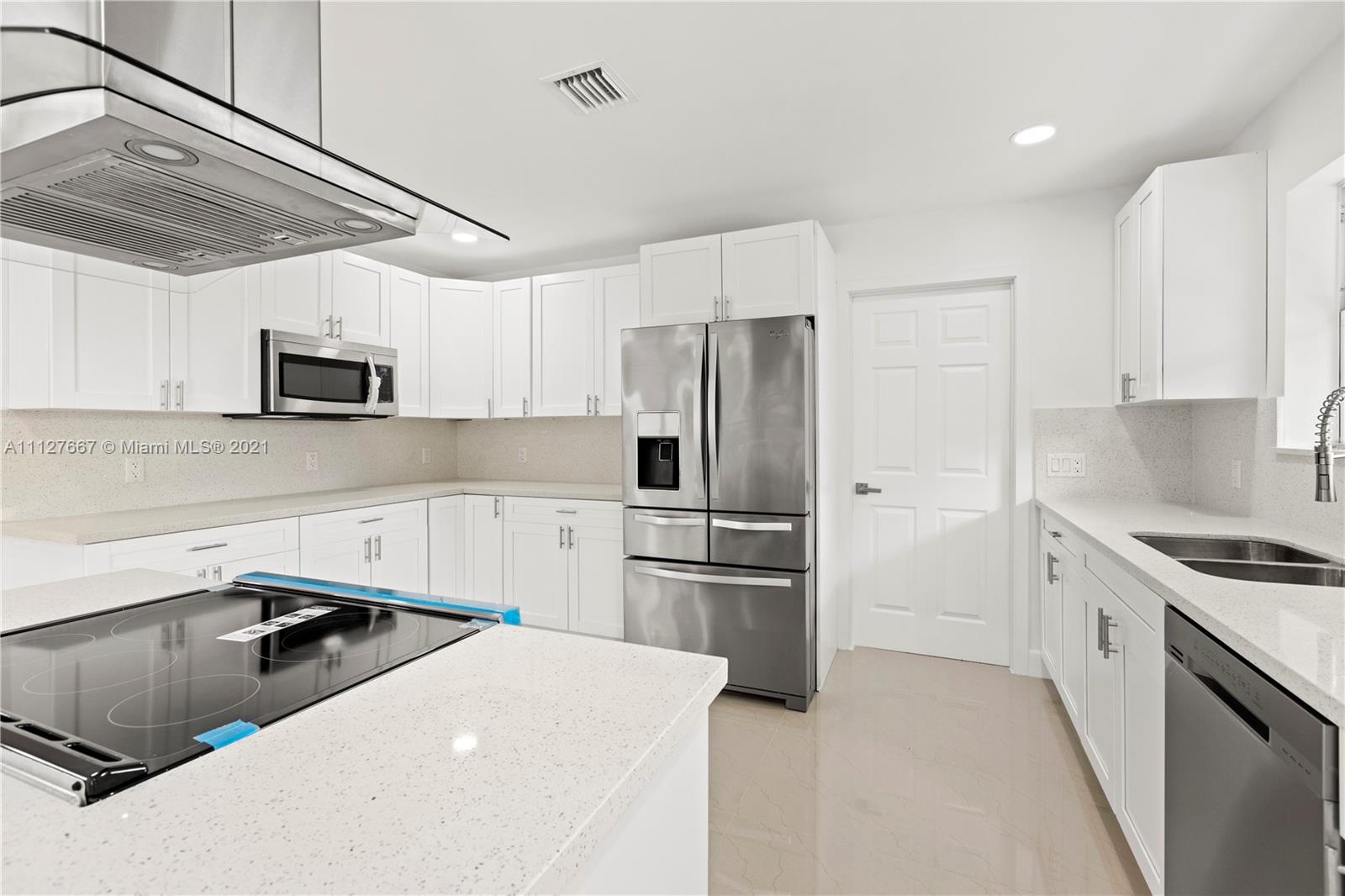 This completely remodeled ready to move in home truly checks off all the boxes! The home boasts 3 bedrooms, 2 bathrooms with a pool on a spacious corner lot! Numerous features include: fantastic open floor plan great for entertaining, renovated bathrooms, porcelain floors, LED recessed lights, and privately fenced in backyard. Kitchen offers spacious new cabinetry with cook-top island, quartz countertops, and brand new top of line stainless steel appliances. This is a must see!! Will not last!!! Contact the listing agent today to schedule a private showing!