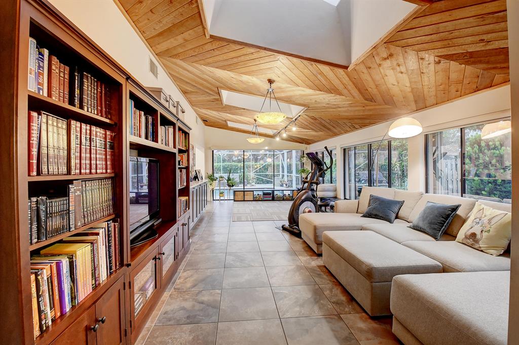 GORGEOUS! Completely remodeled central Boca home that is MOVE IN READY. Walking distance to multiple houses of Worship. Extra bonus room unique to this home. Corner lot, features vaulted ceilings, exquisite lighting, a new gourmet kitchen with center island, stainless appliances and tons of storage. New flooring throughout including porcelain tile in main areas and waterproof laminate planks in bedrooms. All bathrooms are modern and nicely updated. A stunning screened in patio, complete with swimming pool, a large travertine deck and a sheltered sitting/dining area for real Florida living at its best. Plenty of outdoor green space for future expansion and or additions or space for the kids to play. Hurricane rated shed for extra storage, windows and doors complete with hurricane shutters.