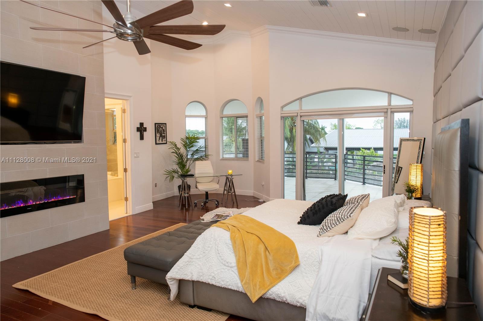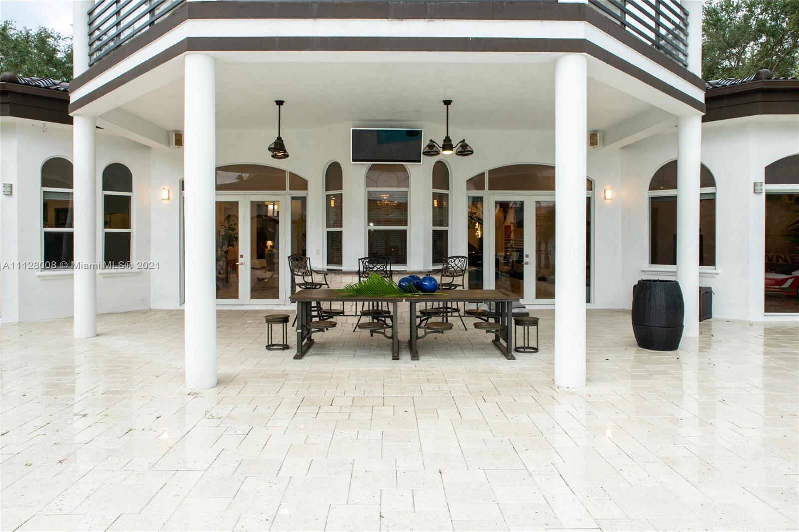 This architecturally stunning 6B+4B (7,598 sf | 1 acre lot) 2014 home displays exquisite sophistication & thoughtful details throughout. This Modern home, seamlessly combines a traditional w/ a modern twist, creating a balance that boasts comfort, natural light, & warmth. From the moment you enter you are greeted with soaring 31 foot high cedar ceilings, and a one of a kind exquisite granite and wrought iron staircase. Family room excels in designer soffit ceilings and fireplace to offer a large social gathering space around an elegant Chef Kitchen w/ stunning Calacatta countertops on display. A wine glass room backed by a large, elegant island with 4 chrome pendant lights over the sink that illuminate the bright gray design of this kitchen and provides space for cooking and entertaining.