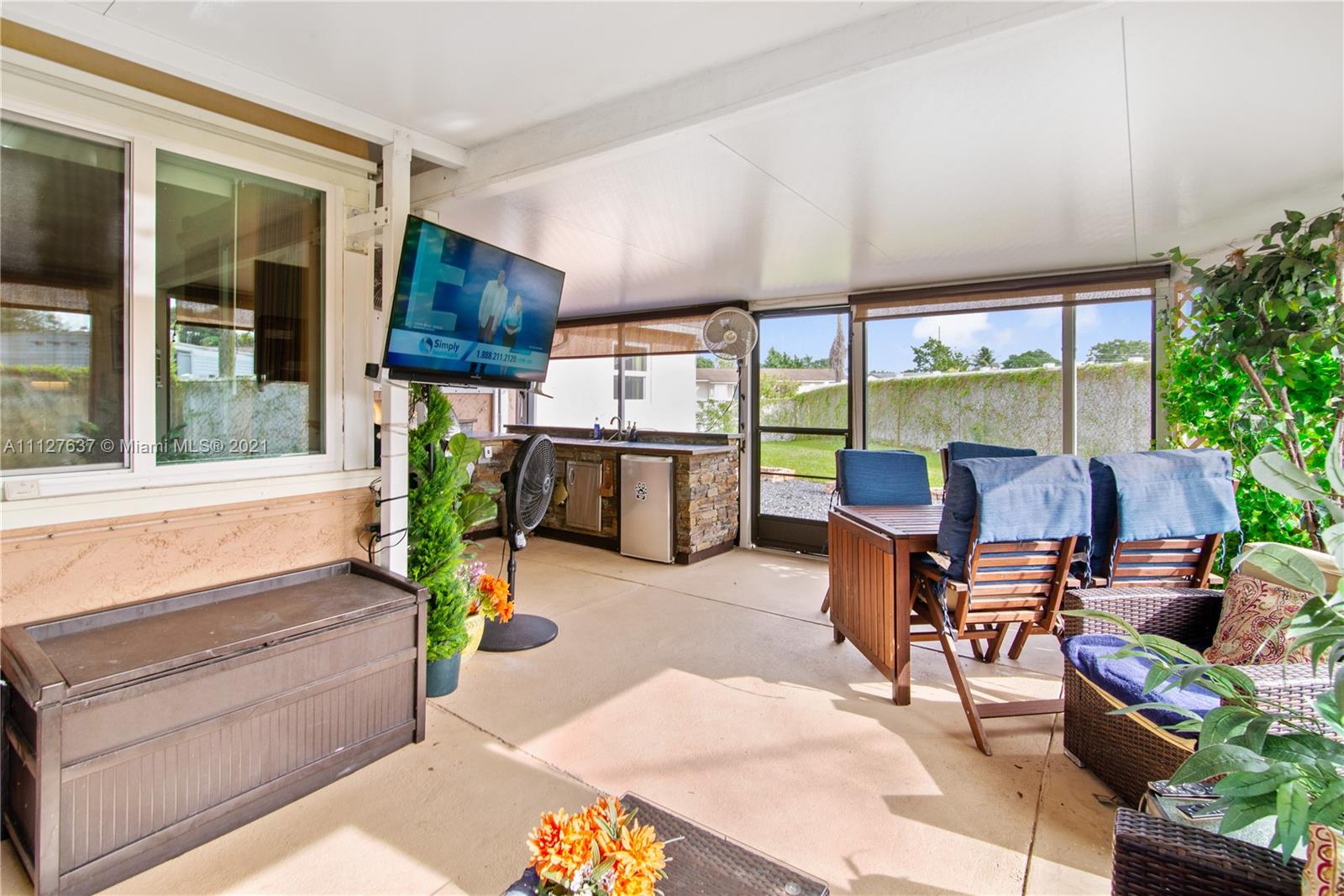 Spectacular move-in-ready home sits on a large corner lot with privacy fence and circular driveway. Insurance is low with a 2018 permitted shingle roof AND 2020 permitted impact windows by New South. Custom eat-in kitchen with plenty of counters and pantry space. Laundry room has a backup water heater. Natural gas-powered backup generator powers the entire house. Seller combined two rooms to make one large room, making the house a 2/2 with den. Den features new barn doors and recessed lights. Relax in the ultimate screened patio (permit 2020) featuring a natural gas outdoor kitchen with sunshades and an insulated roof. Or get cozy with your fire pit area on a cool night. Features a large tool closet, an irrigation system, and space to add a pool, park a boat, or RV. NO HOA. No flood zone.