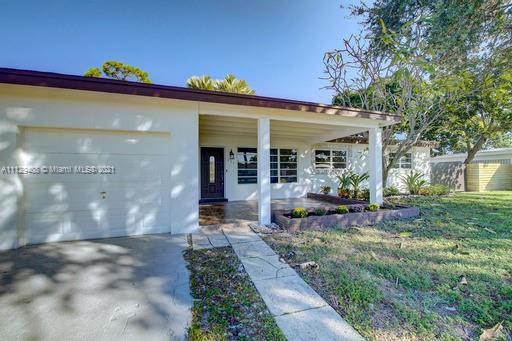 3 BR 2 BATH WITH 1 CAR GARAGE 1292 SQ FT LV 1492 ADJ SQ FT in Quiet Neighborhood. Recently Updated Home, New Waterproof laminate floors throughout.. Wood kitchen cabinets with granite counter tops and stainless steel appliances, Central A/C. Large utility room with New Gas Water Heater, Large Enclosed terrace . Bathrooms have new vanities, toilets and fixtures, windows have accordion shutters.