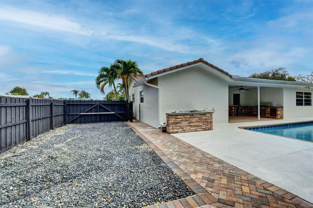 Fantastic 4 Bedroom 2.5 Bathrooms 2 Car Garage with a pool Located in a prime location in East Boca Raton. Corner Lot. Private Fenced yard with a summer kitchen, Pool newly resurfaced, Exterior freshly painted. New A/C, A rated schools, Close to downtown and minutes to Beaches.