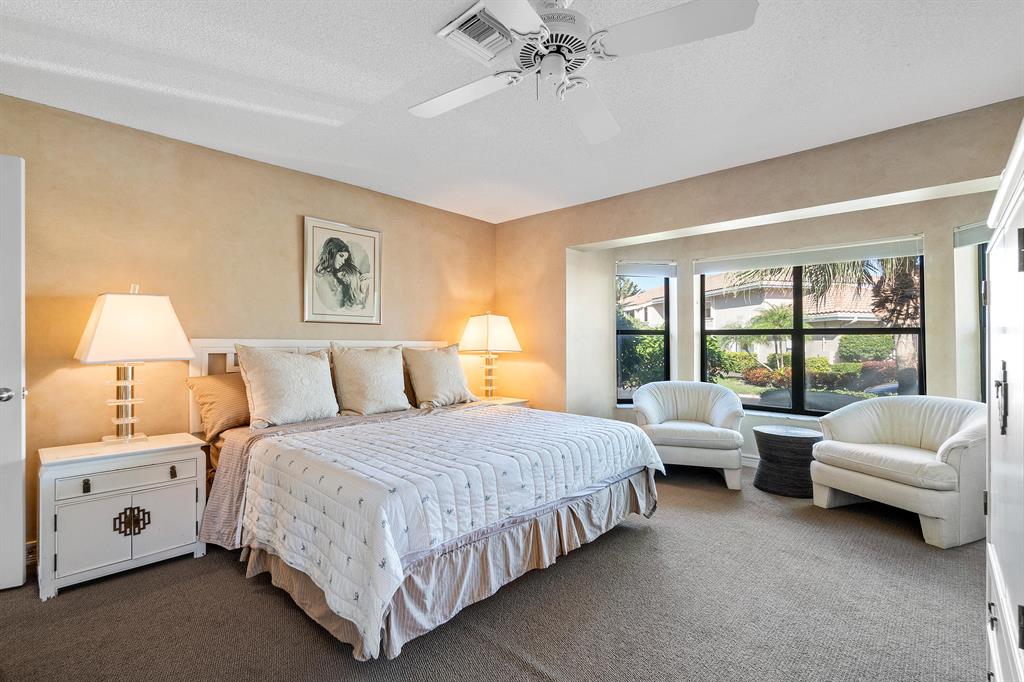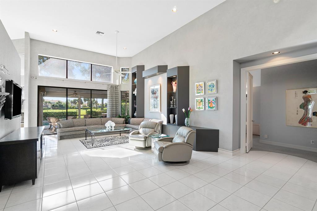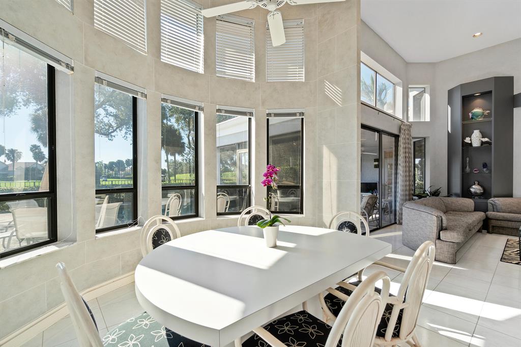A beautiful, sprawling, single-family home awaits! Upon entering, you are immediately impressed with the voluminous ceilings and sun-filled rooms. The large open-concept living room showcases beautiful wide-open vistas of the golf course in the distance. The outdoor screened-in living space leads to an oversized patio with a large private pool.The bright kitchen also shares the same stunning views and connects to the informal eat-in area. The formal dining room is great for entertaining and is directly incorporated into the living space. The primary suite provides immense closet space and features two, full, separate bathrooms, one of which dually serves as a cabana bathroom . A generously sized en-suite second bedroom offers a sitting area and walk-in closet. The third bedroom is perfec