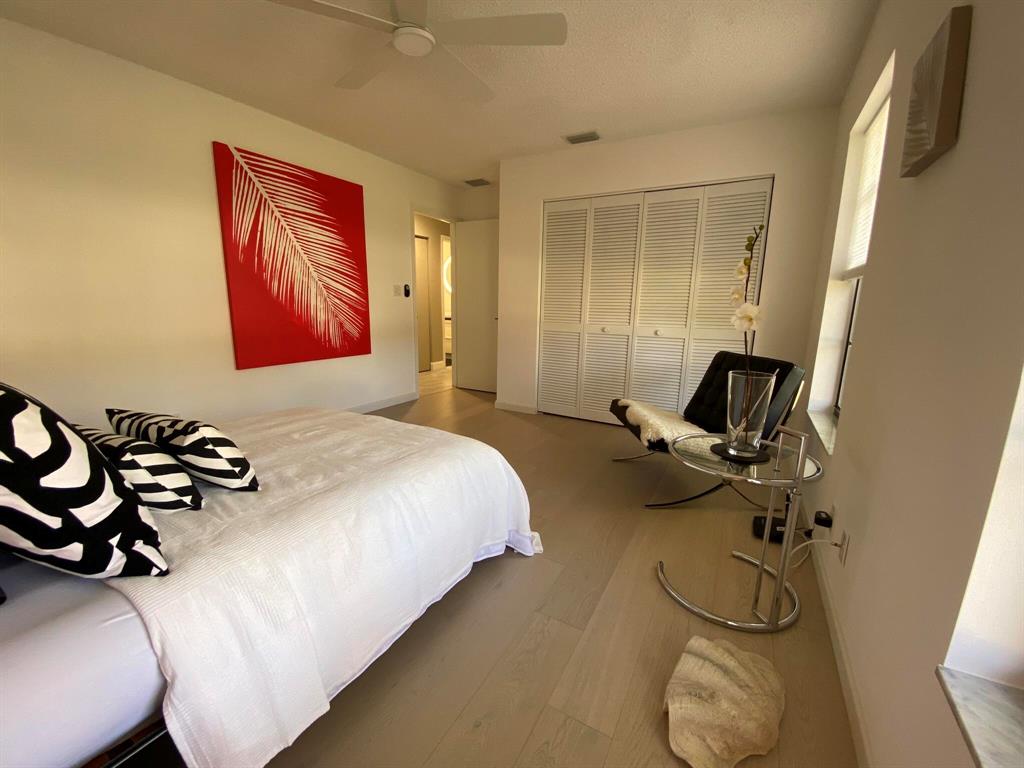 This move-in ready designer pool home was completely renovated both inside and out in 2021...located on an oversized corner lot in desirable Hidden Lake community in East Boca Raton, this stunning tropical reteat features very clean, contemporary design using only the finest natural premium materials. The custom built high end kitchen features Gaggenau and Thermodor appliances, an oversized granite counter top island in Nero Assoluto, with only the finest of fixtures available throughout..brand new white oak flooring in two bedrooms, LED lighting throughout, both bathrooms beautifully outfited with Porcelanosa natural granite tiles and corian, Grohe fixtures and so much more! Oversized, fully fenced private lot with only one direct neighbor offers the tropical FL lifestyle of dreams...