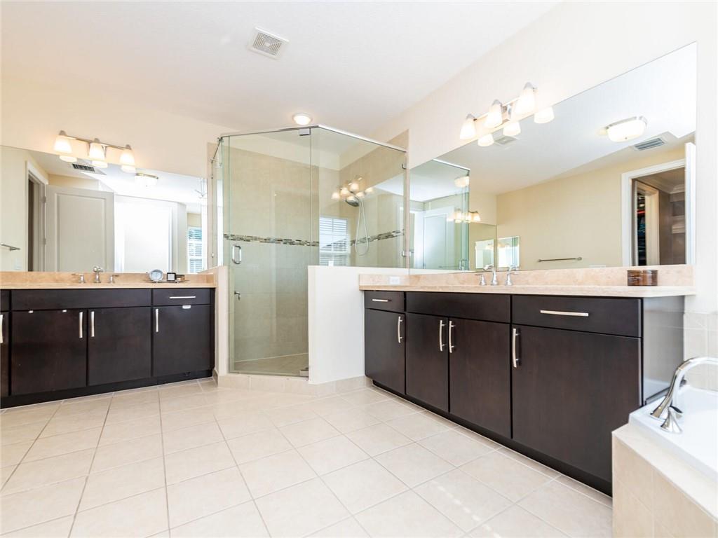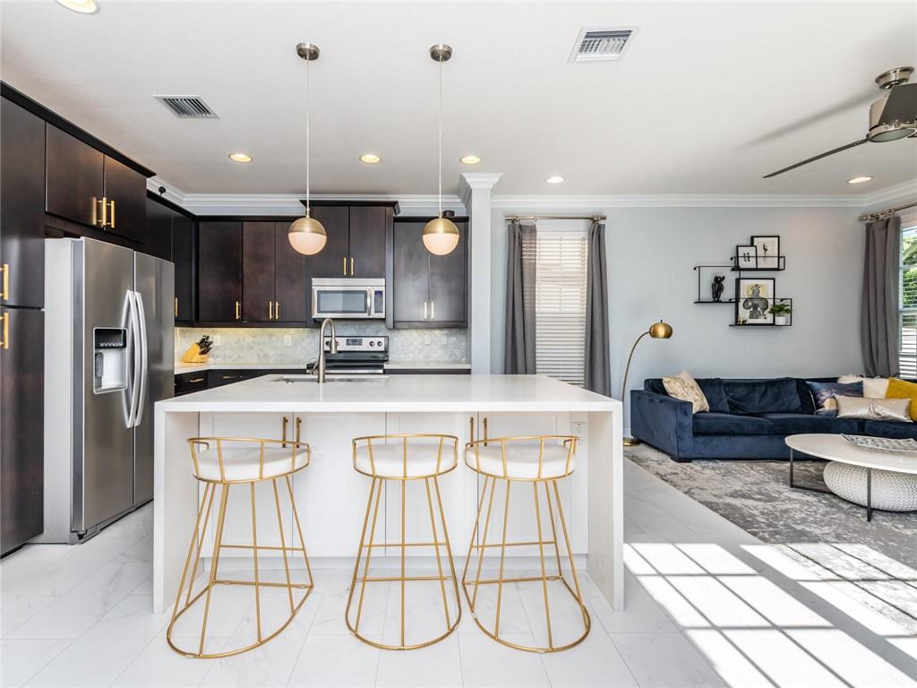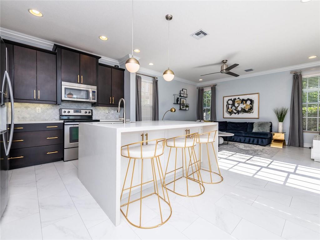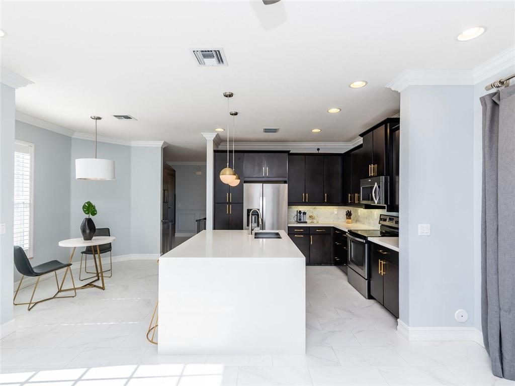 4/2.5 plus loft, pool, & 2 cg. This beauty offers impact windows & doors, remodeled kitchen w/ quartz waterfall island, wood cabinetry, marble back splash, SS apps. & breakfast area. Dual A/C, tile roof, porcelain tile on first floor, spacious master suite w/ tray ceilings, & walk-in closets, Mstr bath w/ dual vanities, tub & shower, laundry rm w/ cabinets, tub, & W/D. Volume ceilings, foyer, 8’ interior doors & freshly painted 2017. Formal dining, living & family rm have French doors overlooking the pool. Recent upgrades include new A/C 2021, built-in cabinet w/ wine fridge, porcelain tile floors, irrigation system, outdoor lighting w/ motion sensors, doorbell camera (nest), fans, lighting i.e. recessed led lights, powder rm renovated w/ floating vanity & quartz counter.