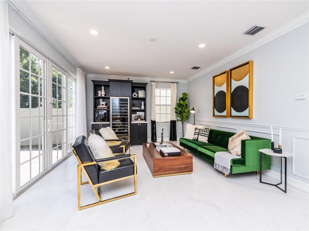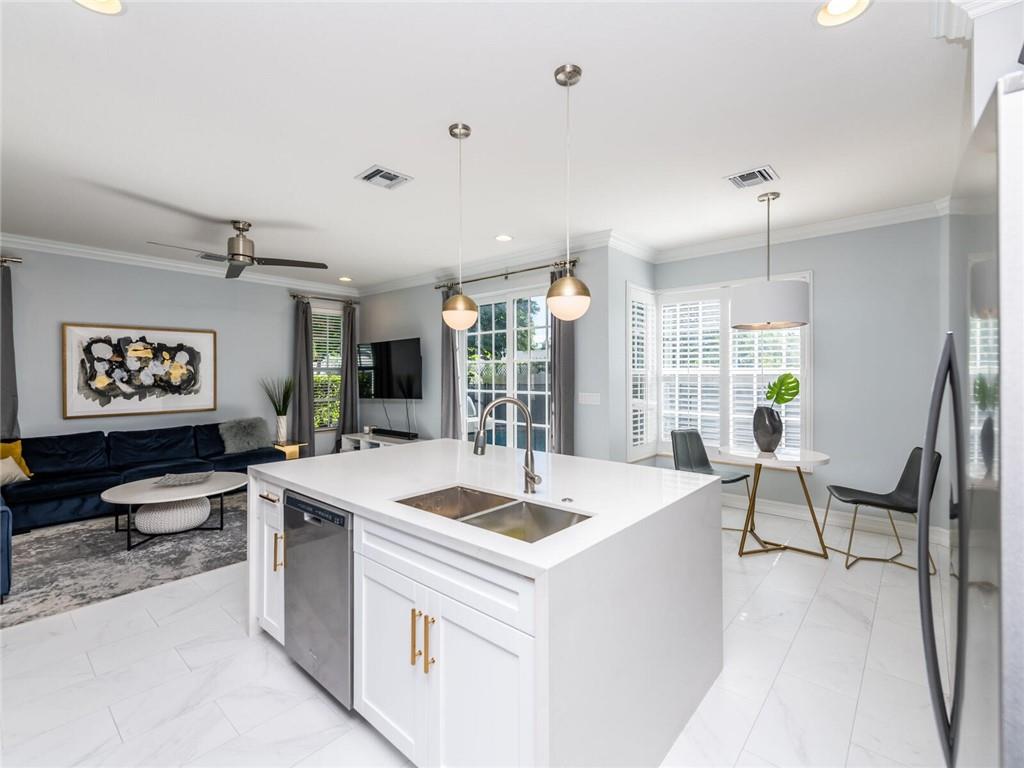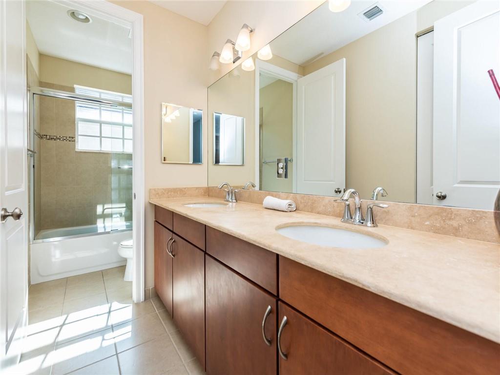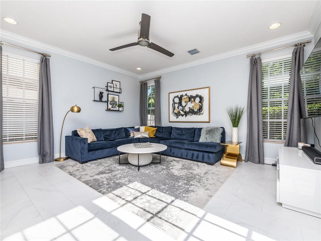 4/2.5 plus loft, pool, & 2 cg. This beauty offers impact windows & doors, remodeled kitchen w/ quartz waterfall island, wood cabinetry, marble back splash, SS apps. & breakfast area. Dual A/C, tile roof, porcelain tile on first floor, spacious master suite w/ tray ceilings, & walk-in closets, Mstr bath w/ dual vanities, tub & shower, laundry rm w/ cabinets, tub, & W/D. Volume ceilings, foyer, 8’ interior doors & freshly painted 2017. Formal dining, living & family rm have French doors overlooking the pool. Recent upgrades include new A/C 2021, built-in cabinet w/ wine fridge, porcelain tile floors, irrigation system, outdoor lighting w/ motion sensors, doorbell camera (nest), fans, lighting i.e. recessed led lights, powder rm renovated w/ floating vanity & quartz counter.