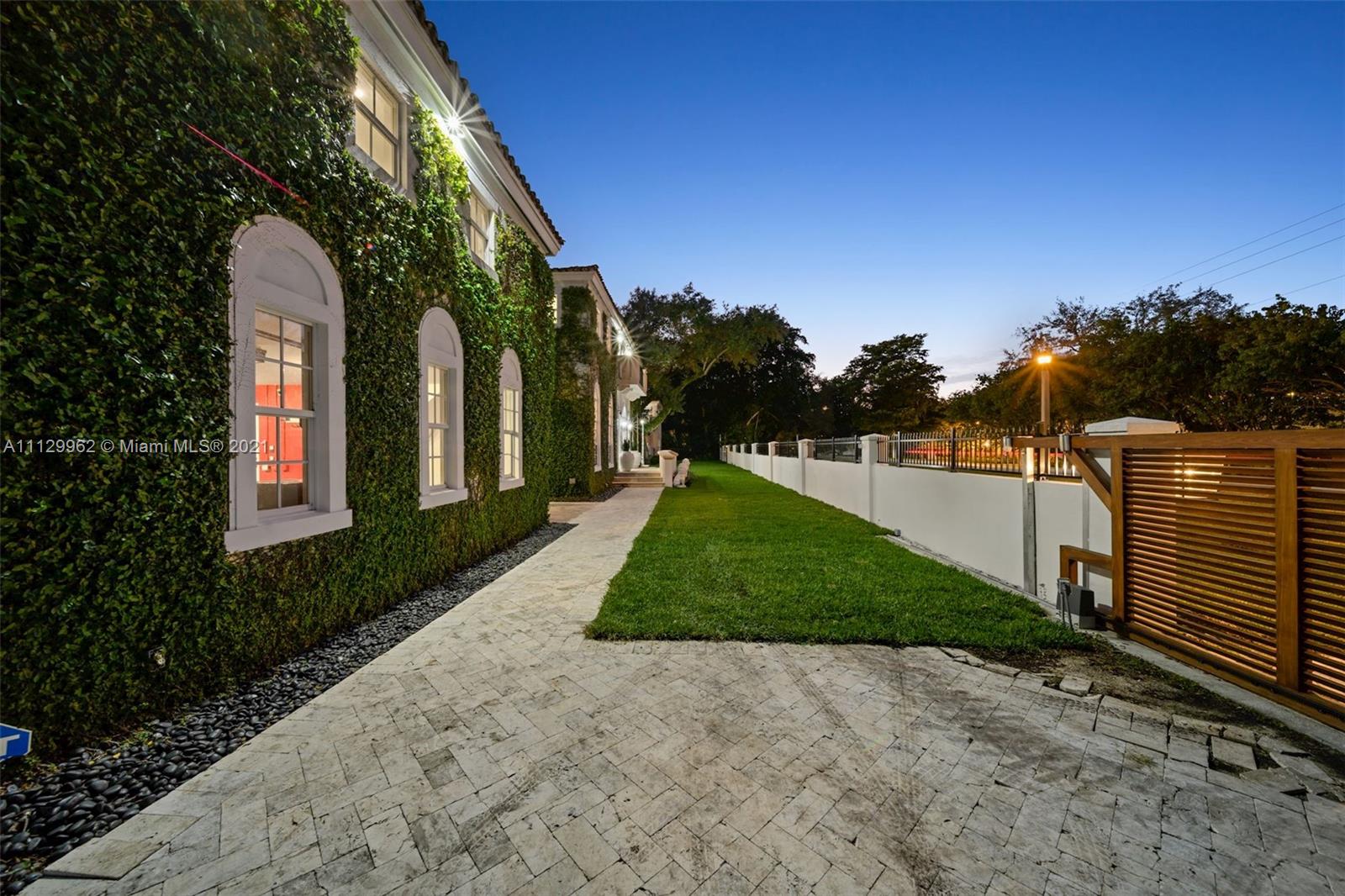 Sunset Villa - A custom-built Mediterranean estate in prime Coral Gables location! Comprised of 3 structures for ultimate flexibility, the main residence features four large bedrooms w/central den upstairs. Wonderful living areas and an open kitchen concept downstairs all with 14' ceilings. All rooms are oversized with great natural light & windows. Connected via breezeways are 2 guest suites located above the 2-car garage and a 2-story gym/office/bedroom overlooking the salt-water pool. Mature oak trees create privacy and serenity. Ample covered terraces and open-air patios abound for entertaining and relaxation with family and friends. Smart-house system for audio/visual/lighting. The property is fully gated and secure. Newly polished Brazilian cherry and marble flooring.