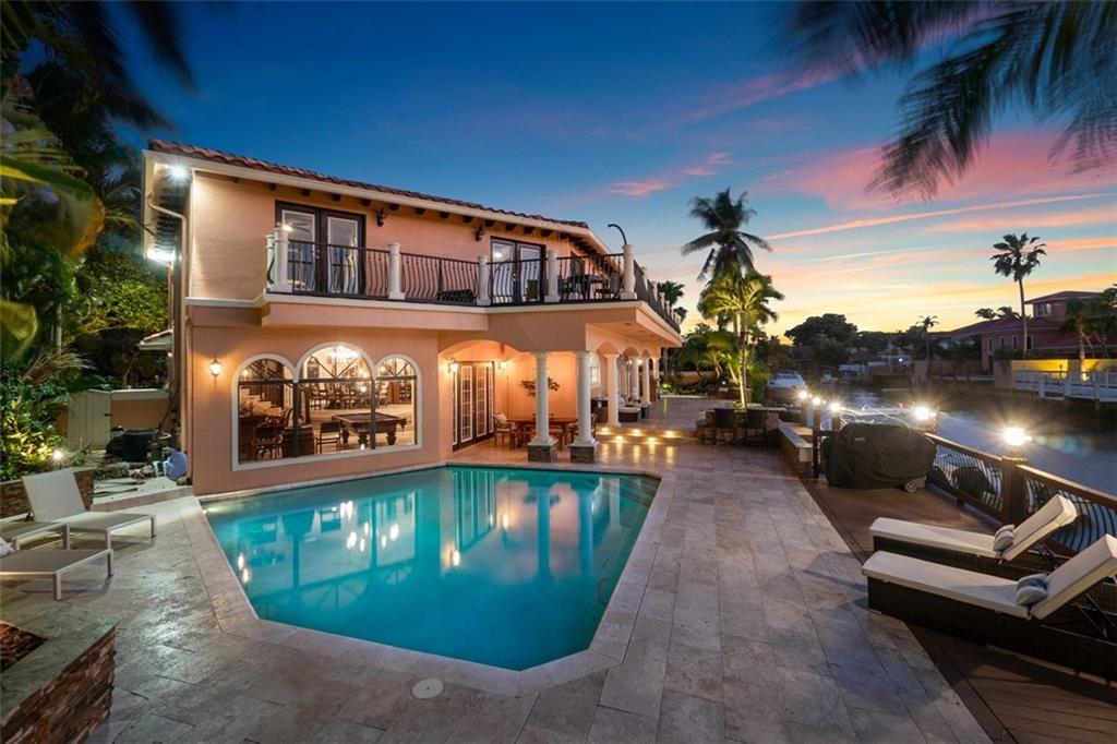Ocean access and impeccable indoor-outdoor flow define this boater’s paradise on a cul-de-sac lot with 114 feet of water front, gorgeous sunset views over the water, and a private dock. Every room of this 5 bedroom estate flows effortlessly onto grand decks that span the entire waterfront side on both floors via full impact French doors & windows that bathe the home in light. Prime location near downtown Boca's shopping and dining, Mizner park and the famous Boca Raton Resort & Club. Unwinding here after a day on the water is a true indulgence with two refined dining areas and a separate bar & lounge overlooking your palm-lined pool. Dock your boat and start living the good life!