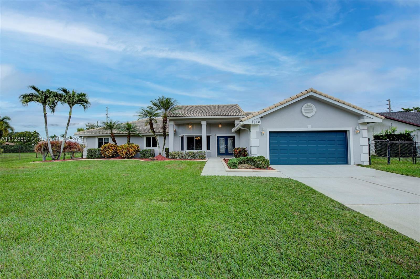 Prepare to be amazed! Incredible one-story pool home situated on a large lot in the desirable Ridgeview Lake Estates! This home boasts 4 bedrooms, 2 full bathrooms + a separate in law suite/offices. Enjoy an open floor plan w/ a remodeled kitchen that opens up to the family room area! Brand new flooring throughout. A/C 2021! Freshly painted interior and exterior! Hurricane impact windows + doors/ shutters throughout. Both bathrooms updated 2021! This is the ideal home for entertaining with an outdoor oasis & spacious lot! Covered patio area + summer kitchen facing serene pool/spa. Huge master suite w/completely gorgeous newly renovated master bathroom. Equipped with audio speakers and smart home features! Low HOA! Excellent location! A+ schools + close to major transportation!
