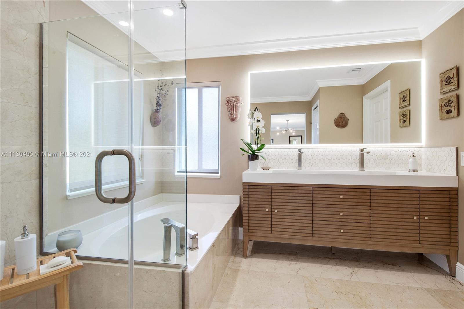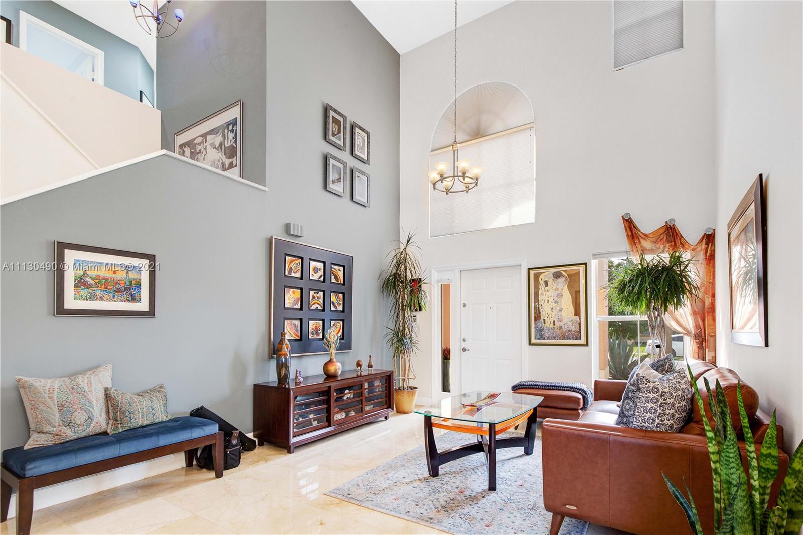 Hidden Gem in gated community HIDDEN LAKE. This gorgeous two story, 3 bed + office room /2.5 bath home. Freshly painted and completely RENOVATED. Marble floors and custom window treatments throughout. Accordion shutters on second floor, crown molding, led flush mount lighting in kitchen, family room, bathrooms and halls. NEW Stainless Steel Appliances and granite countertops. NEW Washer and Dryer. REMODELED Bathrooms with Devon Italian faucets, modern vanities, fabulous lighted frameless mirrors and rain showers. Ring video doorbell and three outdoor wireless cameras. Spacious fenced backyard with concrete floor and gorgeous landscaping, palm trees and lighting. 2 car garage with storage cabinets. HOA Master:$355 Quarterly + Hidden Lake $55 monthly. YOU CAN'T MISS THIS OPPORTUNITY!!