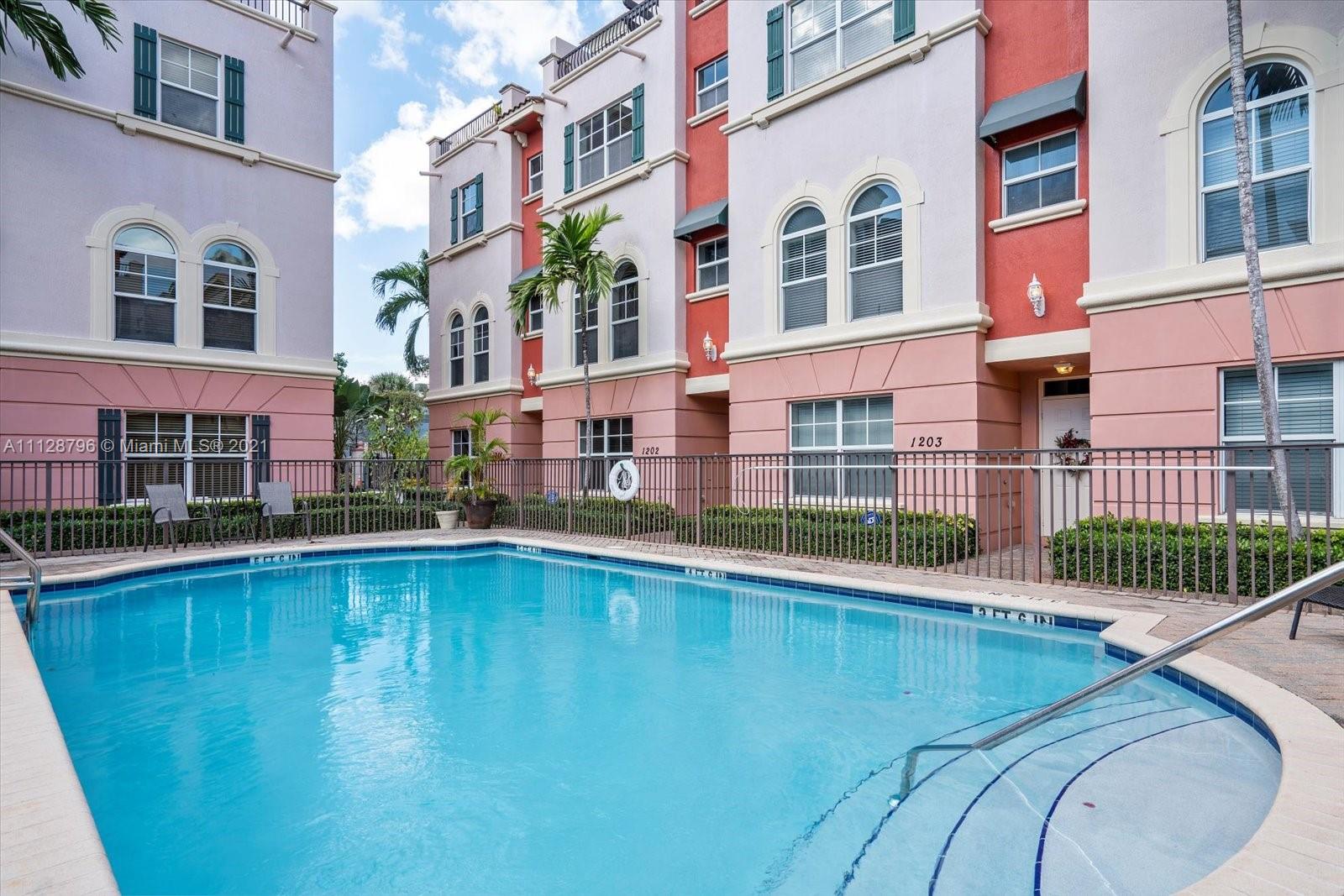 Spacious 3/3.5/2 turnkey Townhouse in Villa Medici with 2 new AC units and IMPACT GLASS. Beautifully decorated! Seller is willing to include the furniture! This gated community is private and the location is perfect with the beach, Holiday Park, Galleria Mall, and Las Olas/Downtown all within a few minutes walk or drive. The 1st floor offers a 2 car garage and an en suite bedroom or office with a full bath, the second floor has the laundry room, kitchen with granite counters, wood cabinets, and soaring 12 Ft ceilings great for entertaining. The upper floors have two more en suites including the oversized primary bedroom with a grand bath and two HUGE walk-in closets. The 2 balconies entice with fresh air & sun. This unit is nicely situated near the community pool and guest parking.