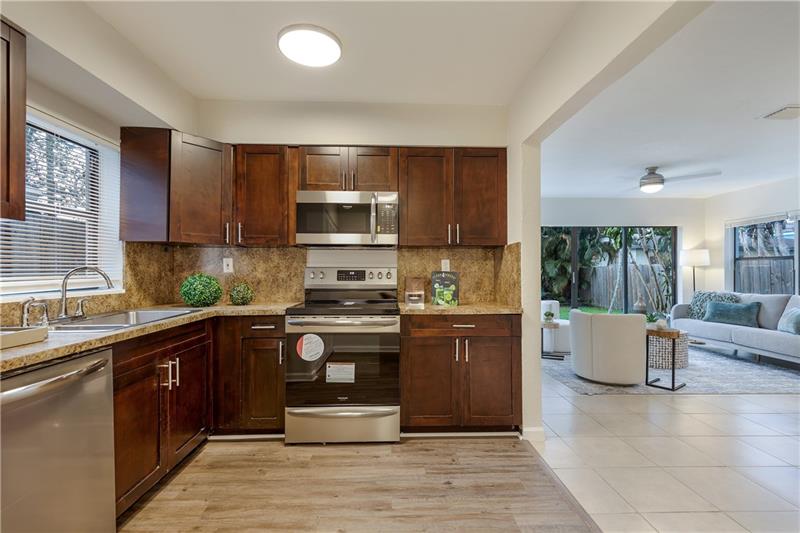Completely remodeled 3 bed 2 bath home.Beautiful open concept living with formal living room, dining room and large family room all open to the kitchen.All rooms have a view through the huge 12' wall of sliding glass doors,outdoor patio and the large fenced yard.The interior features brand new stainless appliances,new LG washer/dryer,new paint inside and out,new vanities,kohler sinks,all new faucets and fixtures.Designer black and satin nickel hardware throughout,beautiful landcaping,new double car driveway,new electrical panel,all new lights and fans, both bathrooms and kitchen are remodeled, porcelain flooring throughout and LVP waterproof wood plank flooring in the kitchen.All rooms are large.The home is located on a street with beautiful well kept homes.Close to downtown and the beach.