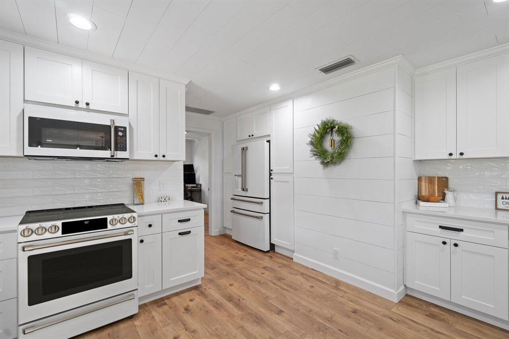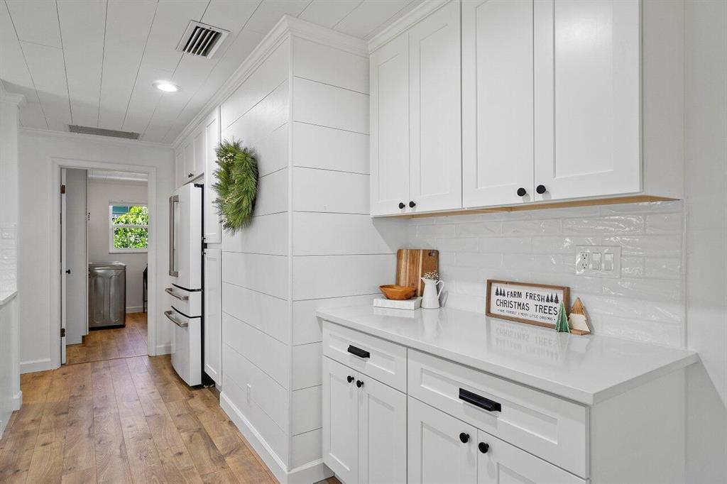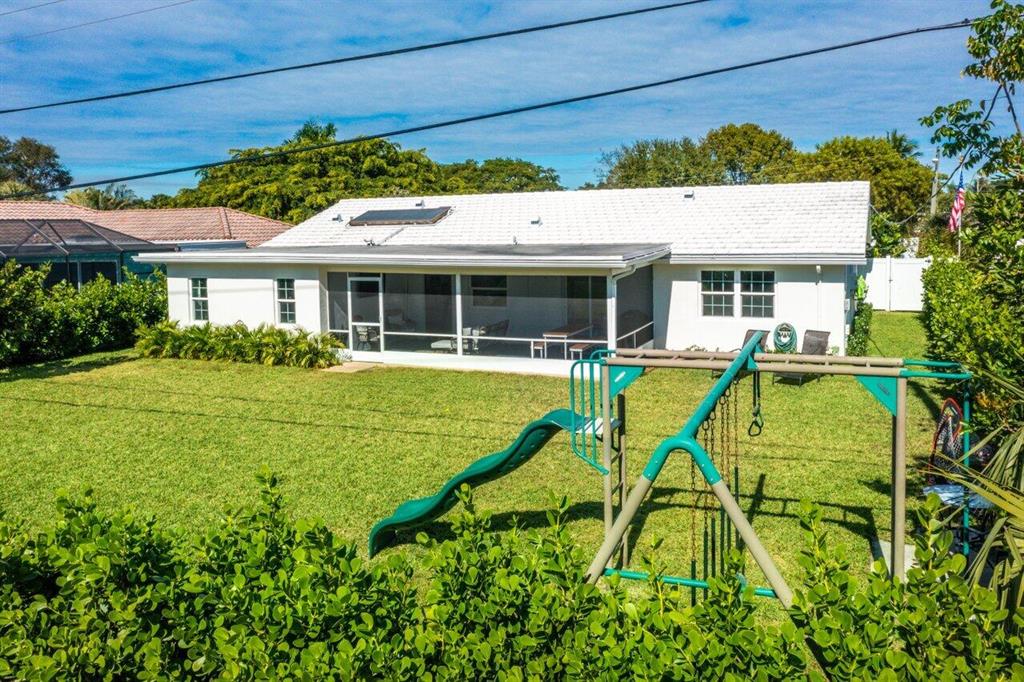 Amazing and rare opportunity to be in East Boca's most desirable Boca Square on the LAKE! This lake house has been completely renovated and has an enormous professionally landscaped South facing lot with beautiful lake views. Your own tropical piece of paradise! 3 bedrooms, 2 baths, 2 car garage and new paved circular driveway, new kitchen - bathrooms - flooring - custom shiplap ceilings throughout - impact windows - large covered and screened in patio and much more! This open floorplan has lots of natural light, an open kitchen with a large island top and an oversized interior laundry room. All this located in Boca's most wanted ''A'' rated school district and walking distance to the brand new K1 through 8 Addison Mizner as well as minutes to the Boca's downtown & beaches.