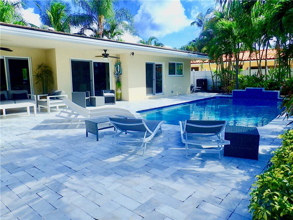 Rarely available in The Landings, this 3 bed/3 bath home was remodeled from top to bottom in upscale, open concept design, with chef inspired kitchen, energy efficiency throughout and high end finishes. Only a few blocks to Lauderdale By The Sea Beach. New natural gas lines installed for hot water on demand, indoor cooking, dryer, outdoor grill, glass stone fire pit and heated saltwater pool with waterfall. Cabana offers tons of seating with tropical pool view & 85' dock space with boat lift. Too many extras to mention! Home is luxuriously furnished and currently occupied with a tenant until June 2022. Do not walk the property or disturb tenant. Showings will be scheduled only with an executed offer and proof of funds or approved funding. (Fixed bridge APPROX. 10.5' depends on tide)