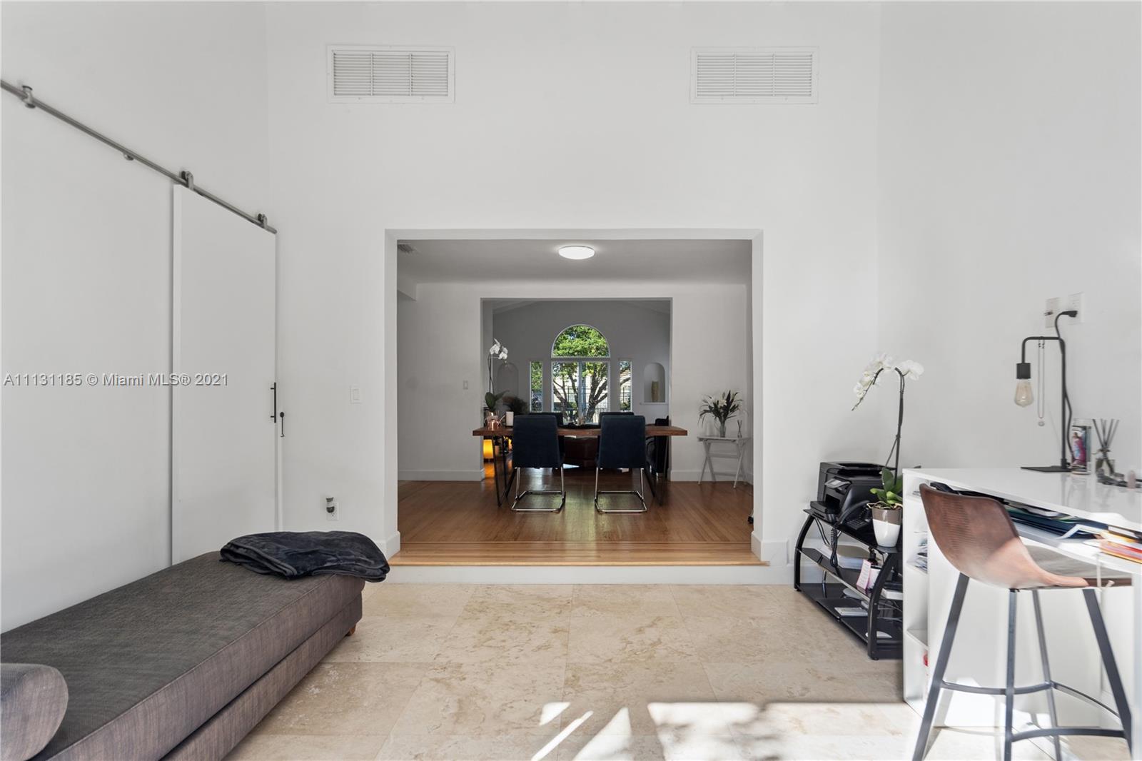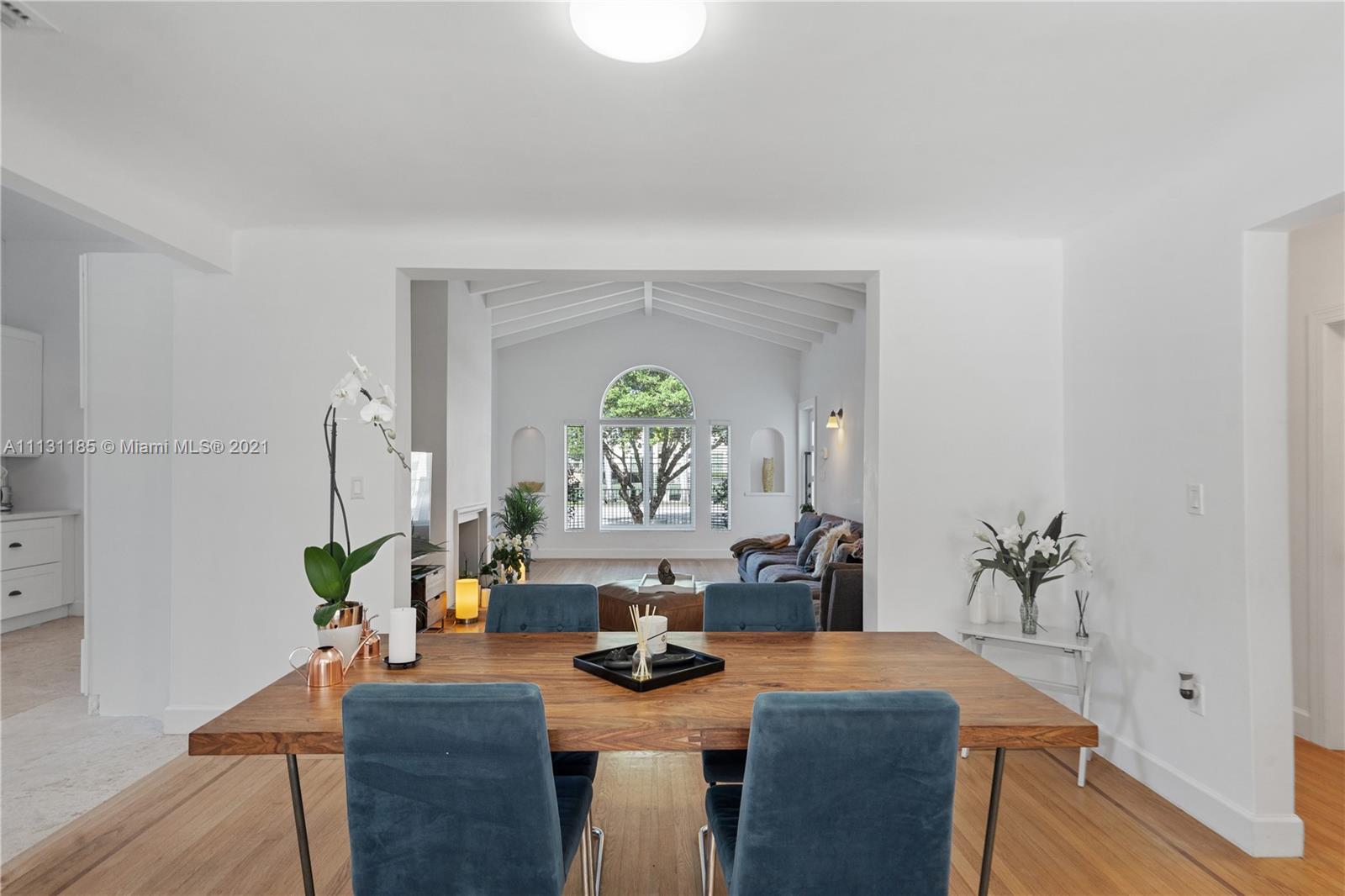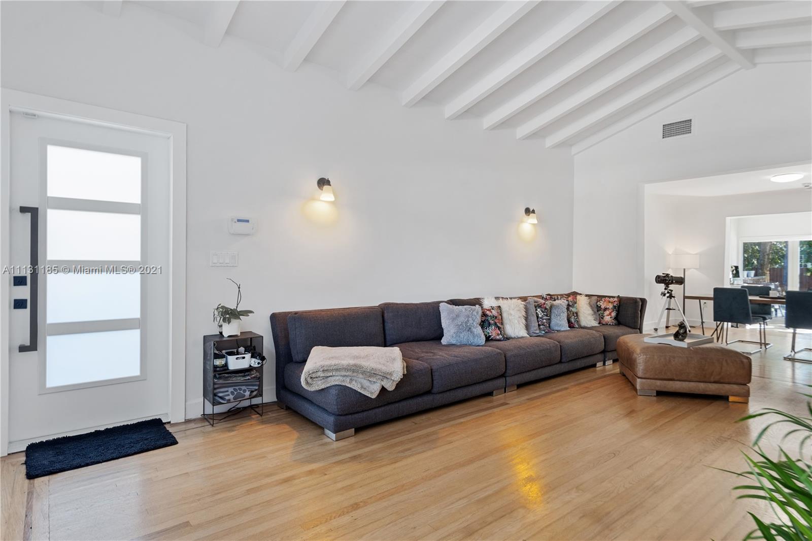 This stunning single-family home was completely updated in 2017 and sits on a 6,500sqft lot with a new automatic sliding gate that offers 2 secure parking spaces. The house features original hardwood floors & travertine flooring throughout, high vaulted ceiling with exposed beams, fireplace, and hurricane impact windows and doors. The open floor plan allows a lot of natural light to come in. The remodeled kitchen equipped with quartz countertops, stainless steel appliances, has enough space to add an island or table. The garage was turned into a laundry room with lots of storage. All 3 bedrooms have new customized closets. The master bathroom has porcelain flooring and a large shower, the second bathroom has a bathtub.