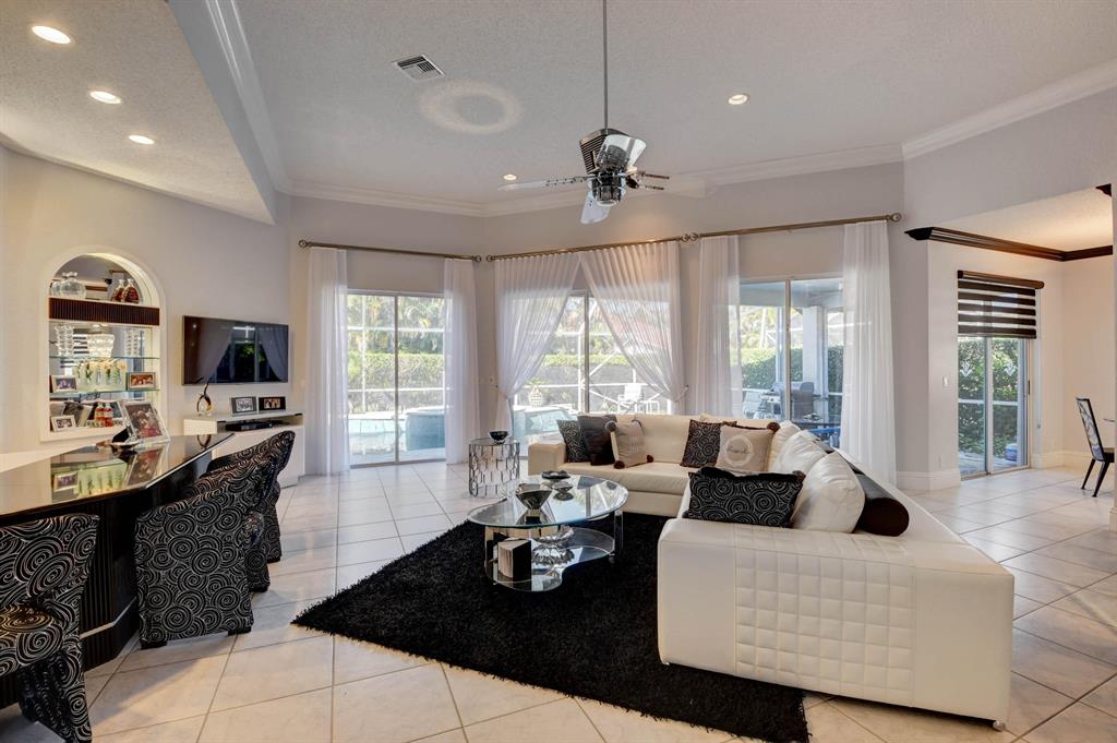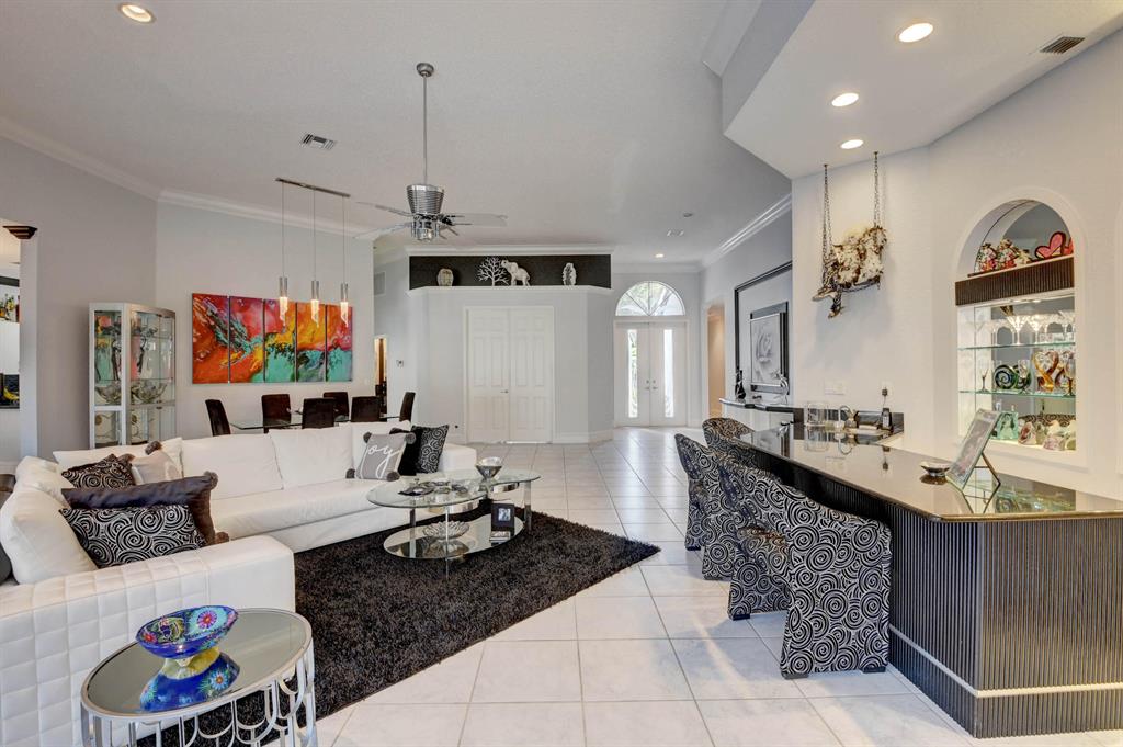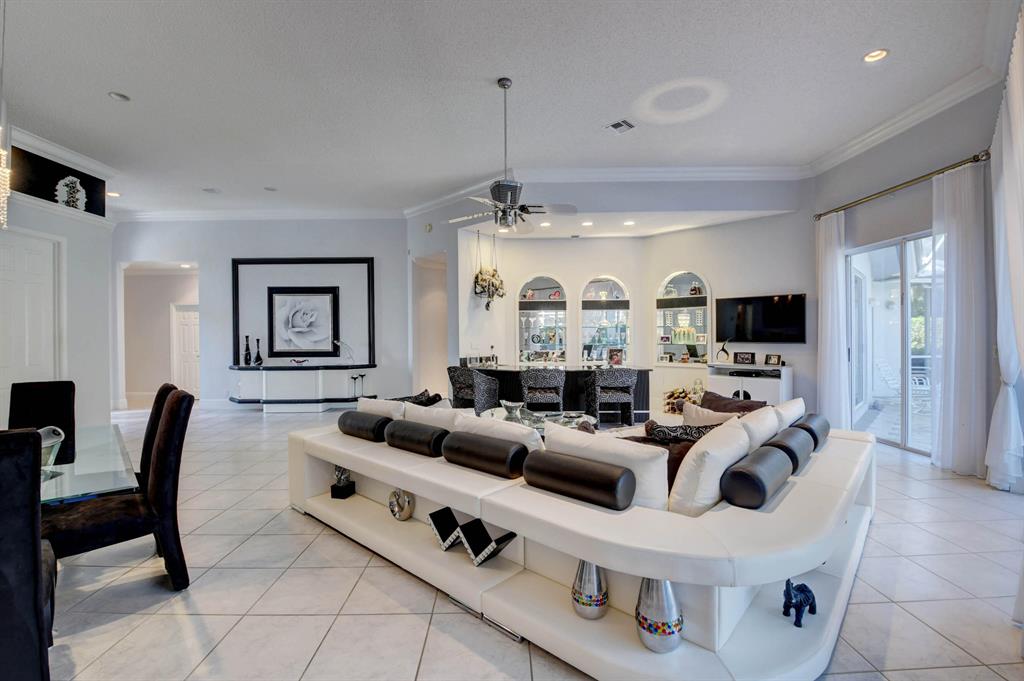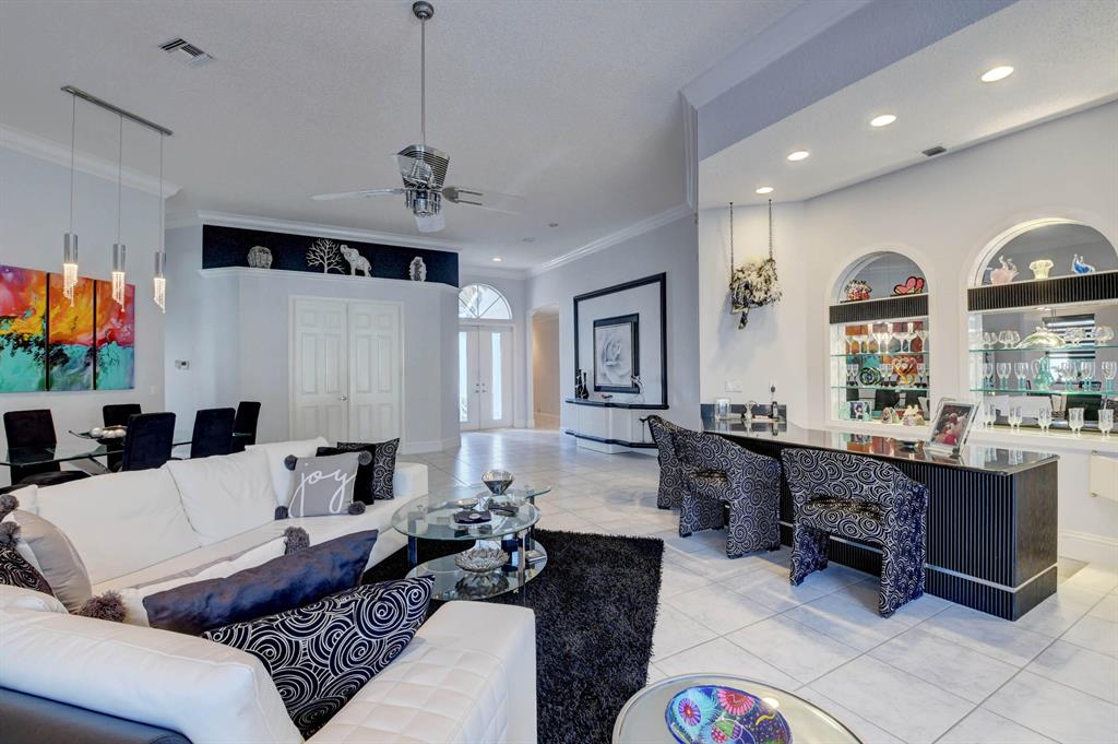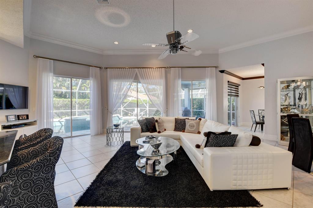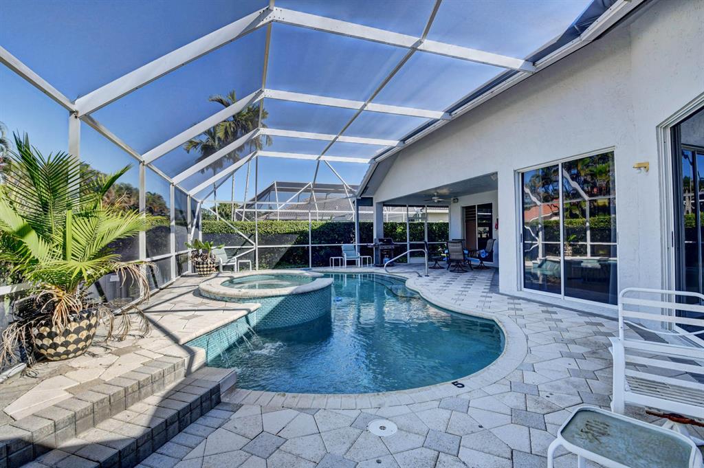 STUNNING 1 story contemporary home. 3 bedrooms, a den/family room and 3 full baths plus a powder room. A circular driveway takes you to La Corniche in Boca Pointe where there are only 88 single family homes. In-ground pool with a NEWER HEATER, NEWER TILES AND NEWER SKIMMER - ALL DONE IN 2021. Two AC units for zone heating and cooling - 5 yrs plus or minus. Kitchen has stainless steel appliances. This floor plan is most attractive for entertaining large or small groups; flows well from the inside to the outside. Private well for irrigating landscape which keeps your water bill lower. Sun block window film on all windows. Being sold as is with all the furnishings, all you need to do is bring your clothes! Membership optional. Showings will start Sunday September 4th, 2022 at 1pm