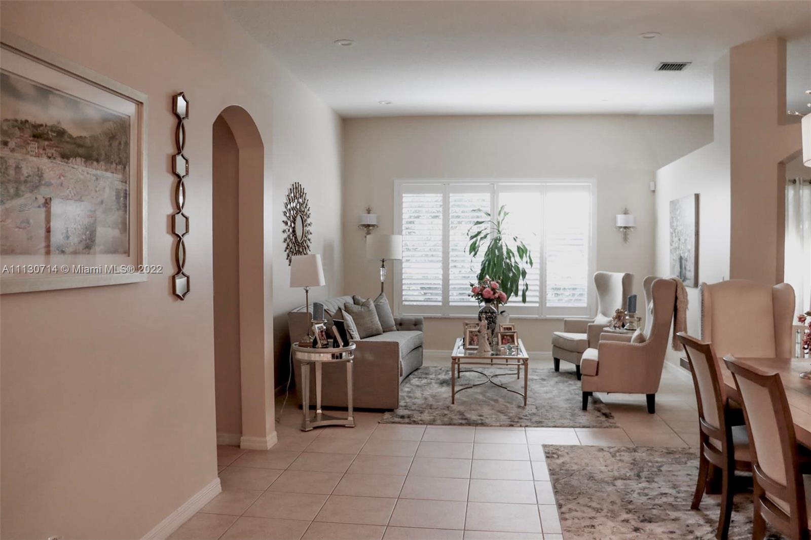 Welcome Home! This beautiful home in a safe gated community is a one story, split level which offers 4 bedrooms/3 full baths, 2 car garage, circular driveway, screened in patio, fruit trees. Master has 2 custom walk-in closets, tub and separate shower. Kitchen has a breakfast nook, beautiful cherry wood cabinets, granite countertops with stainless steel sink and faucet overlooking the family room, great for entertaining. Tile flooring in living spaces/laminate in bedrooms. blinds/plantation shutters. Laundry room has a Whirlpool washer/dryer and wash sink which leads to air cond. 2 car garage. GENERAC whole house generator and hurricane accordion shutters. Minutes from major hwys.