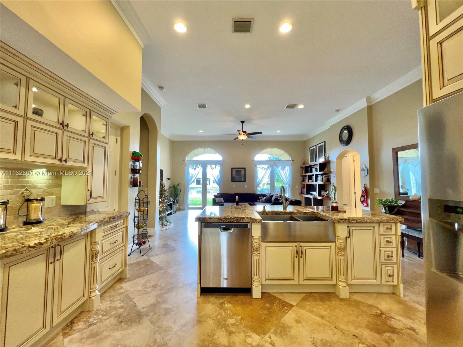 Spectacular home in Biltmore Estates. 1 Story Waterfront 4 bedrooms 2 1/2 bath .No expense was spared with every upgrade imaginable! Lake front, Room for Pool, cul-de-sac, stunning lake views from master and all living areas, crown molding thru out, sky-high ceilings, hard wood kitchen cabinets with granite counter tops, laundry room ,2 car garage and more.Within walking distance to the clubhouse, pool and playground!! Talk about Living In South Florida !!!!