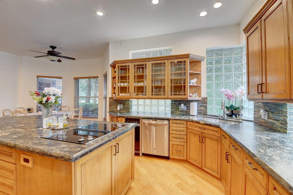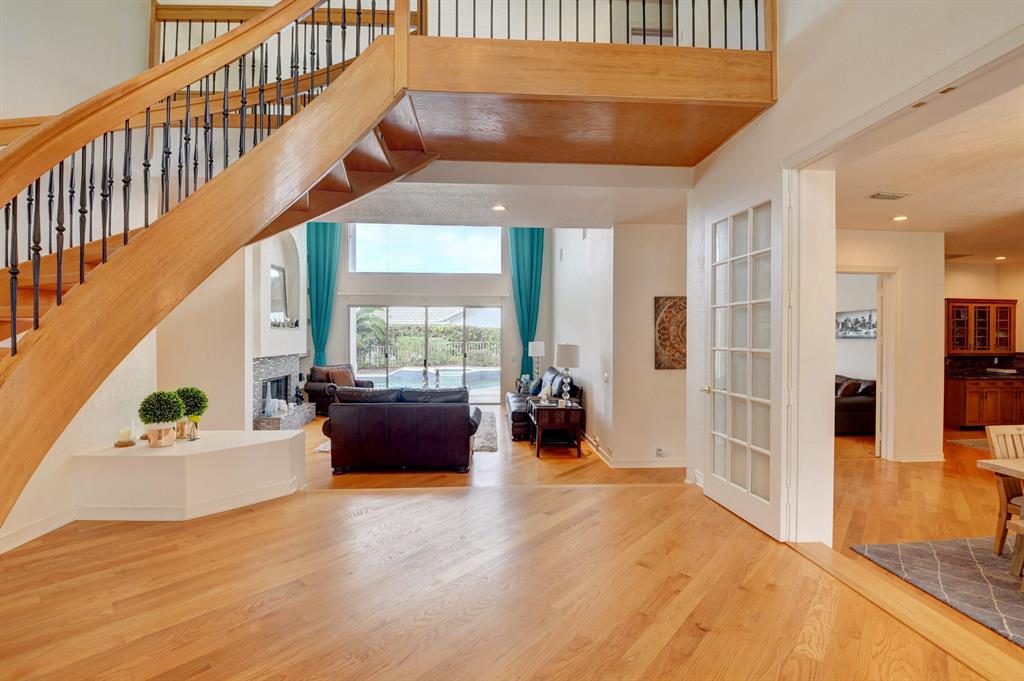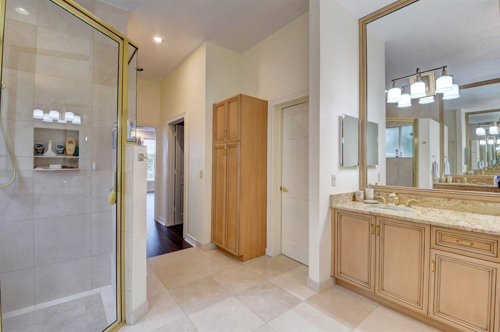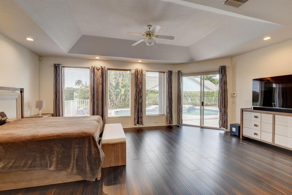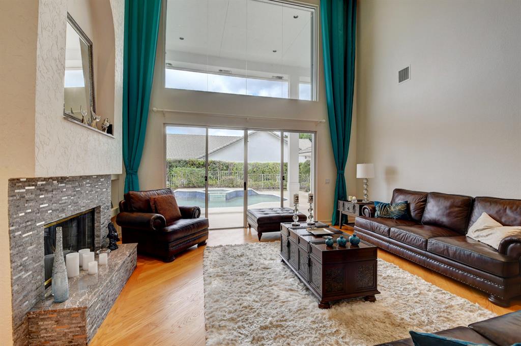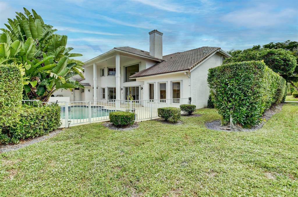 House beautiful! This 2-story Estate home in prestigious Woodfield Hunt Club in central Boca Raton offers the perfect blend of Modern elegance and traditional warmth. As you enter the stately foyer, there is an oak spiral staircase and wood floors. Living room is 2-story with lake views and a dramatic fireplace. Formal dining room; large eat-in kitchen with unusual acid-washed marble countertops. Den has french doors and cabana bath leading to the large open pool. 3-car garage. Upstairs has 3 bedrooms plus very large playroom (family room) with bar and sink. Full hurricane protection. Your children can walk right across the street to St. Andrews School.Membership[ is optional but is available to Woodfield Country Club. Woodfield Hunt has 5 tennis courts, basketball,