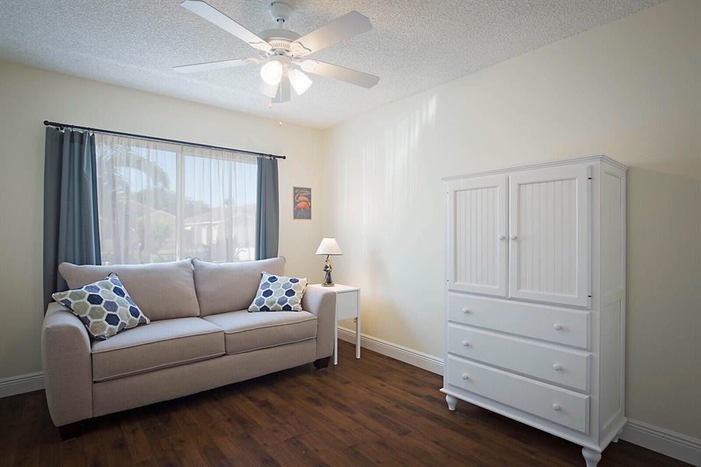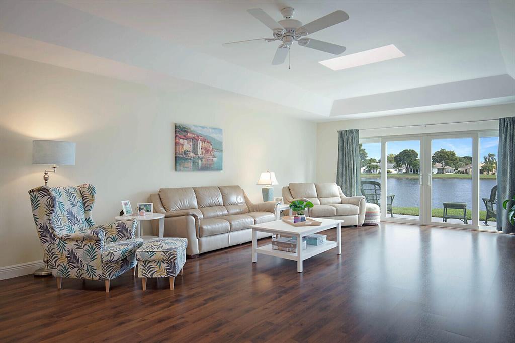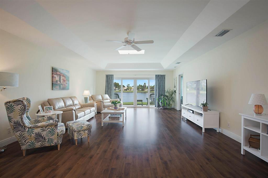 Immaculate & updated on sparkling lake lot w/impact sliders & windows . Enter this light, bright and cheerful home to find tile & laminate floors throughout, a remodeled eat-in kitchen w/granite counters, pencil tile backsplash, stainless steel appliances, light cabinets w/pull-outs, a pantry + sliders out to a spacious, tiled screened porch. Expanded living room looks out onto the open patio and lake. Tray ceilings (no popcorn). Primary bedroom has laminate floors, walk-in closet and remodeled bathroom w/2 wood vanities & beautifully tiled shower. Split bedroom plan. 2nd bathroom also remodeled. ''Plantation shutter style'' closet doors are a nice upgrade. LOW HOA fee ($160/mo). SEE SUPPLEMENT FOR IMPORTANT ADDITIONAL INFORMATION.